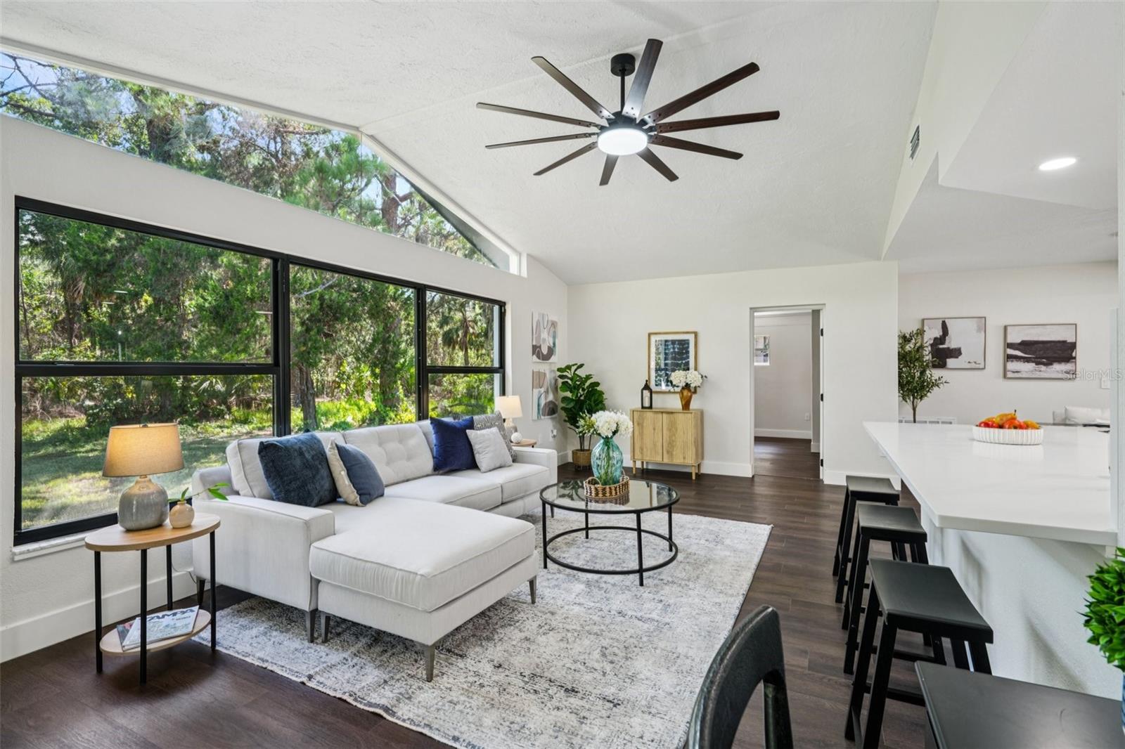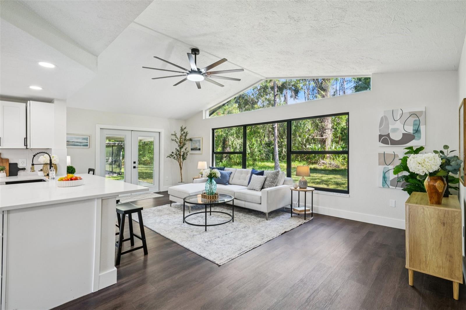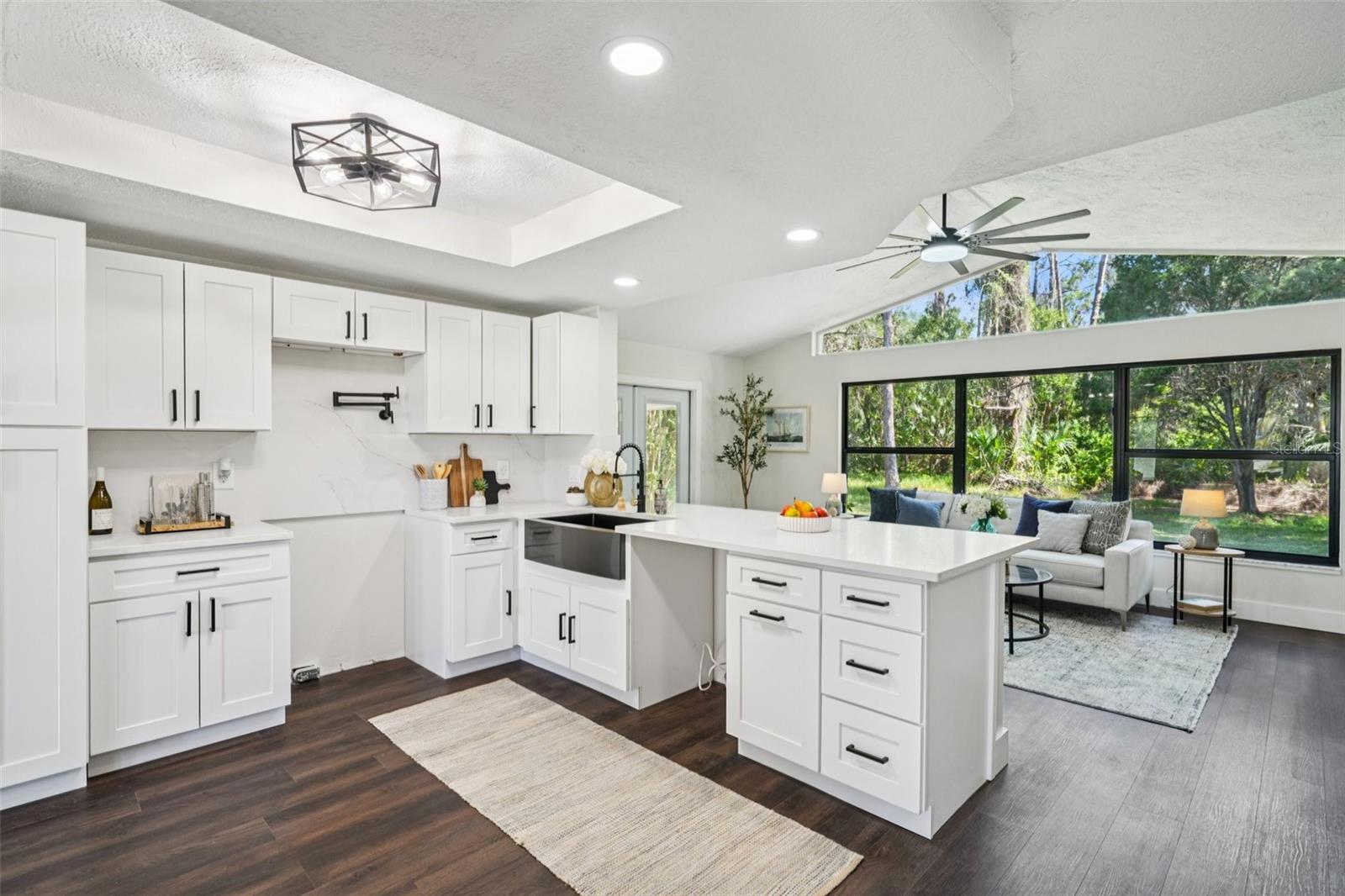 One or more photo(s) has been virtually staged. SELLERS ARE VERY MOTIVATED!! Step right into your dream life in this warm and welcoming waterfront community gem. Picture yourself on brand-new LVP floors, wandering through sunlit spaces flooded with natural light. The freshly painted rooms—both inside and out—feel sparkly and new. The remodeled kitchen with Calcutta gold quartz counters and a charming breakfast bar looks over the family room, where soaring ceilings and woodland views make every morning feel like a little adventure. The home was thoughtfully updated, with new doors, impact windows, totally redone baths, new HVAC, and a brand-new roof in 2025, over $100k in updates—so you can move in and relax. The split-bedroom layout gives everyone their own space, including a primary suite with a private bath and a third room that adds even more flexibility. This home has an additional bonus space of 248 square feet that is heated/cooled !! (additional square footage) Plus, there's an inside laundry, a covered porch, and a two-car garage that make daily routines a breeze. Step outside and you’re greeted by your own backyard escape—wooded, peaceful, perfect for lazy mornings or evening chats under the porch. And when you’re ready to play, your optional HOA opens the gate to your private beach: swim in the Gulf, lounge on the sand, picnic in pavilions, and stroll along the beach, feeling secure as it is a gated and private area. With quick access to U.S. 19, local shops, restaurants, Tarpon Springs Sponge Docks, Fred Howard Park, and only 30–45 minutes from Tampa International, Busch Gardens, or theater outings—and just about 1½ hours to Disney—this home is more than four walls. It’s a lifestyle. Be sure to schedule your showing today!