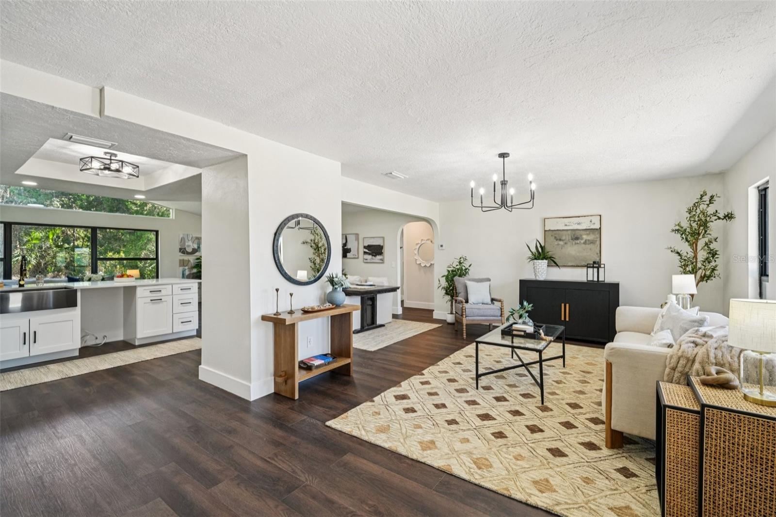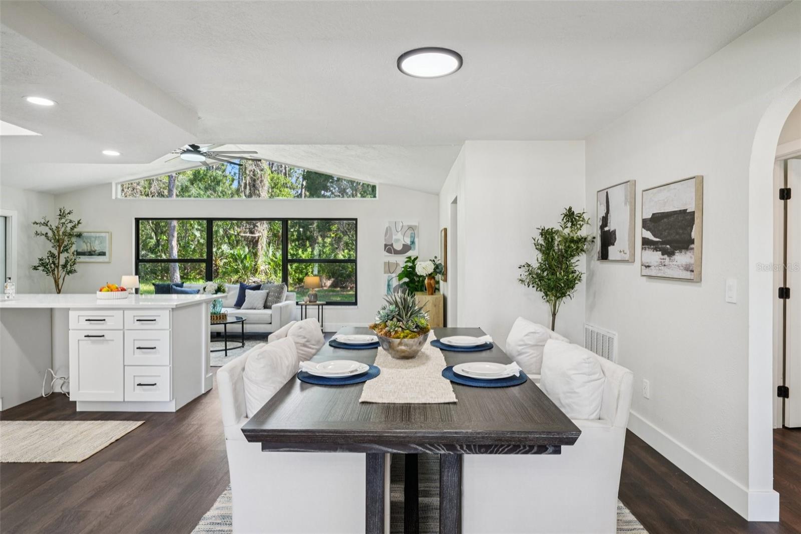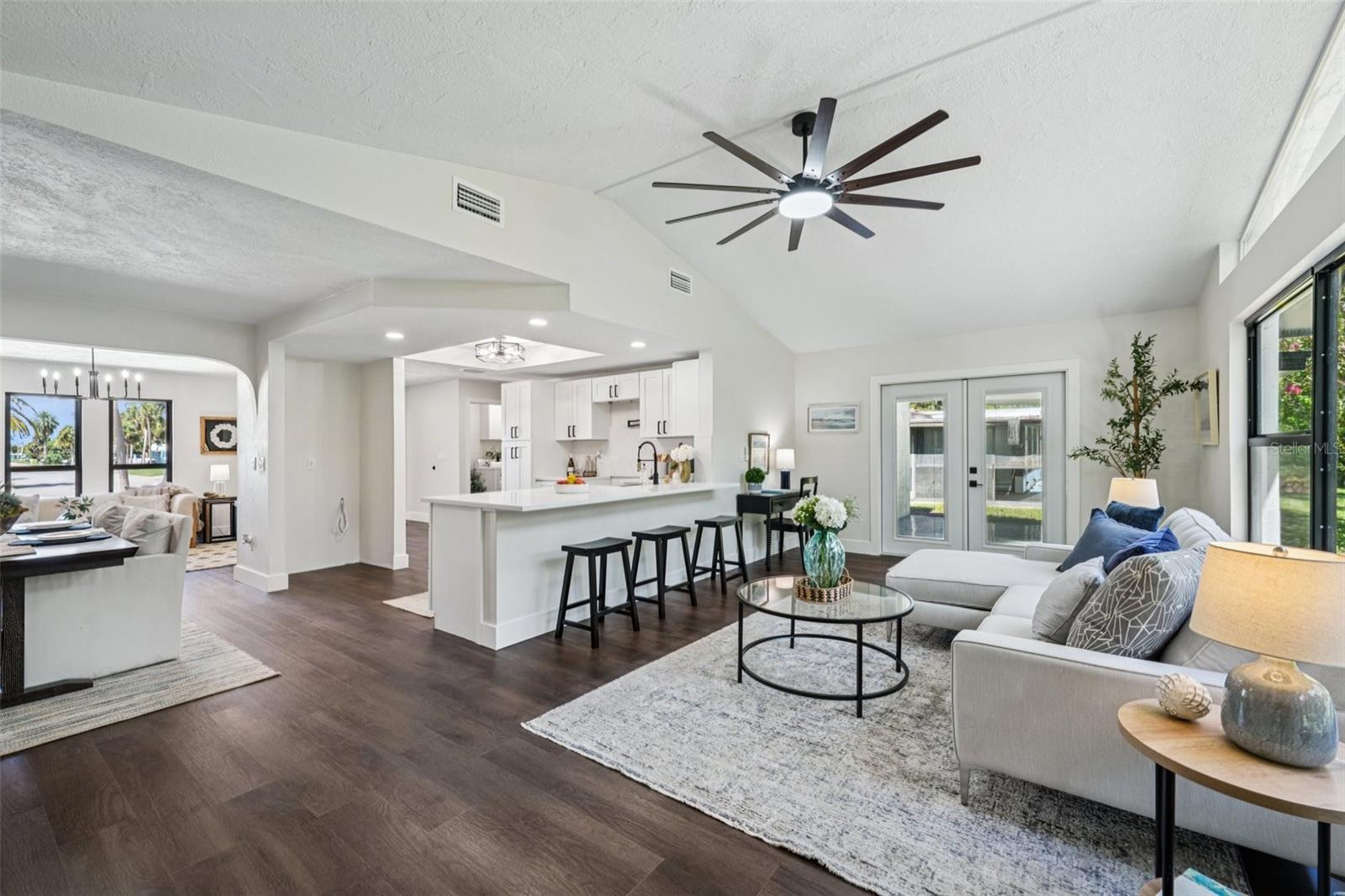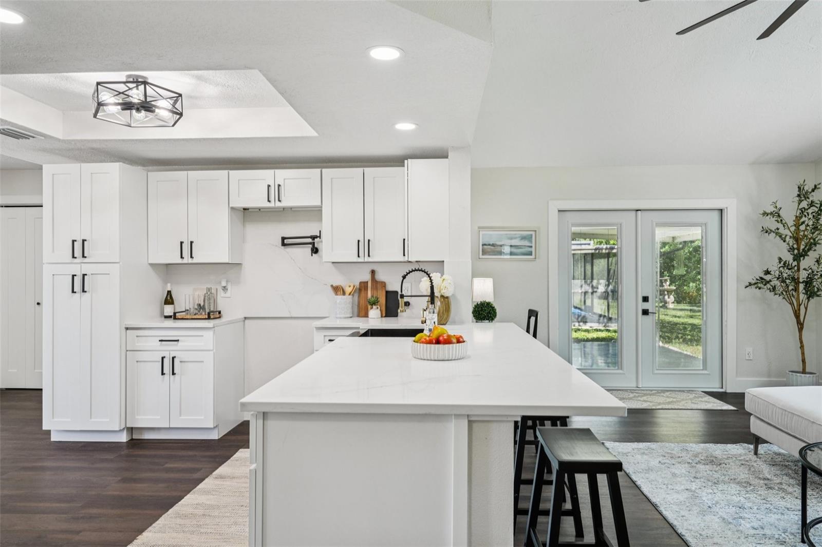 One or more photo(s) has been virtually staged. SELLERS ARE VERY MOTIVATED!! Step right into your dream life in this warm and welcoming waterfront community gem. Picture yourself on brand-new LVP floors, wandering through sunlit spaces flooded with natural light. The freshly painted rooms—both inside and out—feel sparkly and new. The remodeled kitchen with Calcutta gold quartz counters and a charming breakfast bar looks over the family room, where soaring ceilings and woodland views make every morning feel like a little adventure. The home was thoughtfully updated, with new doors, impact windows, totally redone baths, new HVAC, and a brand-new roof in 2025, over $100k in updates—so you can move in and relax. The split-bedroom layout gives everyone their own space, including a primary suite with a private bath and a third room that adds even more flexibility. This home has an additional bonus space of 248 square feet that is heated/cooled !! (additional square footage) Plus, there's an inside laundry, a covered porch, and a two-car garage that make daily routines a breeze. Step outside and you’re greeted by your own backyard escape—wooded, peaceful, perfect for lazy mornings or evening chats under the porch. And when you’re ready to play, your optional HOA opens the gate to your private beach: swim in the Gulf, lounge on the sand, picnic in pavilions, and stroll along the beach, feeling secure as it is a gated and private area. With quick access to U.S. 19, local shops, restaurants, Tarpon Springs Sponge Docks, Fred Howard Park, and only 30–45 minutes from Tampa International, Busch Gardens, or theater outings—and just about 1½ hours to Disney—this home is more than four walls. It’s a lifestyle. Be sure to schedule your showing today!