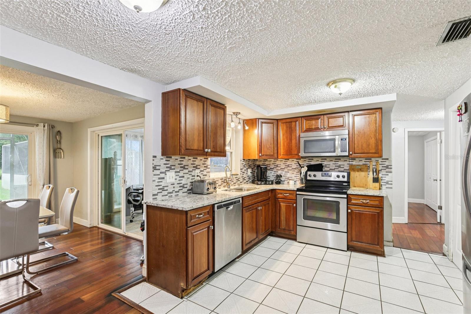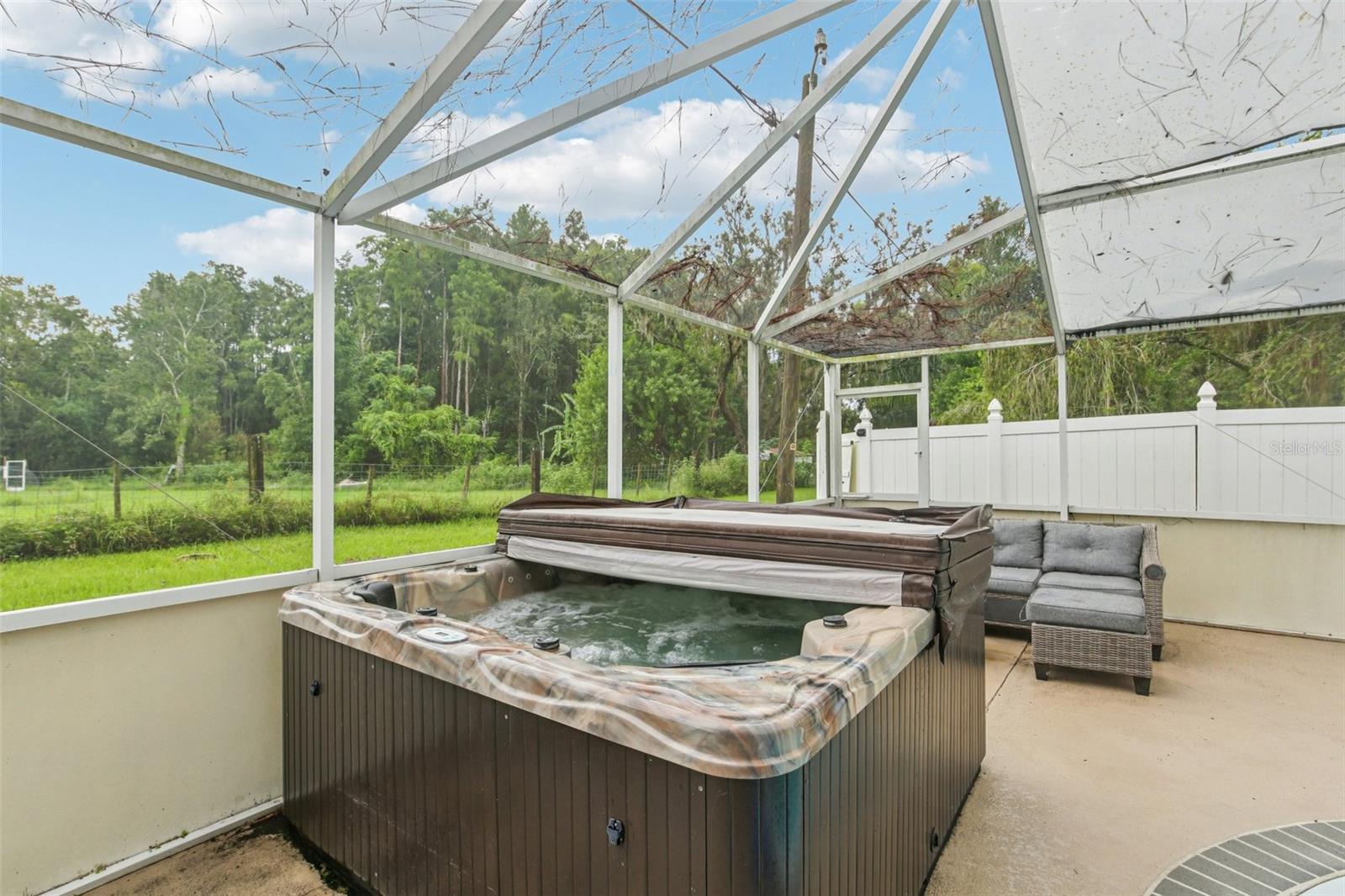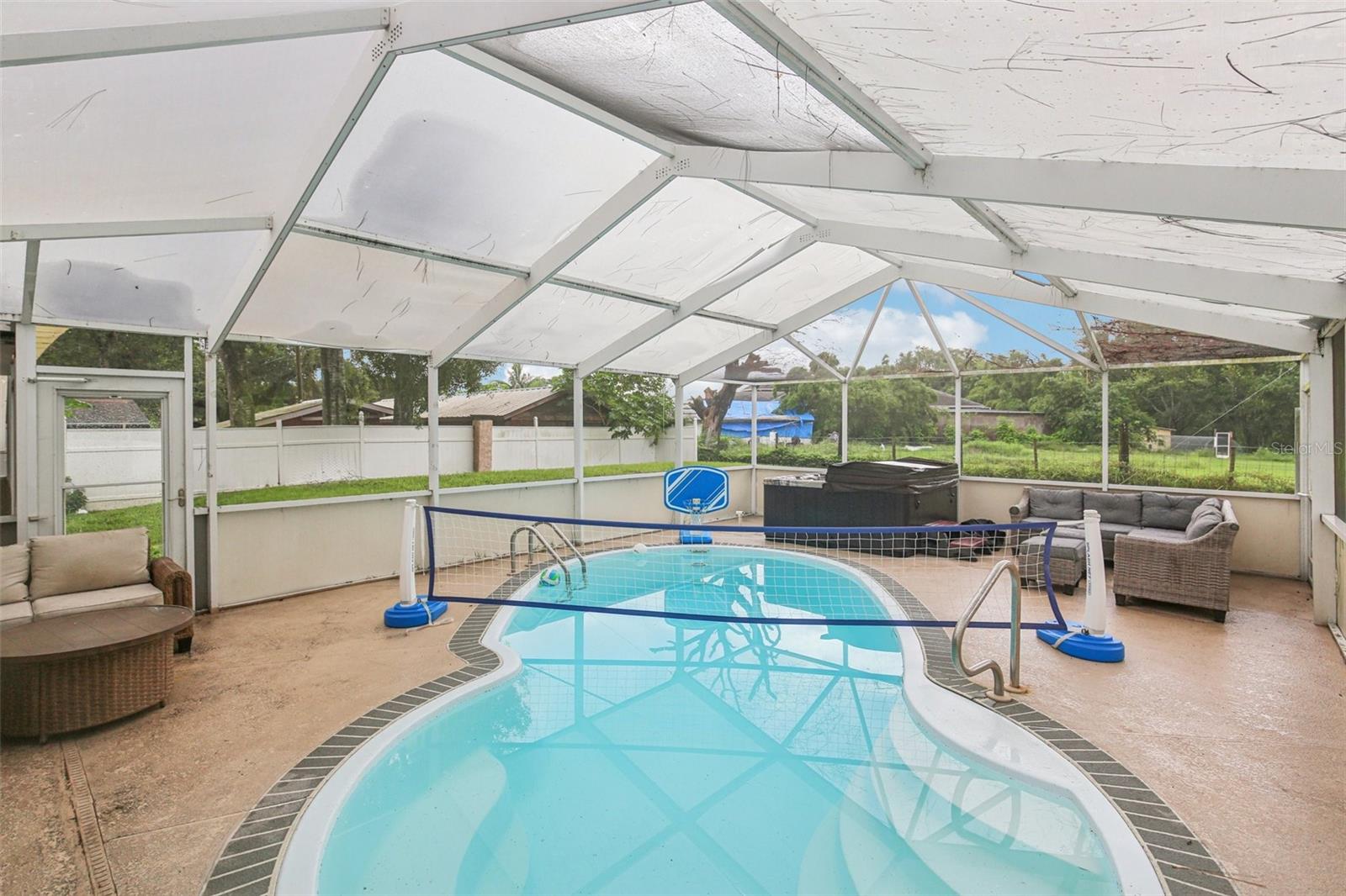 BRAND NEW ROOF INSTALLED!!! Step into your own private oasis, tucked away on a calming street framed by mature, towering trees—perfect for morning strolls. This bright, open-feeling home gracefully blends casual comfort with thoughtful updates: picture Brazilian-hardwood floors and tile flooring flowing from room to room, an airy living-dining space that welcomes conversation, and a kitchen with granite countertops, an undermount sink, stainless steel appliances, and a pantry closet that’s as practical as it is inviting. Day-to-day living gets so easy here. You’ll love winding down in the family room. And when entertaining calls your name? Slide open the doors to an enclosed lanai, your ideal place for hosting, or step out to the screened-in deck and enjoy the in-ground pool and raised spa—imagine weekend cookouts or relaxing under the stars. The primary suite pampers with a whirlpool tub, while convenience meets functionality with a HUGE inside laundry room (washer and dryer included) that could be used as a 4th bedroom and a handy storage closet. Plus, the massive yard stretches well beyond your neighbors’—no backyard neighbor means peaceful privacy, backed by beautiful agricultural land. Freshly cleaned and just waiting for you. With parks, playgrounds, and every convenience close by, this home delivers a wonderful blend of tranquility and accessibility. Want to see for yourself? Let’s make a time to walk through—you won’t want to miss it. Special Financing Options Available with the purchase of this home.