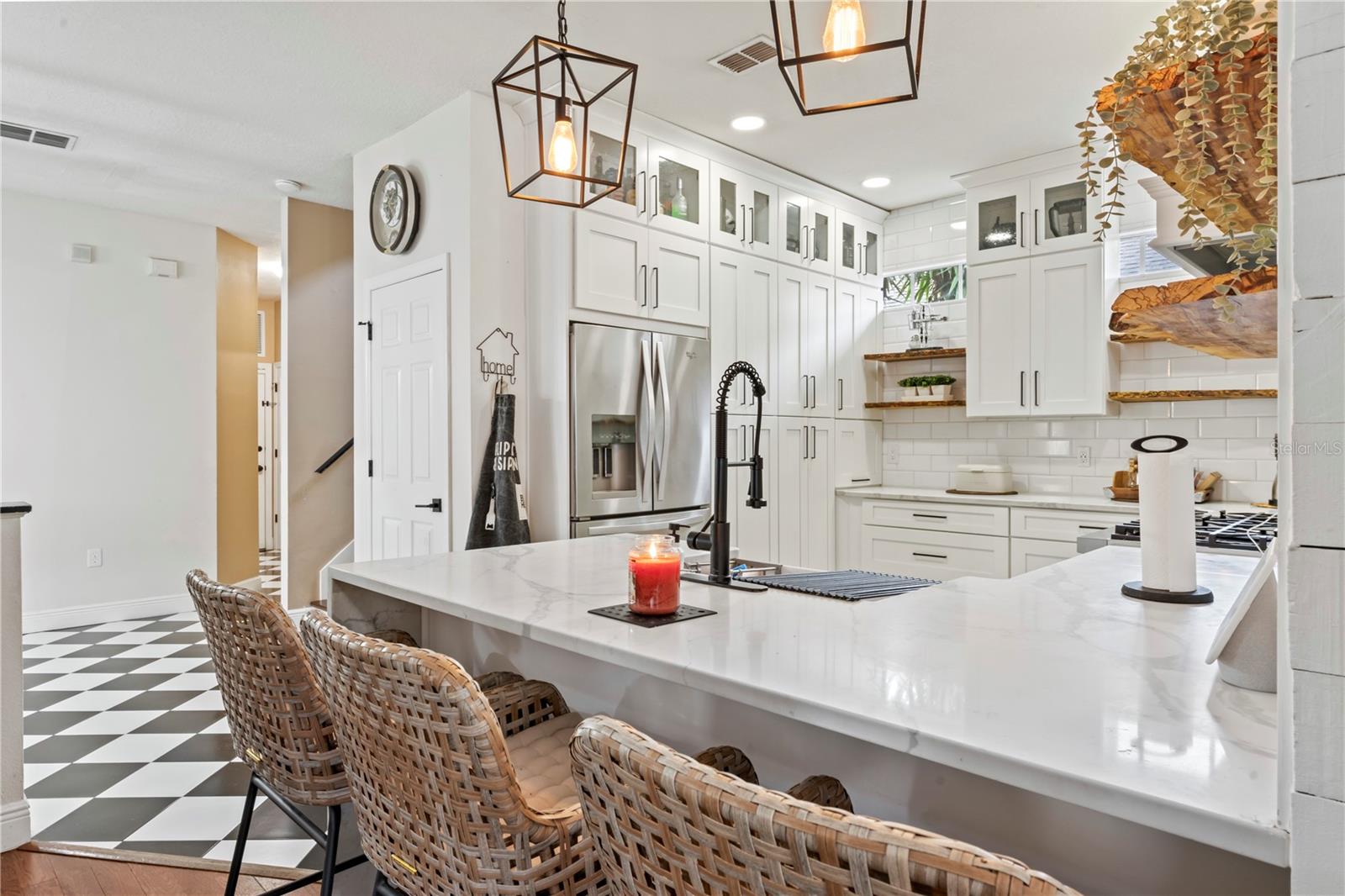 Welcome to the highly desirable Longleaf community! This 6 BED, 4 BATH with separate IN-LAW Suite is situated on a lovely street lined with beautiful oak trees. A picket fence, turfed front yard, and large paved front porch presents optimum curb appeal. Upon entrance is an open floor plan, wood floors, plantation shutters, and accent wall. A state-of-art kitchen offers a Zline 6 burner gas stove with custom hood, stainless steel appliances, tall wood cabinets, ample storage space, quartz counters with waterfall peninsula and breakfast bar. Extra large dining room for large family gatherings! The Primary suite is on the 1st floor with cathedral ceilings, en suite bath, dual sink vanity, tile shower, separate water closet, and walk-in closet. Upstairs leads to 3 spacious bedrooms and another full bath. The separate apartment can be accessed through the 2nd floor of the main home or through a separate entrance up the stairs from the yard. The 1 BED, 1 BATH suite is the perfect space in-laws, guests, or for extra income. It features its own full size kitchen, breakfast nook, living room and washer/dryer hookups! The spacious botanical courtyard provides an ideal setting for entertaining, grilling or relaxation. COMMUNITY AMENITIES include: shops/restaurants just a block away, clubhouse, heated pool/spa, parks, playgrounds, walking trail, tennis/beach volleyball/basketball courts, and baseball field. LOW HOA, and flood zone X. Located adjacent to Starkey Wilderness Preserve, less than 8 miles from the Gulf of Mexico and Suncoast Parkway. Starkey Market is less than a mile away, as well as more amazing restaurants and shops!