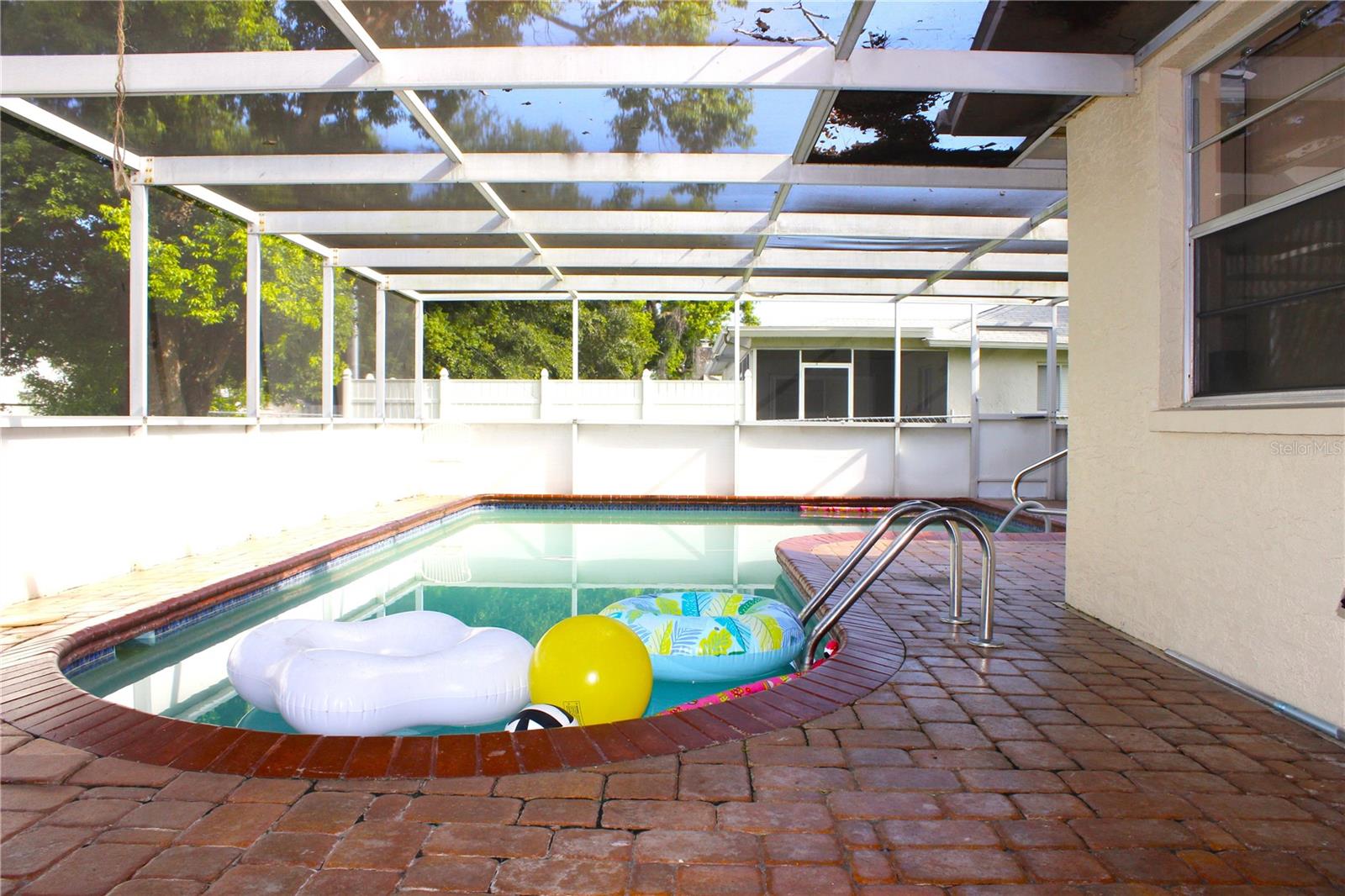 Looking to fall in love? Custom-built 4-bedroom, 2-bathroom, 2-car garage pool home in the Trinity area is a rare gem that exudes spaciousness, openness, and natural light throughout. With wood-looking ceramic floors dominating most of the living spaces and title in the bedrooms, the home offers a timeless aesthetic.The layout features an open living room, dining area, and family room, perfect for both everyday living and entertaining guests. The eat-in kitchen boasts ample cabinet space, with a counter bar opening into the dining room and family room, enhancing the flow of the space.The 3-way split floor plan ensures maximum privacy, with the master suite tucked away. The master suite includes a private bath for added comfort and convenience. The guest bath has been updated and is simply gorgeous, adding to the overall appeal of the home.Outside, the screened pool area with a large pavered deck and fenced yard creates a serene oasis for relaxation and enjoyment. Key updates include a HVAC system installed in 2019 and a new roof before closing.With all the amenities that the Trinity area has to offer, including shopping, dining, entertainment, and more, this home presents an unbeatable opportunity. Don't hesitate - pick up the phone and schedule a viewing today, as this sweet deal won't last long!