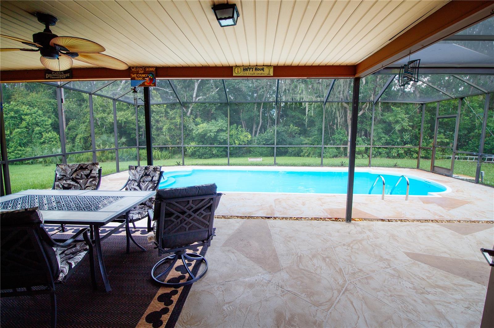 Beautiful Multi-generational Two-Story Home with Guest Residence on Over an Acre and a quarter. Discover the perfect blend of country charm and suburban convenience in this light and bright generational two-story home with an attached private guest residence. Set on over an acre and a quarter, complete with a peaceful creek at the back of the property, this home offers a true country oasis feel while being just across the Pinellas County line and minutes from local conveniences. The main two-story home features luxury vinyl flooring, three bedrooms including a master suite, a spacious loft, and two and a half bathrooms. Designed for entertaining, the floor plan includes a formal living and dining room combination, plus a separate family room off the kitchen with a brick fireplace. French doors open to the exceptional outdoor entertainment area, complete with a screened lanai, newly resurfaced deck, and sparkling pool—perfect for gatherings with family and friends. The attached guest residence offers over 1,000 sq. ft. of comfortable living space, ideal for extended family or seasonal guests. It boasts a brand-new 2-ton 14 SEER horizontal RUUD H/P split AC system with new ductwork, a spacious master bedroom, a newly remodeled bathroom with a walk-in shower, and its own large eat-in kitchen and living room. Private screened front and rear porches provide added comfort and independence. Additional upgrades and highlights include: New energy-efficient impact windows and doors throughout/Oversized resurfaced and stained driveway and pool patio/Separate screened porches for both homes/ A new well house with filter, water softener, pump, and 32-gallon expansion tank servicing both homes/ Two septic systems, including a brand-new 800-gallon tank with 150’ drain field. Peace of mind with extensive updates and modern systems/ This exceptional property offers the rare opportunity to enjoy a multi-generational lifestyle, a private retreat, and an entertainer’s dream—all in one. All this with great area schools and the convenience of the city with a private country flair