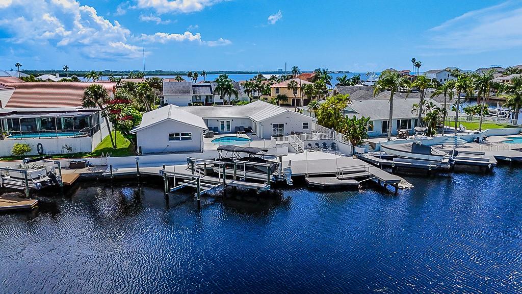 Coastal luxury meets resort-style living in this updated 3,000 sq. ft. Gulf Harbors waterfront oasis—5 bedrooms, pool, two boat lifts, and direct Gulf access just two turns and two minutes away! This stunning home in the waterfront community of Gulf Harbors has been recently updated throughout, offering a split bedroom plan and three beautifully designed bathrooms. The interior is light and bright, featuring new tile flooring in the main living areas, plush carpet in all five bedrooms, updated windows and sliders, two air conditioners, and new custom blinds throughout. Best of all, this home has never suffered any storm damage and new tile roof 2008, giving you peace of mind. Situated on a quarter-acre waterfront lot, this property is just two turns away from the open waters of the Gulf of Mexico, making it a boater’s dream. Its curb appeal is undeniable, with a paver circular driveway offering plenty of parking, a covered pavered entryway, and lush tropical landscaping framing the home beautifully. Inside, the kitchen is a true showstopper, boasting marble-look quartz countertops, a deep undermount stainless-steel sink with a high-rise faucet, white shaker cabinets with crown molding, stainless steel appliances, an island with a breakfast bar, and elegant lighting with recessed cans and a pendant fixture. Sliding glass doors in the kitchen open to the pool and waterfront, and the open floor plan seamlessly connects the dining area and family room, making this space ideal for both entertaining and everyday living. The primary suite is expansive and serene, offering water views and sliding glass doors leading directly to the pool and backyard. It features a large walk-in closet with a barn door and a luxurious ensuite bathroom complete with quartz countertops, dual undermount sinks, oil-rubbed bronze fixtures, and a stunning designer-tiled shower with a full glass enclosure. The four additional bedrooms are generously sized, and the secondary bathroom offers a tub-shower combo, quartz countertops, dual sinks, and oil-rubbed bronze fixtures. A third guest bathroom showcases a designer vanity, quartz countertop, elegant tiled shower with a glass enclosure, and brushed nickel finishes. The outdoor spaces are equally impressive. A sparkling pool with a newer marcite finish is perfectly positioned in a private courtyard surrounded by a paver deck, making it a focal point for relaxation. The waterfront backyard provides ample deck space with low-maintenance composite decking, a white vinyl fence for privacy, and two boat lifts with direct deck access. A floating dock offers space for water toys, and nature lovers will enjoy watching dolphins, manatees, sea turtles, and more right from their backyard. As part of Gulf Harbors, residents enjoy access to an optional fee-based membership at the exclusive Gulf Harbors Beach Club, two private boat ramps, and an optional homeowners association. This property perfectly combines luxury, style, and the ultimate Florida waterfront lifestyle. The home is located near Tampa, St. Petersburg, Tampa International Airport, quaint Downton New Port Richey, sporting events, beaches, medical centers, theaters, shopping, dining, golf courses, and more! Schedule a private tour today! Home is available to rent for 4850 per month as well.