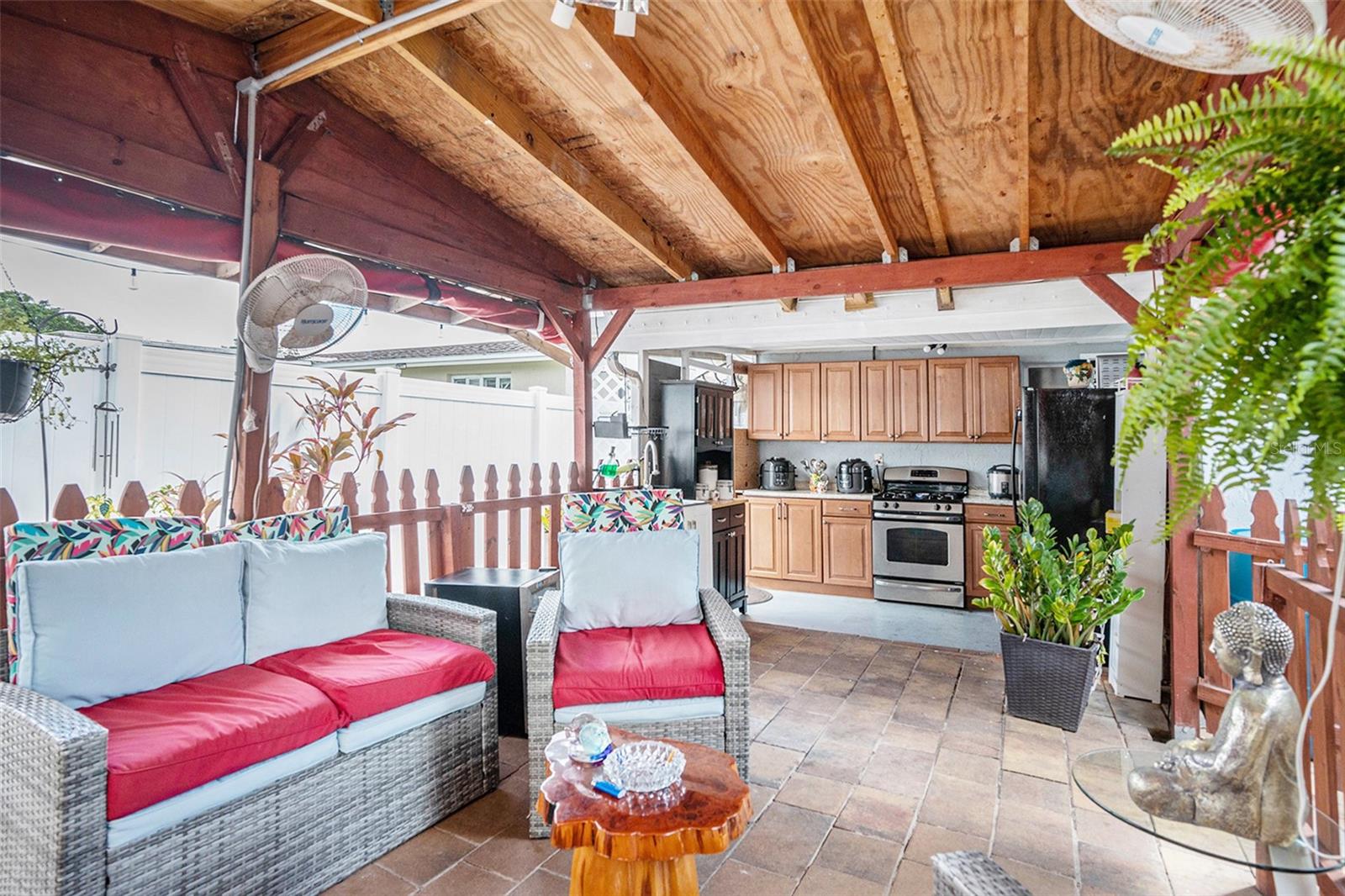 SELLER HIGHLY MOTIVATED! Welcome to this beautifully maintained home featuring 3 spacious bedrooms and 2 full bathrooms, perfectly located in the heart of New Port Richey. Step outside and enjoy a covered rear terrace overlooking a generous backyard, ideal for family gatherings and outdoor living. The backyard is fully fenced with durable PVC fencing for privacy and security. As an added bonus, the outdoor area includes a second kitchen equipped with appliances—perfect for entertaining or preparing meals outdoors—and an additional storage room that can be used as a hobby space or for extra organization. Inside, the property also includes a bonus room with a half bathroom, making it perfect for a mother-in-law suite, private office, or guest space. In total, this home offers 4 BEDROOMS, 2 FULL BATHROOMS, and 2 HALF BATHROOMS. A NEW ROOF provides peace of mind and long-term value. Conveniently located near shopping, dining, and major roadways. Plus, this property is located in a NO FLOOD ZONE, giving you additional security for your investment. Seller is very motivated to sell – schedule your showing today!