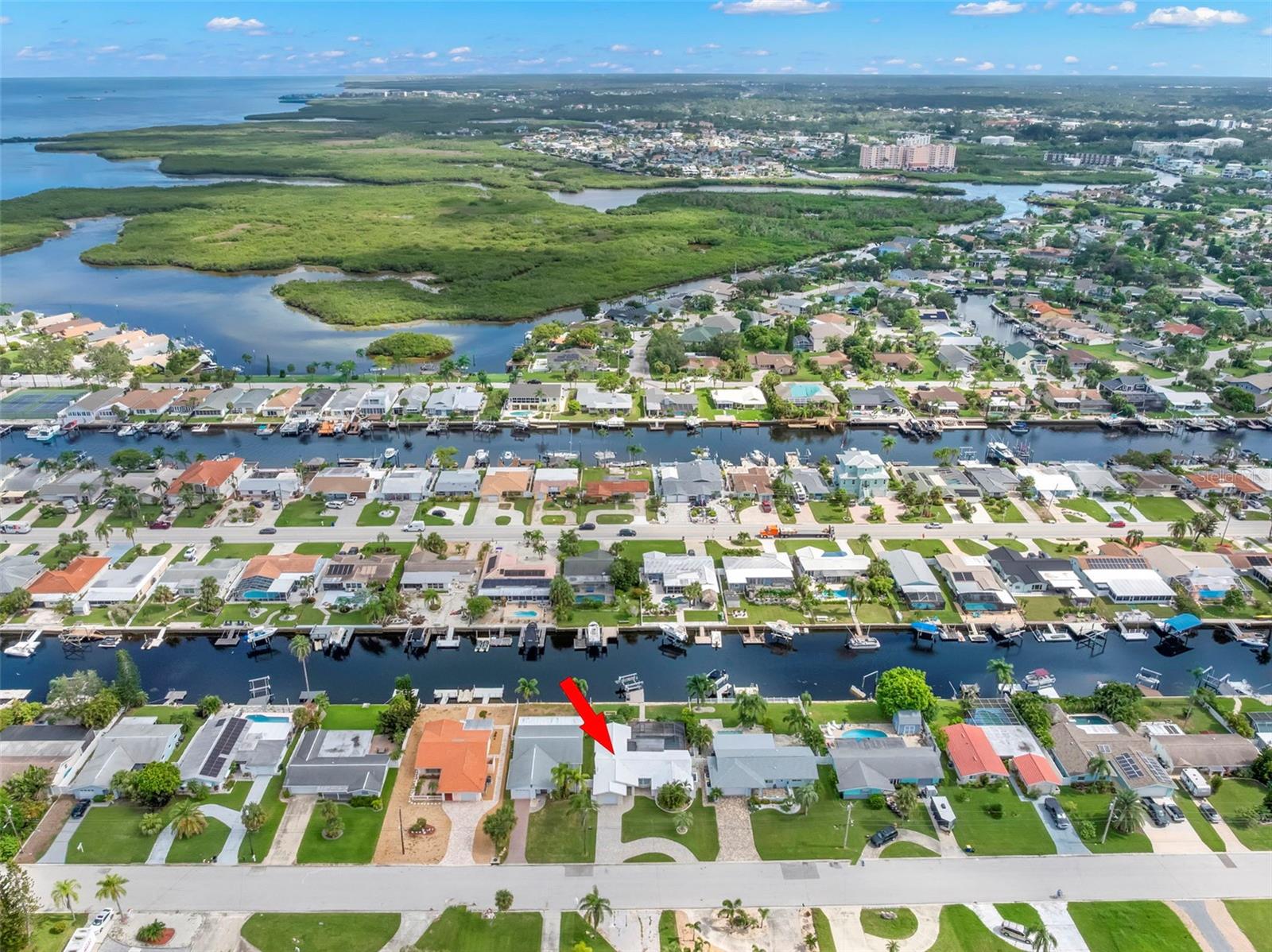 DREAMING OF YOUR OWN PEACEFUL, PRIVATE OASIS IN THIS STUNNING WATERFRONT HOME WITH YOUR BOAT IN THE BACK YARD--DOCK AND BOAT LIFT WITH ELECTRIC AND WATER ARE ALREADY IN PLACE. YOU ALSO HAVE A BEAUTIFUL SWIMMING POOL WITH A BIRDCAGE ENCLOSURE TO KEEP IT NICE AND CLEAN AND AN OUTDOOR KITCHEN (REFRIGERATOR TO BE PROVIDED BY SELLER). THE GENERAL CONTRACTOR DID A FABULOUS JOB INSIDE. THE KITCHEN CABINETS ARE BLACK AND WHITE CREATING A TIMELESS HIGH CONTRAST LOOK THAT WILL LAST FOREVER, AND THERE IS A TON OF CABINETS IN THE PANTRY THAT ARE FROM FLOOR TO CEILING. THE HOME HAS AN OPEN FLOOR PLAN WITH LOTS OF NATURAL LIGHT. LOOK CLOSELY AT THE PICTURE OF THE GARAGE WITH A BEAUTIFUL NEW POLYASPARTIC FLOOR AND A UTILITY SINK THAT ALWAYS COME IN HANDY. THE BATHROOM OFF THE MASTER BEDROOM IS STUNNING AND LIKE NO OTHER. THE PRIVATE BEACH CLUB IS JUST DOWN THE STREET. THIS HOME IS TRULY ONE OF A KIND SO HERE IS YOUR GOLDEN OPPORTUNITY. DON'T MISS OUT--COME CHECK IT OUT!!!
