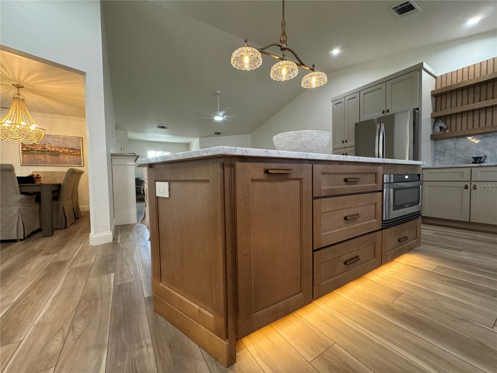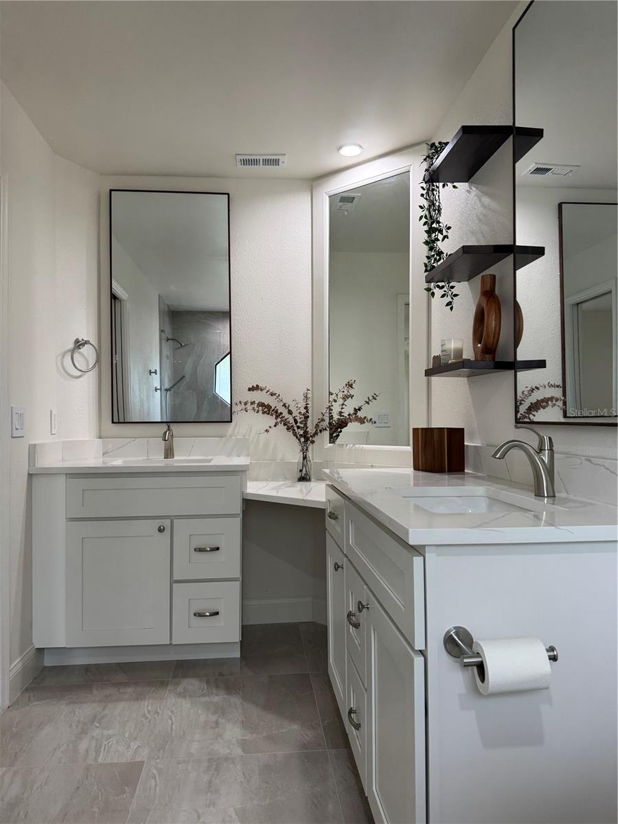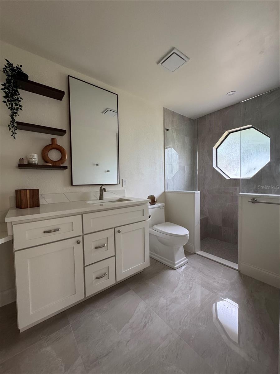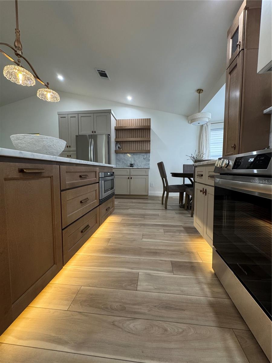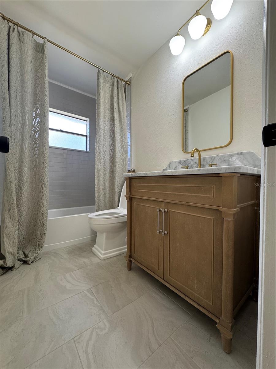Wow this designer home is completely remodeled with so many designer touches! This home also has a brand new roof and a brand new air conditioning unit (both the inside and outer unit), Beautiful neutral luxury vinyl flooring throughout. The outdated popcorn ceilings were removed for an esthetic smooth finish. All new lighting was installed throughout the home. The kitchen has marble countertops with a large sitting island, a classic farm sink with a pass through window to the patio. New appliances were installed, a built-in panel dishwasher, a large microwave drawer, with toekick lighting in the kitchen, and a breakfast nook. Beautiful cabinets for lots of storage. The nice size living room has cathedral ceilings and an electric remote controlled fireplace with a quartzite mantle. The master bedroom has his and her sinks with a vanity sitting area, as well as quartz countertops, a large shower with a seat for comfort and two shower heads. The guest bathroom is also designed with a lovely marble countertop, and shower/tub combo. The laundry room has a washer dryer combo (no need to move over wet laundry), and a quartz counter for folding clothes. There’s a screened in patio for entertaining that opens to a large fenced backyard and fire pit. Great for dogs to run and play. This home is convenient to shopping, yet tucked back in an established neighborhood on a corner lot with lots of room. This home has it all! Priced to sell! Located in a non flood zone.