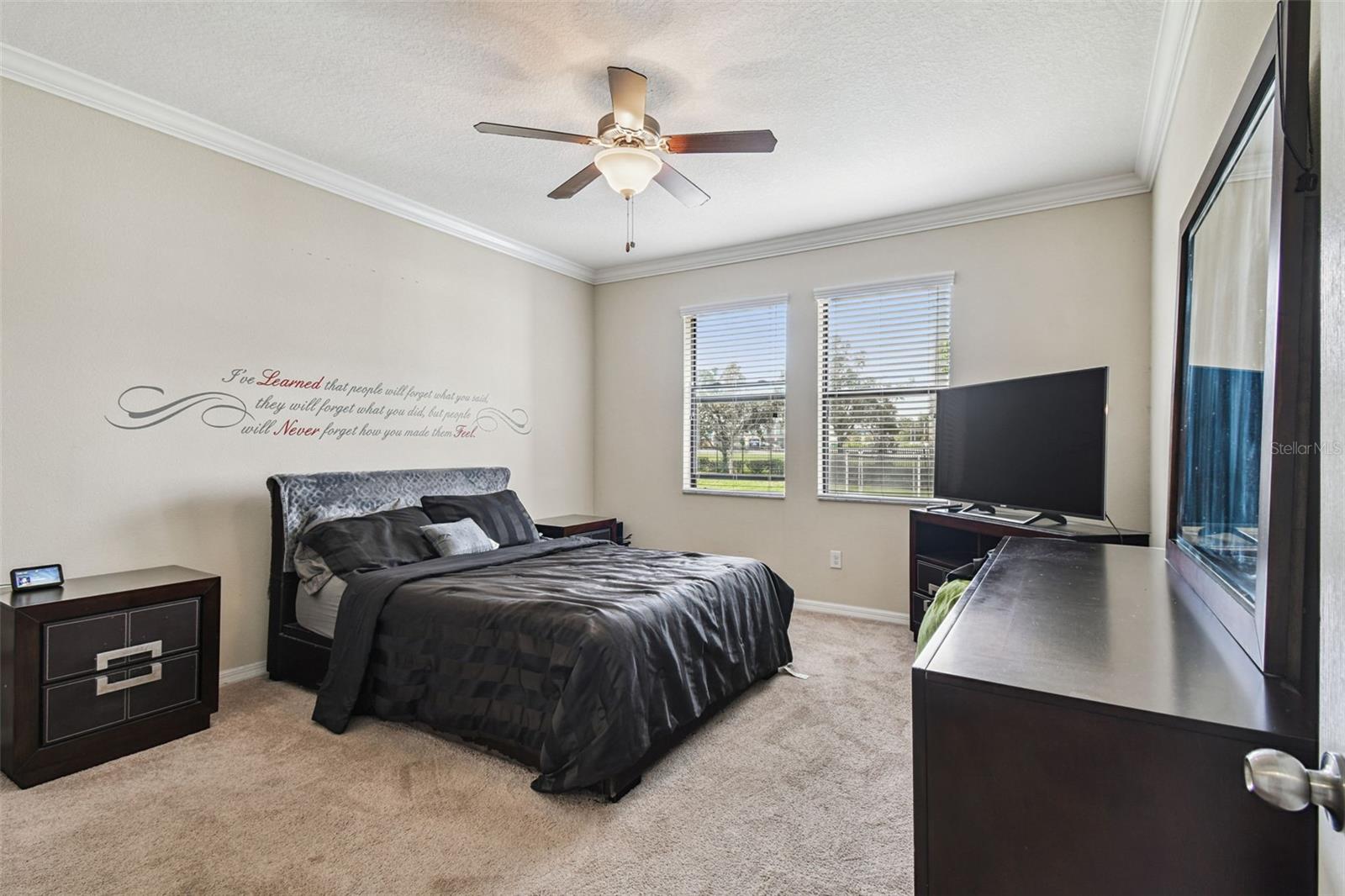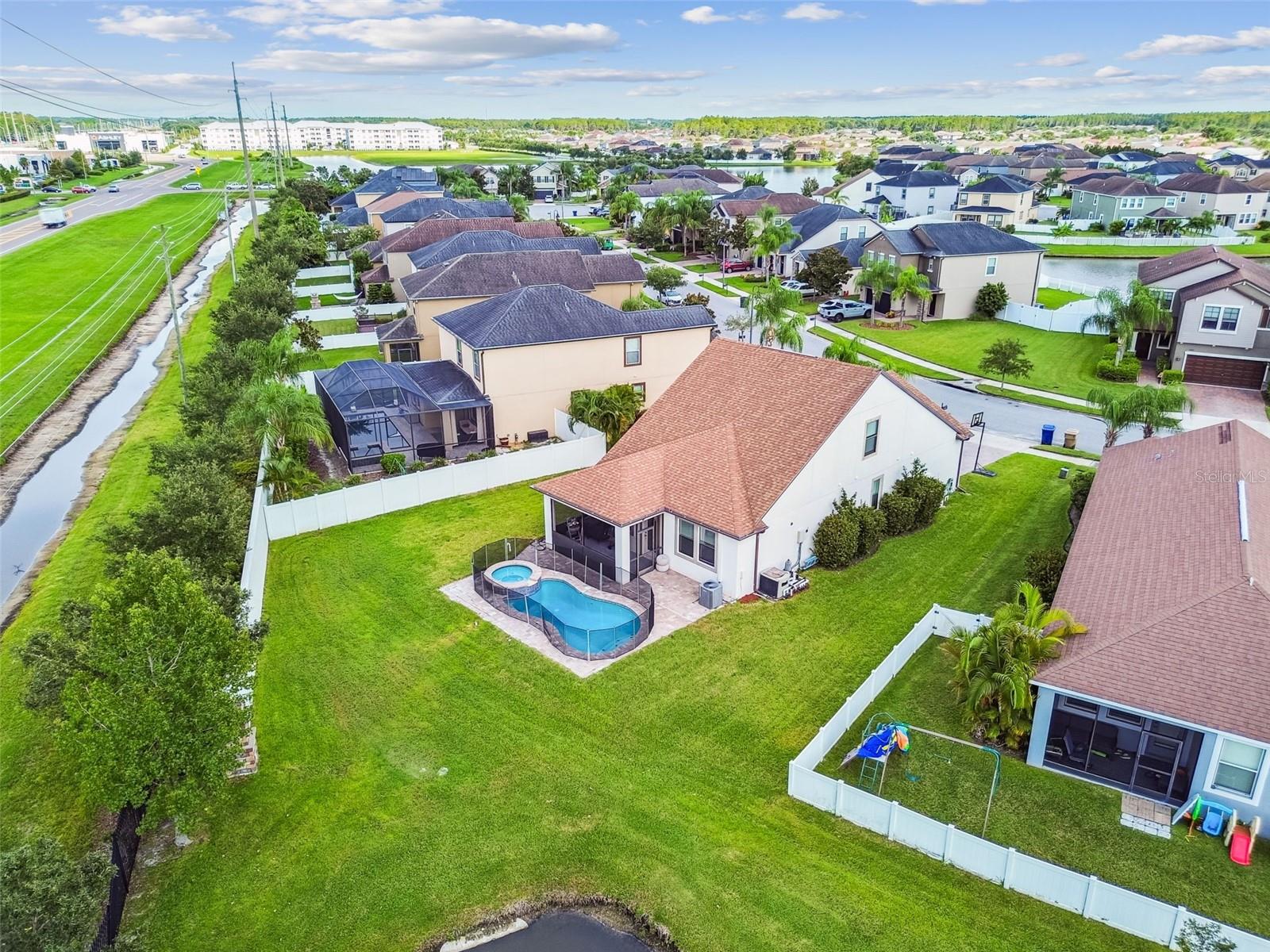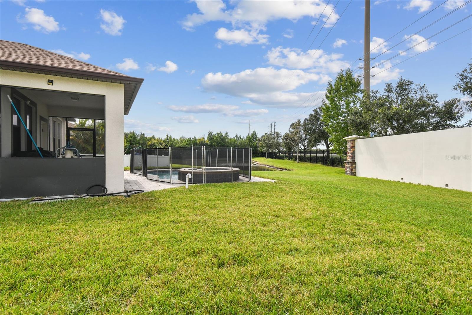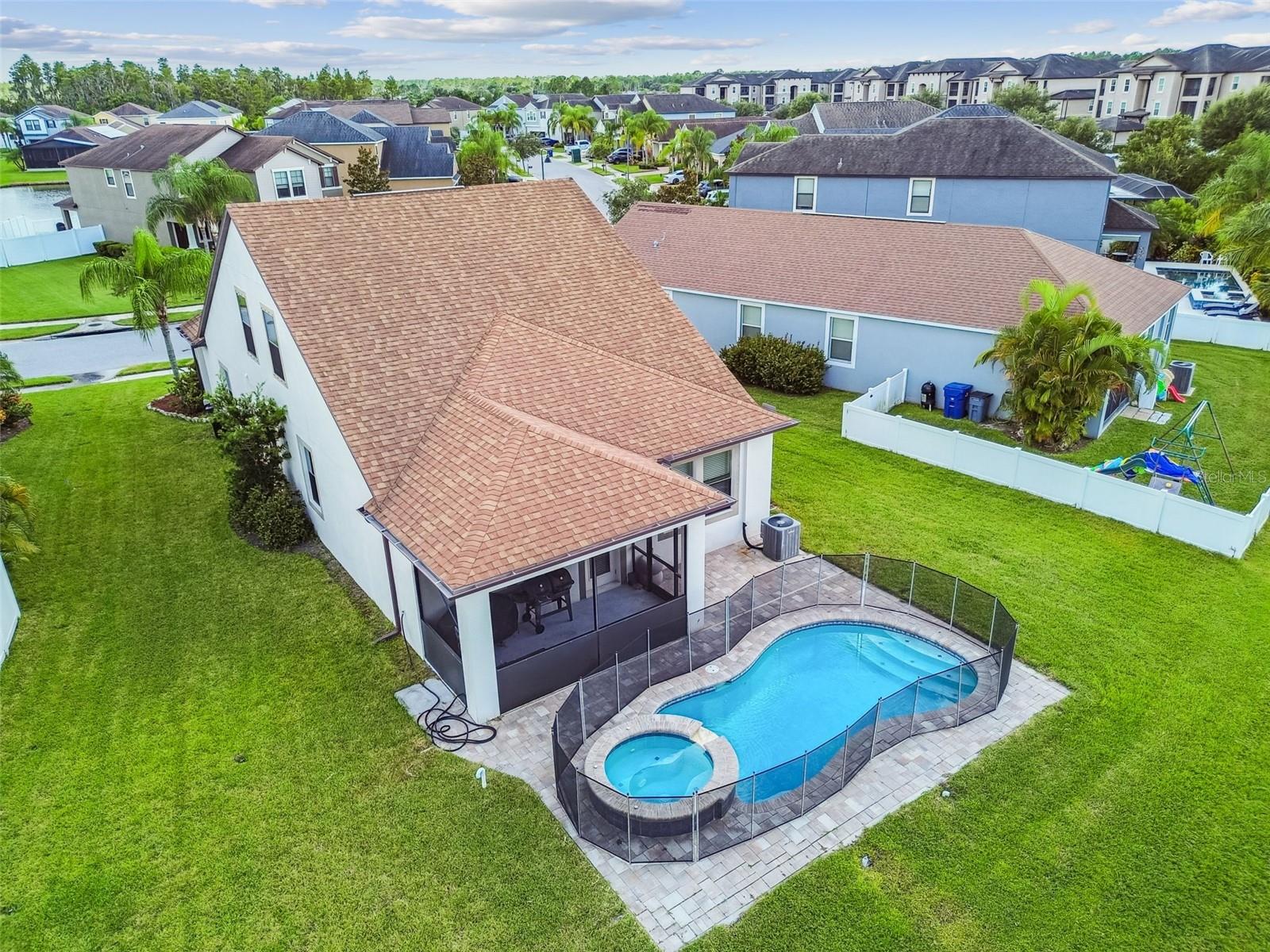 Welcome to this beautifully designed 3 bedroom, 3 bathroom home located in the desirable gated community of the Villages at Trinity Lakes. This two story residence offers the perfect blend of comfort and style, with the primary suite conveniently located downstairs. The spacious open floor plan features a large kitchen with an island that flows seamlessly into the living and dining areas, making it ideal for entertaining. Step outside to your private oasis with a covered patio, pavered deck, and a sparkling pool with jacuzzi, perfect for relaxing or hosting gatherings. The pool is heated with a variable speed and energy efficient pool pump and motor. There are no rear neighbors which affords additional privacy. The primary suite includes a walk-in closet and en suite bathroom, creating a tranquil retreat. Upstairs, you’ll find two additional bedrooms with fill walk in closets, a versatile loft space ideal for a home office, playroom, or media area, and a full bathroom. Importantly, none of the upstairs bedrooms are located over the garage or directly over the primary bedroom, providing a quieter and more private atmosphere for everyone. In most two-story homes, the bedrooms are over the garage which makes them a lot hotter or over the living room and primary bedroom where you can hear footsteps at night. In this home, this does not happen. This is a very convenient and awesome part of this set up. For even more peace of mind, this home comes with transferable warranties for the AC unit and pool heater along with the structural roof and foundation warranty from the original builder. With a pavered driveway, a well-maintained neighborhood, and the safety of a gated community, this home truly has it all.