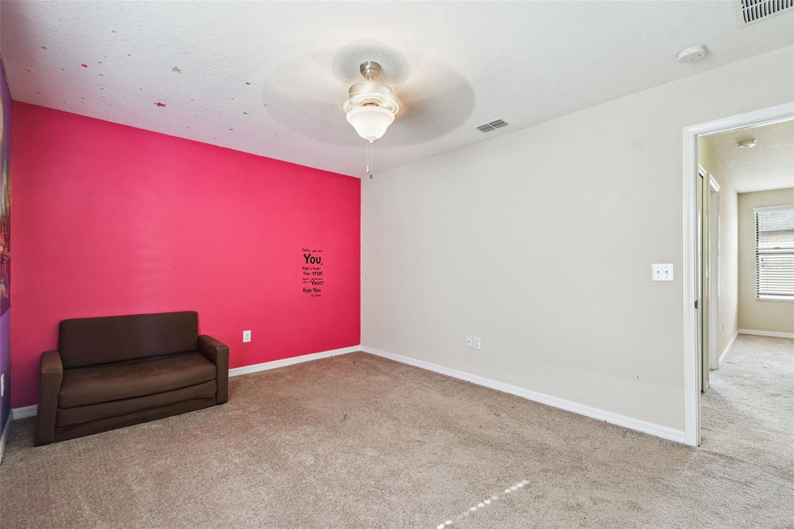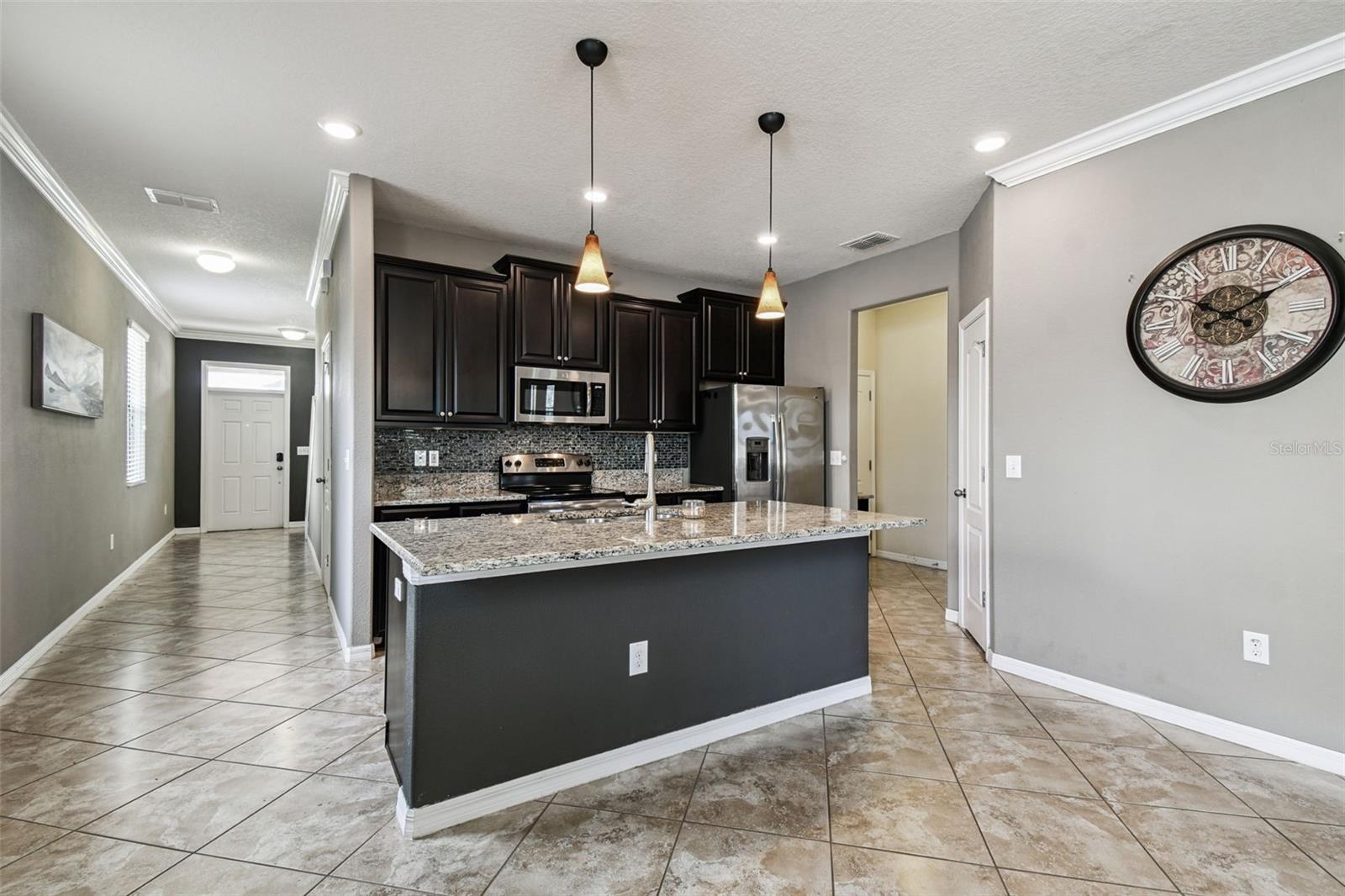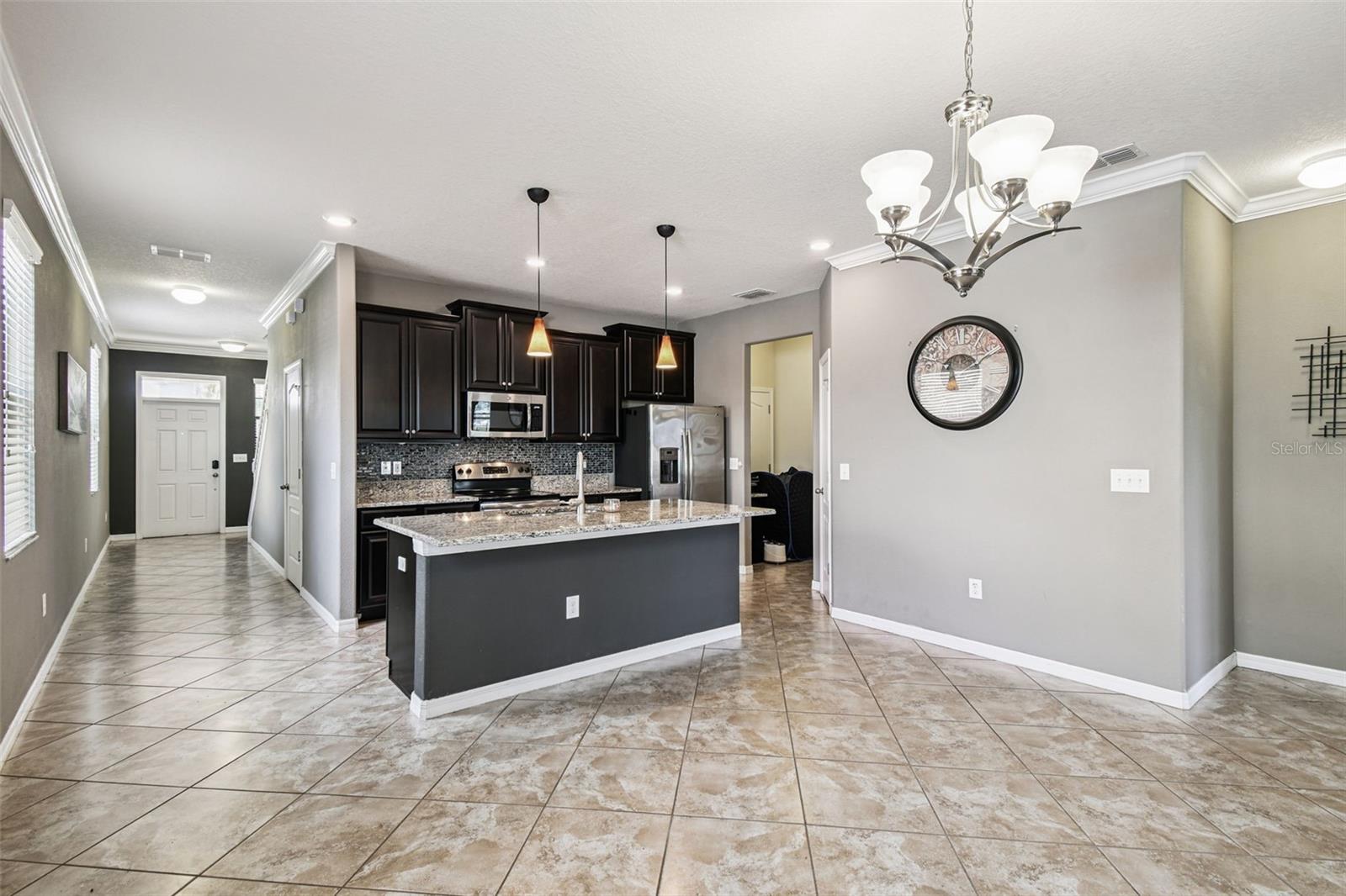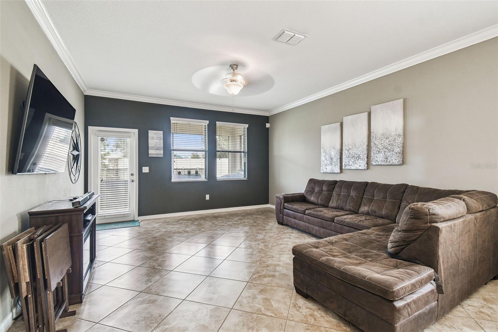Welcome to this beautifully designed 3 bedroom, 3 bathroom home located in the desirable gated community of the Villages at Trinity Lakes. This two story residence offers the perfect blend of comfort and style, with the primary suite conveniently located downstairs. The spacious open floor plan features a large kitchen with an island that flows seamlessly into the living and dining areas, making it ideal for entertaining. Step outside to your private oasis with a covered patio, pavered deck, and a sparkling pool with jacuzzi, perfect for relaxing or hosting gatherings. The pool is heated with a variable speed and energy efficient pool pump and motor. There are no rear neighbors which affords additional privacy. The primary suite includes a walk-in closet and en suite bathroom, creating a tranquil retreat. Upstairs, you’ll find two additional bedrooms with fill walk in closets, a versatile loft space ideal for a home office, playroom, or media area, and a full bathroom. Importantly, none of the upstairs bedrooms are located over the garage or directly over the primary bedroom, providing a quieter and more private atmosphere for everyone. In most two-story homes, the bedrooms are over the garage which makes them a lot hotter or over the living room and primary bedroom where you can hear footsteps at night. In this home, this does not happen. This is a very convenient and awesome part of this set up. For even more peace of mind, this home comes with transferable warranties for the AC unit and pool heater along with the structural roof and foundation warranty from the original builder. With a pavered driveway, a well-maintained neighborhood, and the safety of a gated community, this home truly has it all.