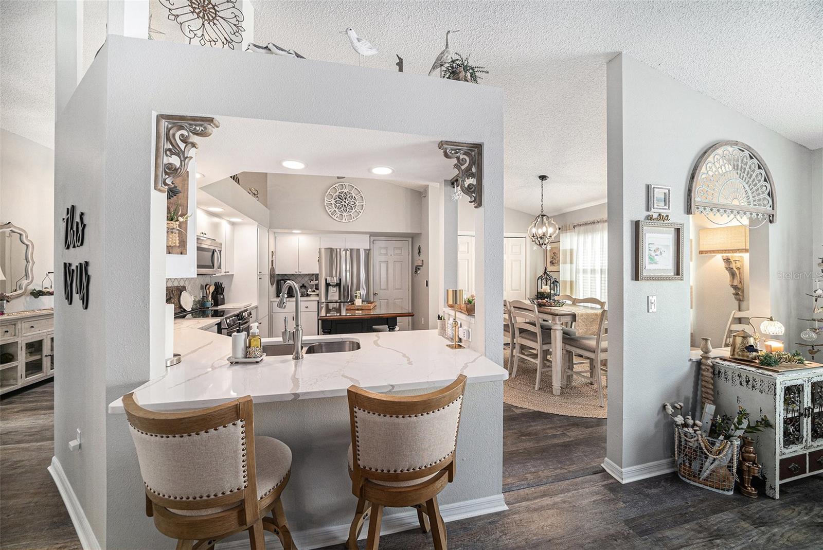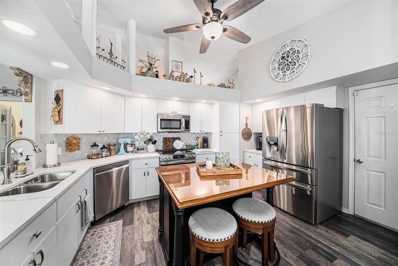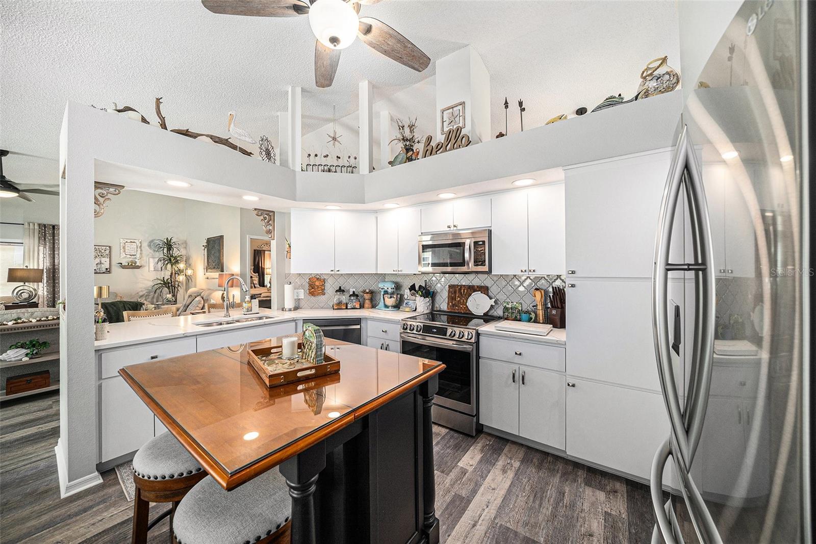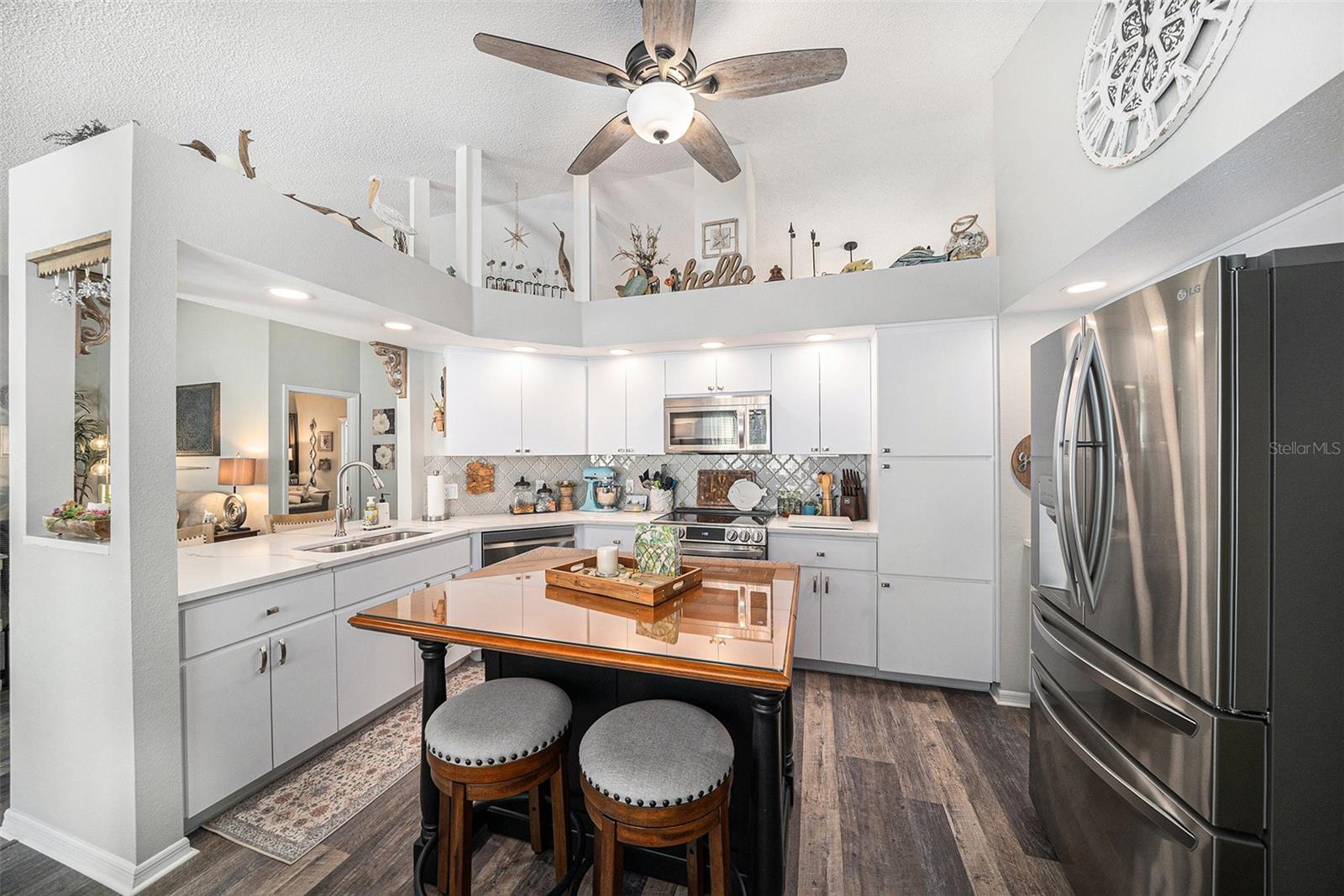 NEW PRICE IMPROVEMENT - MOTIVATED SELLERS - UPGRADED, BEAUTIFUL, CUSTOM and IMMACULATE are just a few ways to describe this home. Experience the perfect blend of elegance, comfort, and privacy in this beautifully appointed 2-bedroom, 2-bath with an office/den and a 2-car garage, ideally positioned on a premium end lot with no rear neighbors. From soaring cathedral ceilings to designer touches, this residence showcases upgrades galore and an effortless flow for both relaxation and entertaining. This beauty has an abundance of enhancements such as new roof, flooring, impact resistant windows, stainless steel appliances, quartz countertops, upgraded bathrooms, HVAC, water heater, lighting, sink and ceiling fans throughout. The gourmet kitchen offers abundant cabinetry and an inviting breakfast nook, while the open living and dining areas are bathed in natural light. A spacious Florida room extends off the living space, providing a serene retreat. The owner’s suite impresses with a walk-in closet and spa-inspired bath featuring a walk-in shower. Residents of Millpond Lakes Villas, a sought-after gated community, enjoy resort-style amenities including two sparkling pools, spa, fitness center and a beautifully designed clubhouse with lots of activities. With its convenient location near upscale shopping, dining, golf, and Gulf Coast beaches, this villa/condo embodies the ultimate Florida lifestyle. Indulge in the luxury you deserve—welcome home.