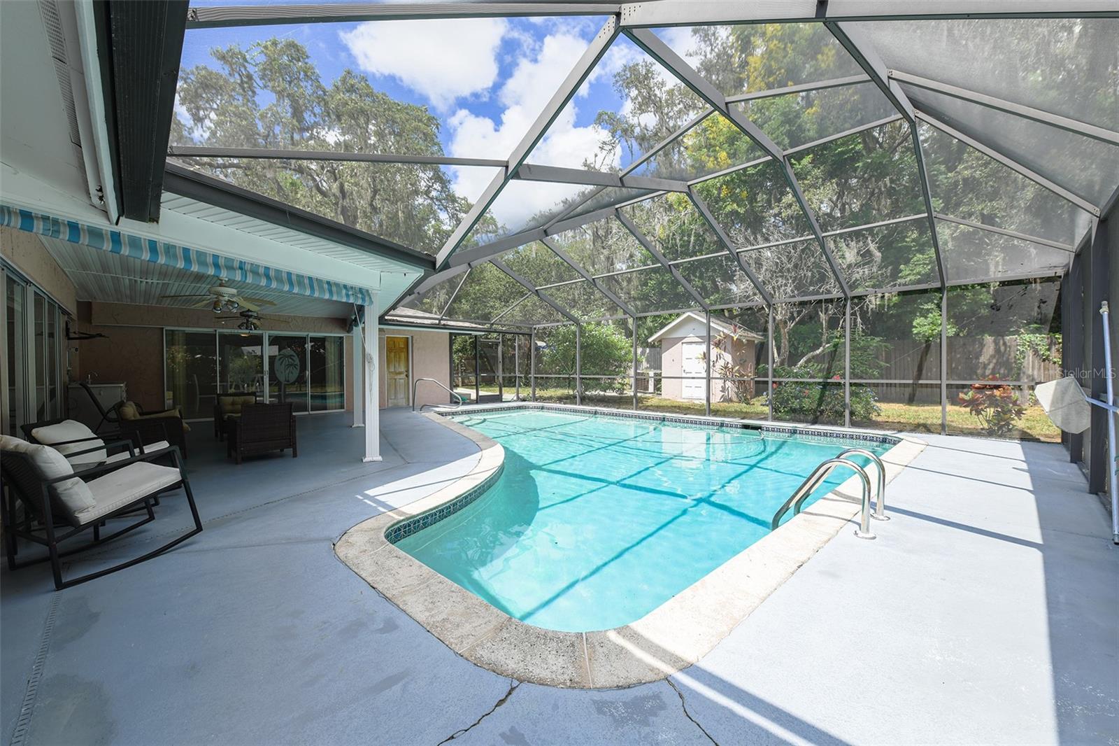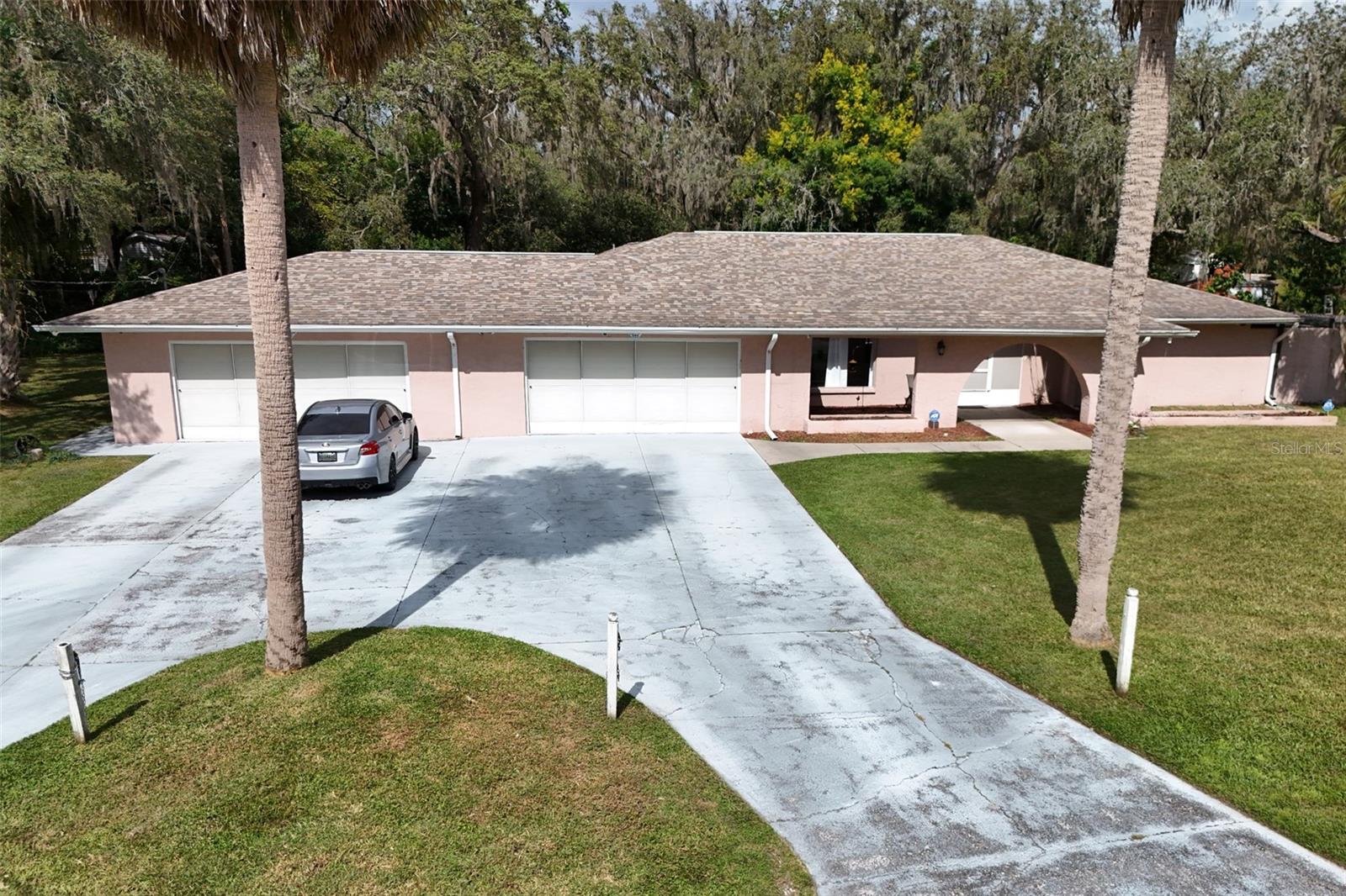 Welcome to 8976 Lake Dr, a one-of-a-kind estate that combines old-school charm with rare, hard-to-find features in the heart of New Port Richey. Situated on three road-frontage lots totaling 1.14 acres, this solidly constructed 1976-built home offers timeless architecture along with the kind of land, space, and character that’s nearly impossible to find today — all with NO HOA on WELL WATER Boasting nearly 2,832 square feet of heated living space, this 4-bedroom, 3-bathroom residence exudes the charm of an old-school Florida mansion, offering timeless design and ample room to make it your own. Enjoy sunny afternoons by the SCREENED IN POOL — ideal for year-round Florida living — and spend your evenings watching the sunset over Moon Lake right from your porch. The views from this home are nothing short of breathtaking. Major updates include: ROOF replaced in 2019 SEPTIC TANK replaced in 2023 HVAC system replaced in 2018 Car enthusiasts and hobbyists will appreciate the RARE 4-CAR GARAGE, providing space not only for vehicles but also for storage or a workshop. The expansive lot and circular driveway offer endless possibilities — from lush landscaping to potential expansion or redevelopment of the adjoining lots. Located directly across the street from scenic Moon Lake Park, you’ll enjoy easy access to a public boat ramp, jet ski launch, and paddleboarding opportunities, making it easy to embrace the water lifestyle right outside your front door. Whether you're looking for a private estate, an investment property, or a chance to own a unique piece of New Port Richey history, 8976 Lake Dr delivers with space, views, and an unbeatable location. Don’t miss this rare opportunity — schedule your private showing today!