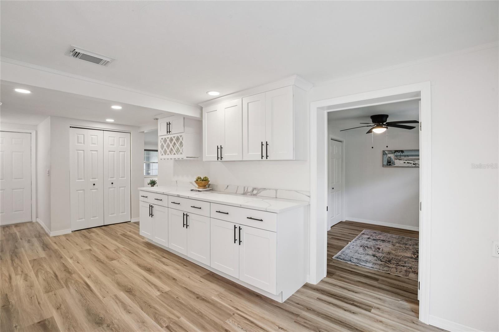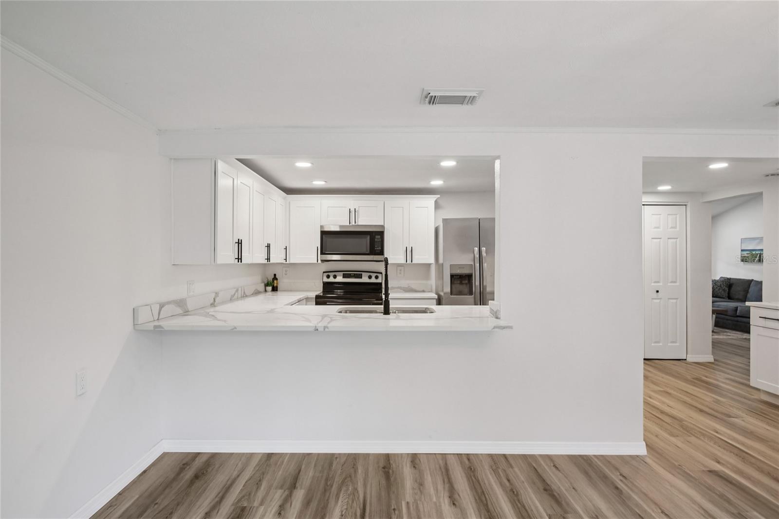 PRICED TO SELL - This home is MOVE-IN READY and being sold FULLY FURNISHED! Welcome to your slice of paradise in the GOLF-CART friendly community of Gulf Harbors! This beautifully renovated 3-bedroom, 2-bathroom home offers 1,454 square feet of comfortable living. When you arrive, you’ll notice the lush tropical landscaping, archway details & gorgeous mosaic tile patio. Step inside and you’ll find a bright and airy OPEN LAYOUT with VAULTED CEILINGS, recessed lighting, NEW FLOORING, fresh paint, and stylish updates throughout. The kitchen is a standout with GORGEOUS QUARTZ COUNTERTOPS, stainless steel appliances and plenty of cabinetry and countertop space, perfect for entertaining or a quiet night in. The spacious primary bedroom abounds in natural light, and the additional two bedrooms are perfect for guests or a home office. All bedrooms are outfitted with Levolor light blocking window shades. Both bathrooms have been tastefully redone with MODERN FIXTURES and TIMELESS TILEWORK. Out back, enjoy your fully fenced, lush yard with paver patio and NO REAR NEIGHBORS. All major systems have been recently updated giving you peace of mind: NEW ROOF (2023), NEW HVAC (2023), NEW ELECTRICAL PANEL (2023), NEW WATER HEATER (2023). The Gulf Harbors Civic Association hosts neighborhood events throughout the year - joining is optional for a low annual fee, which also gives you access to a community BOAT RAMP to enjoy the Gulf waters. You can also join the Gulf Harbors Beach Club for just $200/year for your very own PRIVATE BEACH – a rare perk that gives you a spot to relax by the water, grill your fresh catch of the day and watch the sunset. This is more than just a home, it's the COASTAL LIFESTYLE you've always wanted.