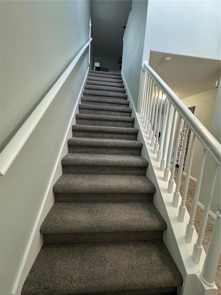 THE TRINITY HOME YOU HAVE BEEN WAITING FOR! A TRUE FIVE BEDROOM HOME WITH PRIMARY SUITE ON THE FIRST FLOOR. FOUR BEDROOMS, 2 FULL BATHS ATTIC SPACE AND LOFT ARE FOUND UPSTAIRS. LOFT WITH NEW HIGH THREAD COUNT, PREMIUM SOFT AND PLUSH CARPET ADDED RECENTLY. THIS RESIDENCE IS NESTLED ON A LOT FEATURING CONSERVATION AND POND VIEWS THROUGH YOUR SCREENED IN PATIO, WITH PLENTY OF ROOM TO ADD THE POOL AND OUTDOOR AREA OF YOUR DREAMS! NICELY ADORNED KITCHEN FEATURES ESPRESSO CABINETRY, GRANITE COUNTERS, STAINLESS APPLIANCES AND ISLAND WITH SEATING. LIVING ROOM WITH NEW WATER AND SCRATCH RESISTANT WOOD LAMINATE FLOORS HAS A GREAT VIEW OF THE BEAUTIFUL CONSERVATION AND POND TO THE REAR OF THE HOME. COVERED AND SCREENED LANAI OFF THE LIVING ROOM OFFERS A GREAT SPACE FOR YOUR MORNING COFFEE OR EVENING WINE. BACKYARD IS ALREADY FULLY FENCED FOR YOUR FOUR LEGGED FRIENDS. HOME HAS A WATER SOFTENER SYSTEM, ADDITIONAL CABINETRY ADDED IN EVERY BATHROOM FOR EXTRA STOAGE. PARK YOUR CARS IN THE LARGE TWO CAR GARAGE. "A" RATED SCHOOLS! NO CDD! VILLAGES OF TRINITY LAKES OFFERS RESIDENTS A COMMUNITY DOG PARK, PLAYGROUND AND TENNIS COURTS!HURRICANE IMPACT WINDOWS AND SHUTTERS, AND NEWLY INSTALLED SOLAR PANELS.