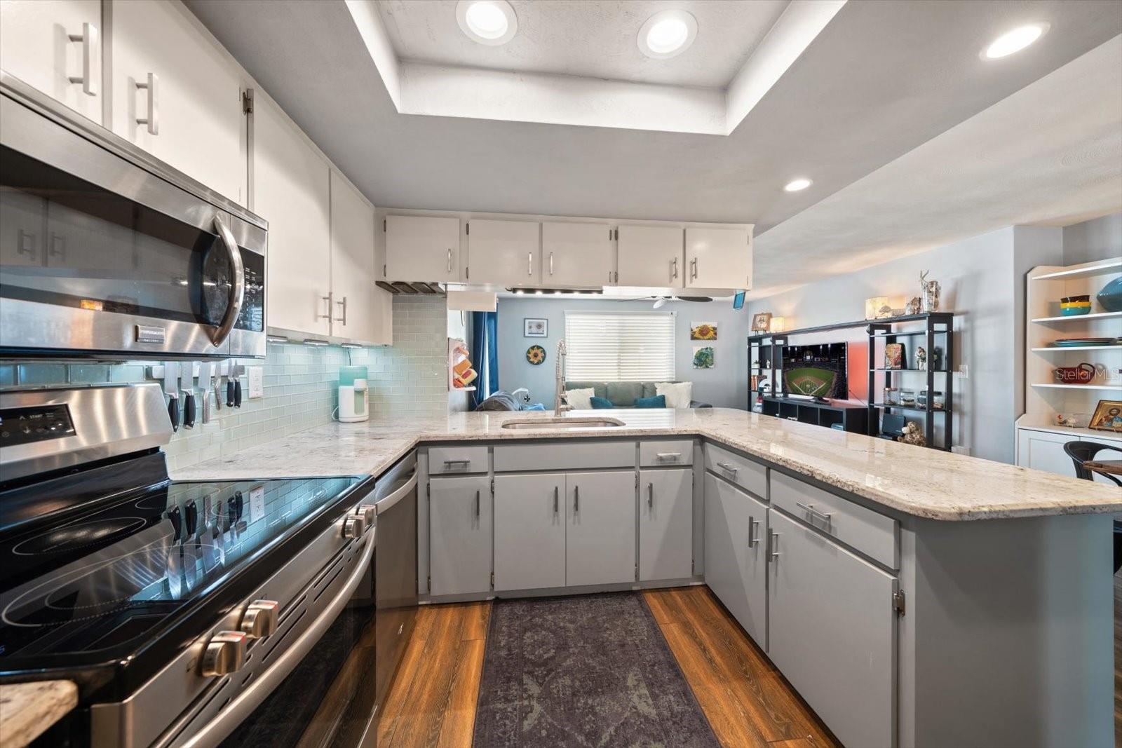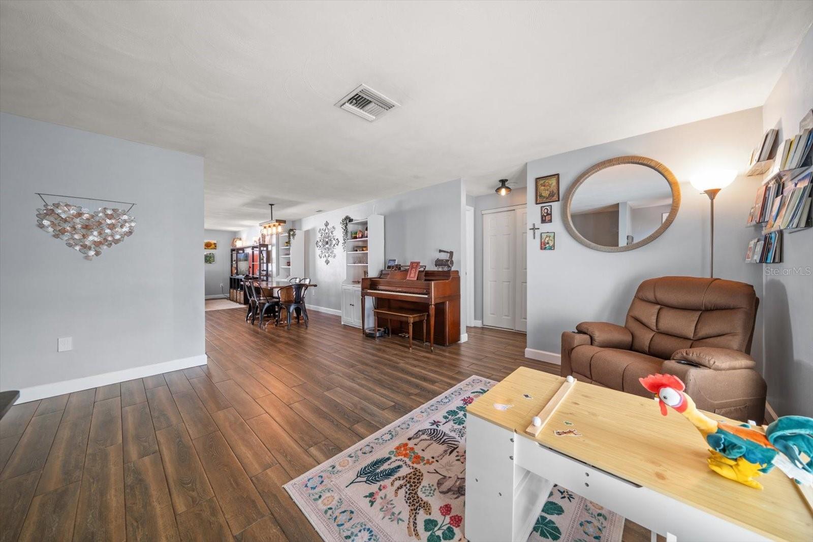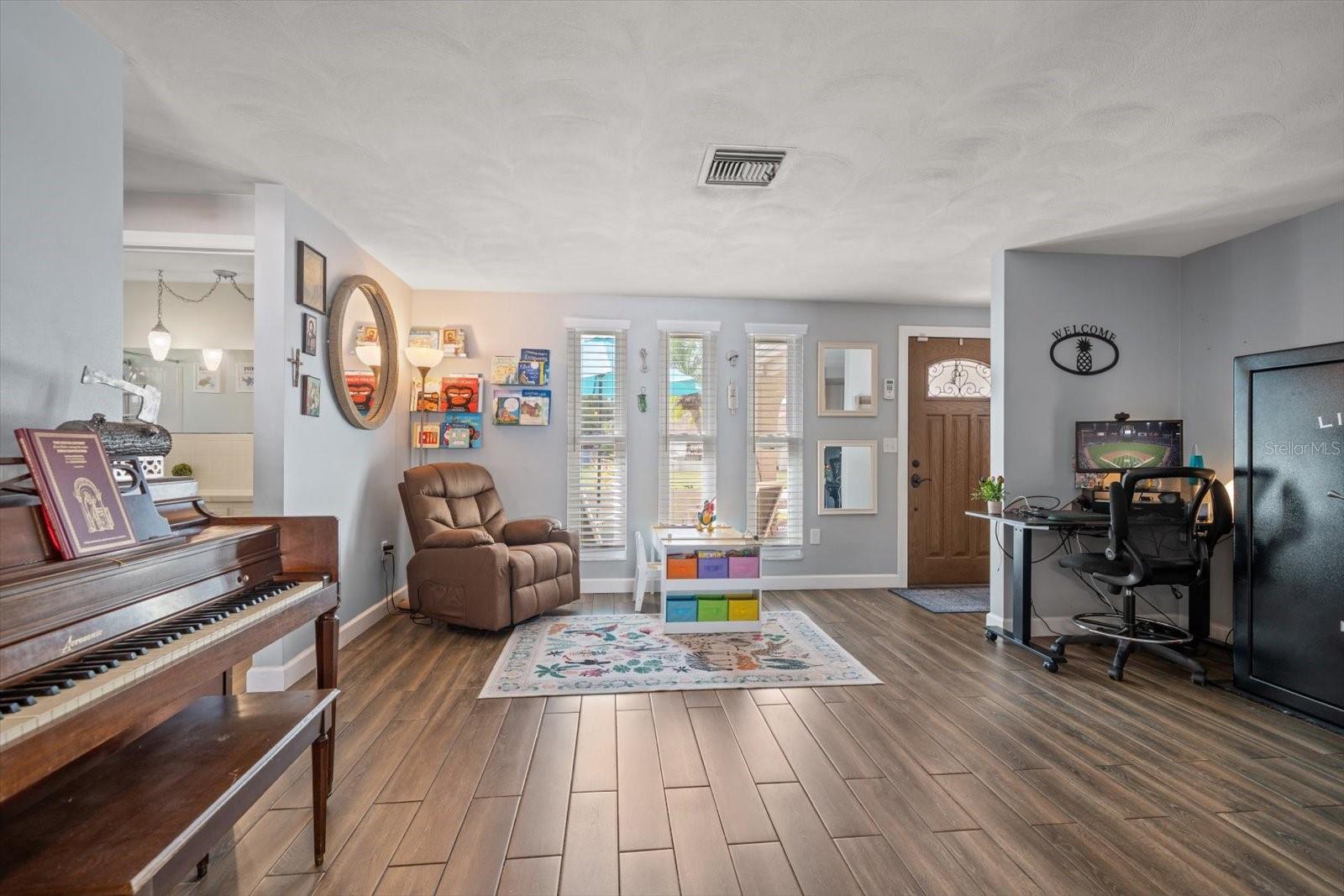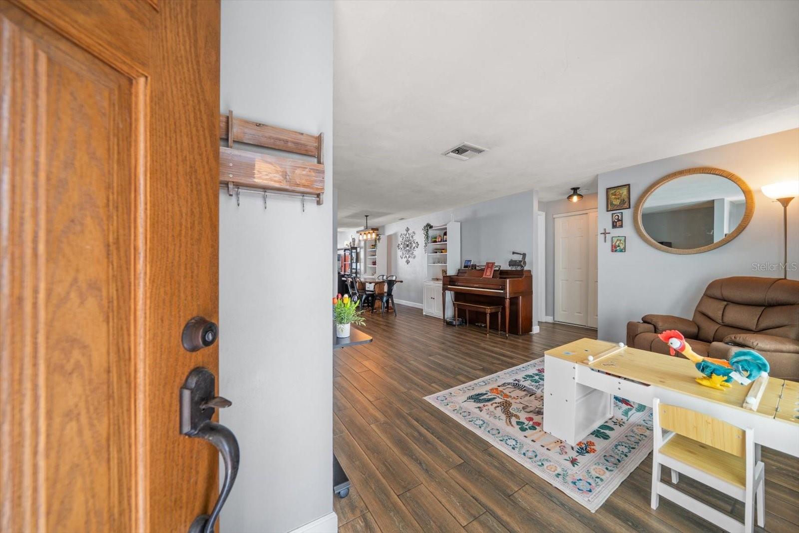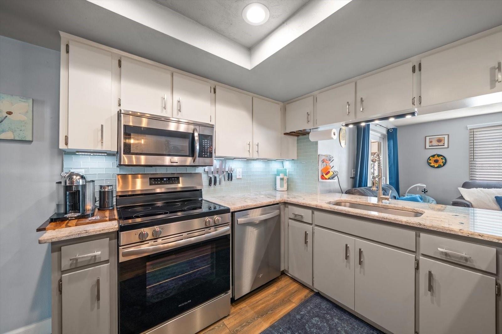Located in the HIGHLY SOUGHT AFTER NEIGHBORHOOD of WOOD TRAIL VILLAGE, on a QUIET STREET WITH MINIMAL THROUGH TRAFFIC, this BLOCK CONSTRUCTION, NON-FLOOD ZONE, UPDATED & MOVE-IN READY, WELL-MAINTAINED SINGLE FAMILY HOME is ready for its new owner…YOU! Enter into FUNCTIONAL, OPEN PLAN kitchen, living and dining areas, which along with the SPLIT BEDROOM LAYOUT offers the perfect space for all. BRIGHT, NATURAL LIGHT throughout, with morning sun on the back lanai, gorgeous sunset skies to enjoy on the front patio and ATTRACTIVE GOVEE EXTERIOR LIGHTING to welcome you home after dark. PROPERTY AGES & STAGES (truly…move-in ready!) Brand new shingle roof (2025), fully renovated primary bath (2025), water heater (2025), garage door (2024), impact windows, living room slider, side garage door and lanai door to bath (all 2023), consistent ceramic wood-look plank tile throughout the home (2018), electric panel (2018), HVAC (2010). Stainless steel kitchen appliances include dishwasher (2025), range (2024), disposal (2023), refrigerator and microwave (2015). Superb location with EASY MAIN THOROUGHFARE ACCESS to…well everything! Shops, restaurants, parks, sports and recreation, airports, healthcare facilities, local markets, cultural events…and more! OPTIONAL $30 ANNUAL membership in Wood Trail Village HOA. Be sure to VIEW THE 3D TOUR link for an immediate walk through experience, schedule your in person visit and make this very special home…YOURS!!
