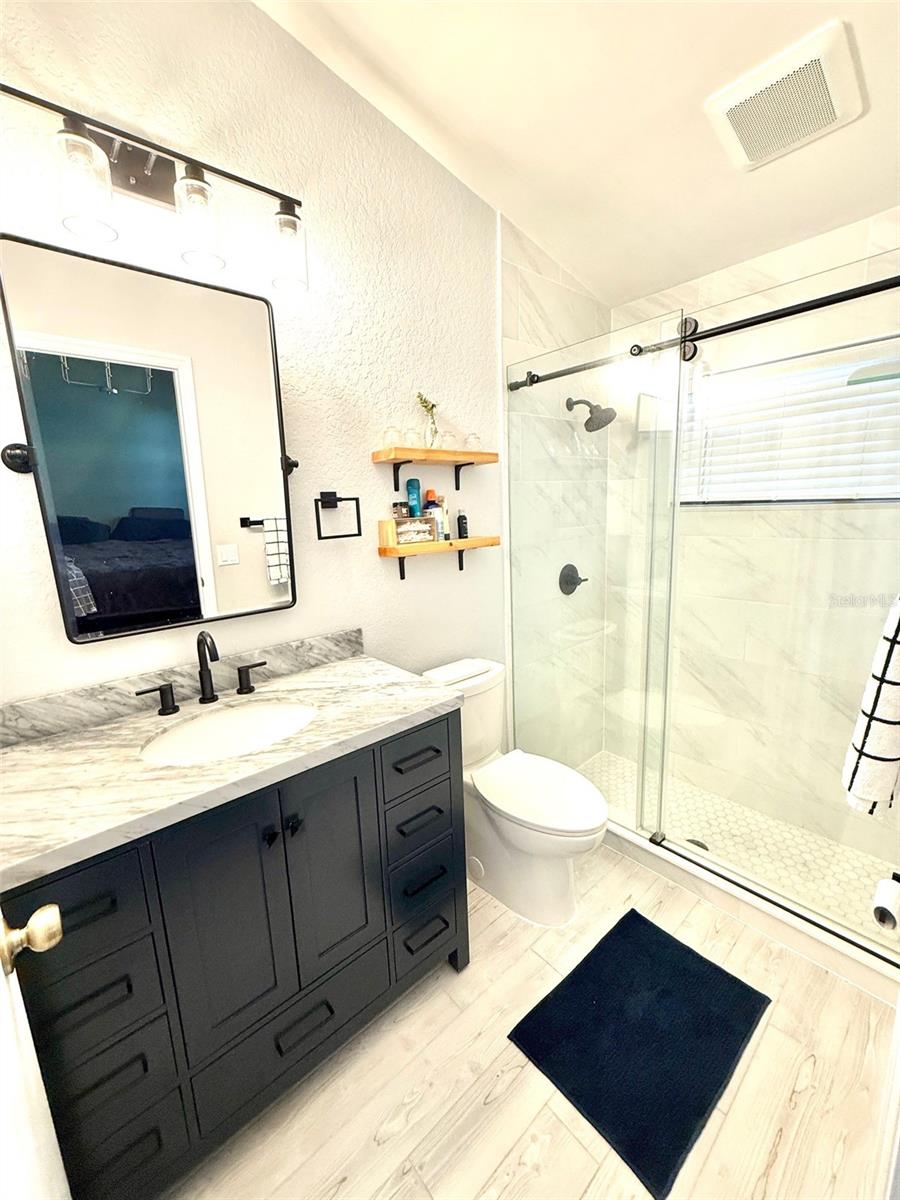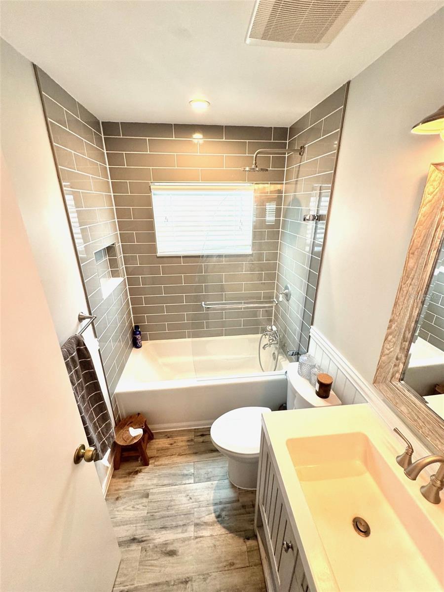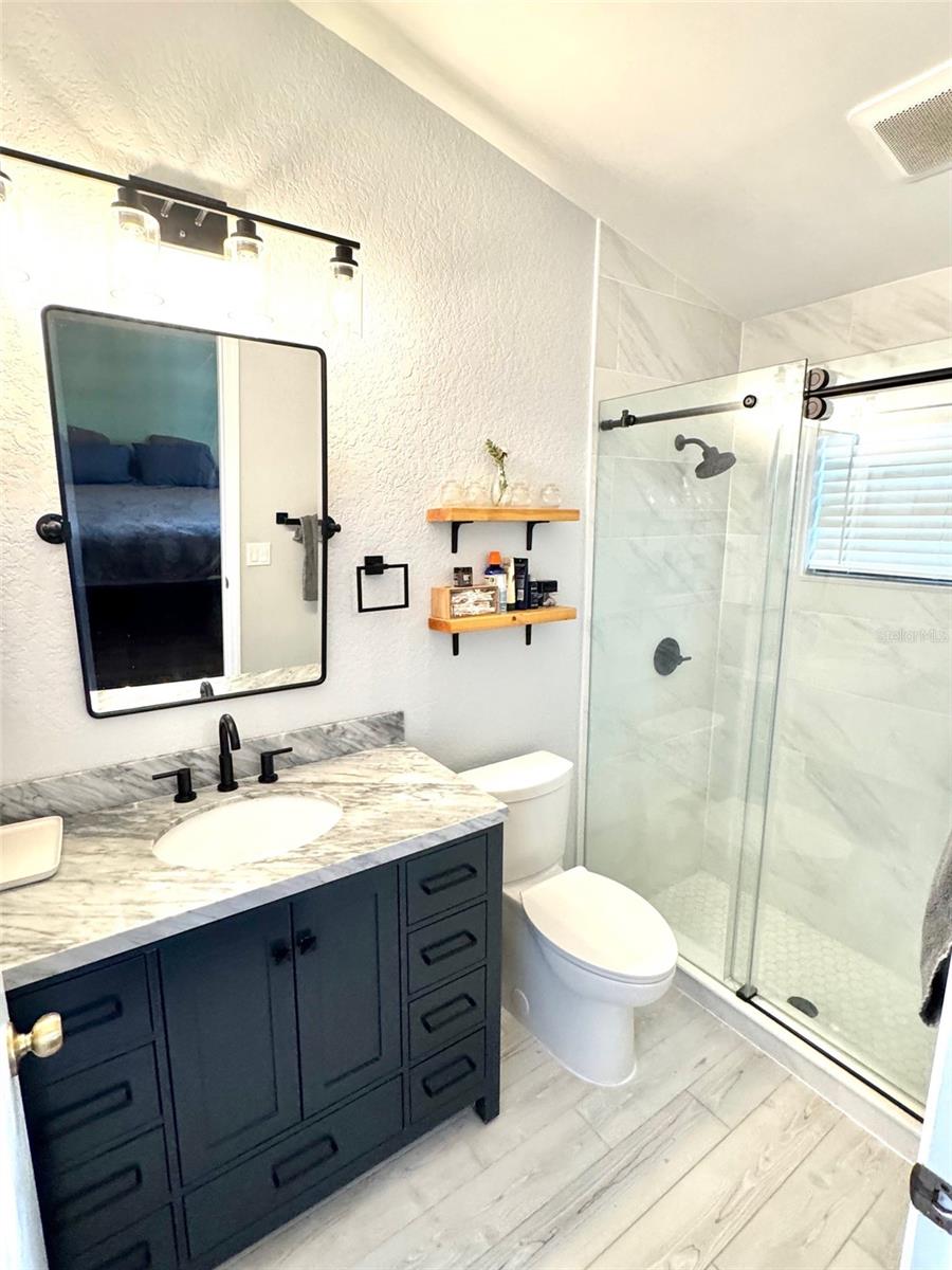 Pond front Paradise in Woodridge Estates! Welcome to this impeccably maintained 3-bedroom, 2-bath pond front home in the highly desirable, deed-restricted community of Woodridge Estates. From the moment you arrive, you'll appreciate the pride of ownership and thoughtful updates throughout. Enjoy panoramic water views from your screened lanai, spacious brick paver patio, or the fully vinyl-fenced backyard—perfect for relaxing, entertaining, or casting a line in the well-stocked pond filled with largemouth bass! Bonus: the flat-screen TV on the lanai conveys with the home for your outdoor enjoyment. Inside, the home boasts a split-bedroom floor plan, vaulted ceilings that enhance the open feel and a beautifully updated interior. Recent upgrades include stylish updated bathrooms, newer hand-scraped engineered wood flooring, stainless steel appliances, stainless steel farmhouse style kitchen sink, fresh exterior paint, and a NEW ROOF installed in 2025. The kitchen features a breakfast bar that opens to the dining area—great for casual meals or entertaining. Additional features include: Water softener system, Washer and dryer included, Generator transfer switch already installed and a 1-year home warranty included at closing for your ultimate peace of mind. All this, plus you're just a short drive to Sims Park and the charming shops, dining, and entertainment of downtown New Port Richey. Best of all—this home is NOT in a flood zone. Homes like this don’t come along often. Schedule your private showing today and start living the Florida lifestyle you’ve been dreaming of!