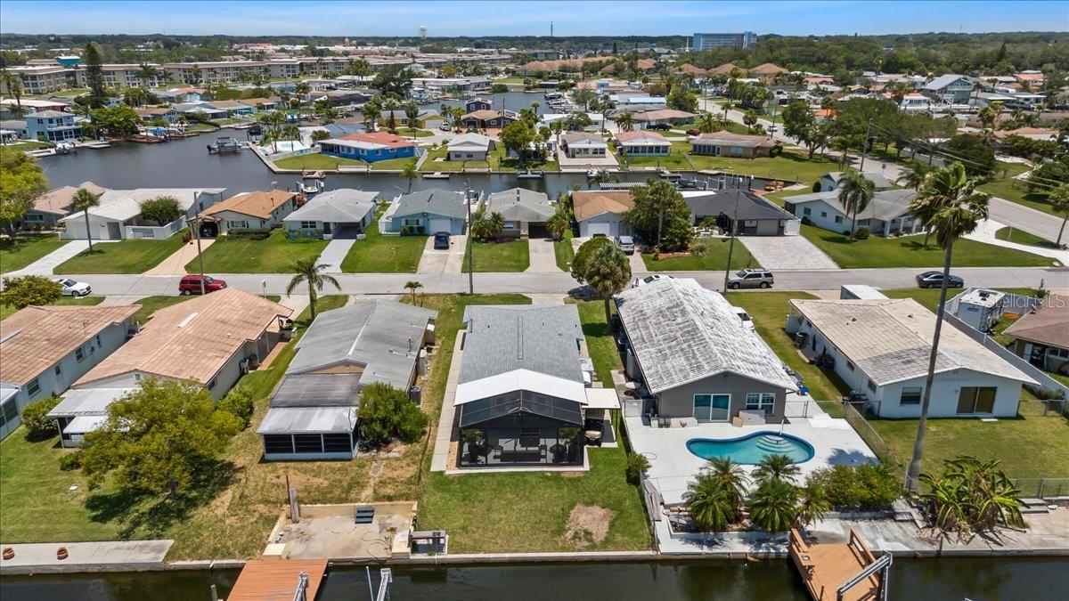 One or more photo(s) has been virtually staged. Perfectly positioned on a quiet cul-de-sac in Gulf Harbors, this updated 3-bedroom, 1.5-bath home is your gateway to Florida’s Gulf Coast lifestyle of boating, fishing, and waterfront relaxation. Offering 1,256 sq. ft. of light-filled living space, it blends modern comfort with coastal charm and direct access to the open Gulf. Curb appeal shines with a new roof, fresh exterior and interior paint (2025), and a spacious driveway. Inside, the open living and dining area features luxury vinyl plank flooring, energy-efficient double-paned windows, and French doors framing tranquil water views. The fully remodeled kitchen impresses with soft-close shaker cabinetry, quartz countertops, a subway tile backsplash, and new stainless steel appliances—perfect for everyday living or entertaining. A stylish half bath with quartz vanity and stackable washer/dryer adds convenience, while all three bedrooms offer generous closet space. Bedroom 1 opens directly to the backyard for a seamless indoor-outdoor flow. Step outside and immerse yourself in the true essence of Florida waterfront living. The expansive 20x24 screened lanai provides a shaded retreat where you can sip your morning coffee to the sound of gentle waves, gather with friends for evening cocktails, or unwind with a good book while the sea breeze drifts through. Beyond the lanai, 40 feet of sparkling water frontage awaits, offering the perfect backdrop for sunset views that paint the sky in vibrant shades of orange and pink. Launch your boat, paddleboard, or kayak directly from your backyard and explore endless adventures along the Gulf. Spend your afternoons fishing for snook or redfish, or set off on a short cruise to world-renowned destinations like Anclote Key, Honeymoon Island, Caladesi Island, and Ft. DeSoto. With dolphins often playing in the wake and seabirds gliding overhead, every day feels like a coastal getaway. Whether you’re entertaining friends waterside, enjoying a quiet sunrise paddle, or hosting weekend barbecues on the lanai, this home is designed for the kind of effortless indoor-outdoor lifestyle that makes Gulf Harbors so beloved. Residents can join the optional HOA for just $125/year, or elevate their coastal experience with a $200/year Gulf Harbors Yacht Club membership, which includes a private beach, picnic areas, grills, restrooms, showers, parking, two private boat ramps, and a lively clubhouse filled with social events. Close to SR-54, shopping, dining, and all that Tampa Bay has to offer, this home is the perfect blend of privacy, modern updates, and the charm of true waterfront living. For a virtual tour, click the provided link and discover the beauty of this exceptional home for yourself.