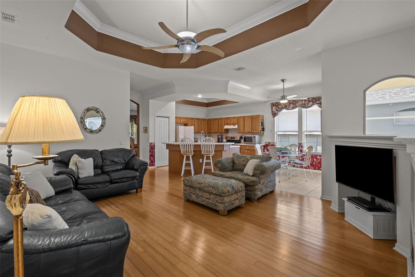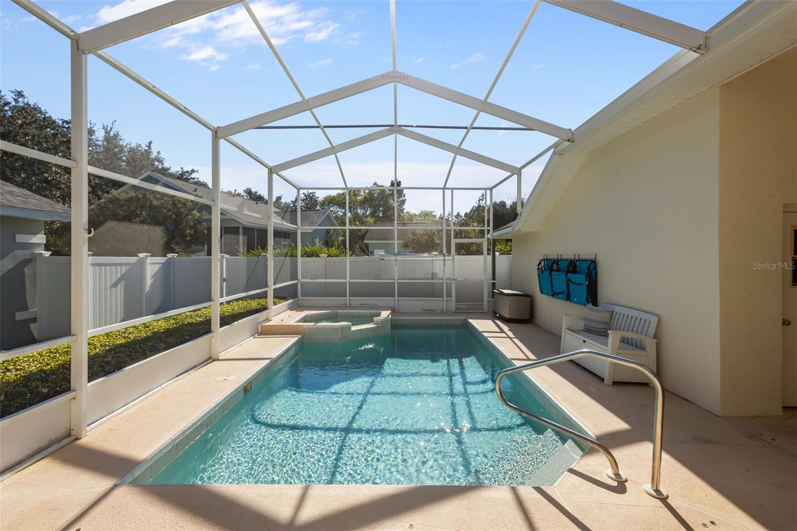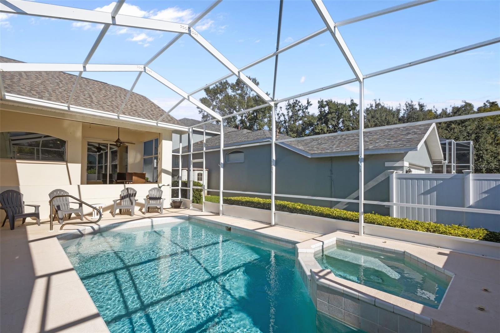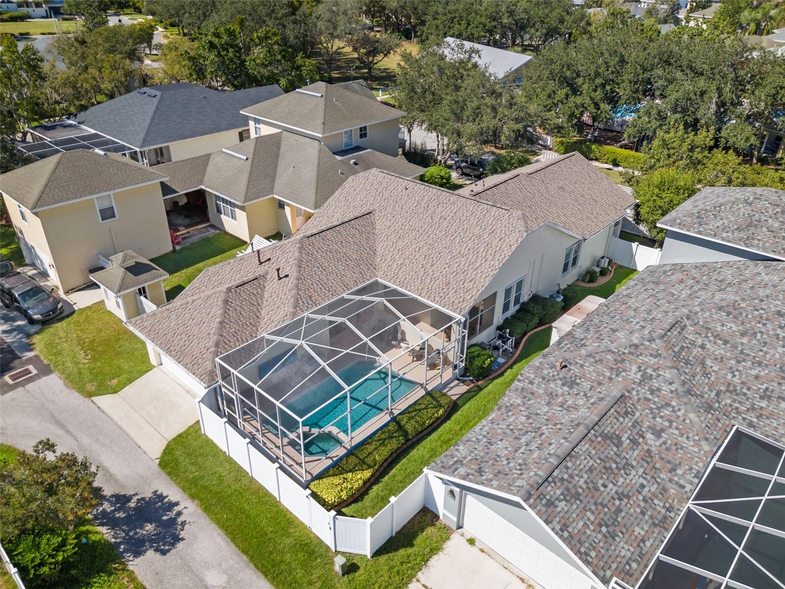 Welcome home to the beloved, tree-lined community of Longleaf with this 3-bedroom, 2-bath, pool home with a 2-car garage! A charming covered front porch sets the tone, while the covered rear patio and side yard hosts extra outdoor living space. Inside, a generous living/dining area flows effortlessly for entertaining. The kitchen opens to the lanai with sliding glass doors, perfect for easy indoor-outdoor meals and quick dips in your private screened pool. ROOF (2024) HVAC (2016) and tankless water heater. Live the lifestyle you’ve been looking for: the community’s oak-shaded streets lead to outstanding amenities just across the street- a clubhouse, community pool, and parks, plus tennis and basketball courts, soccer and baseball fields to keep everyone active. Love convenience? Leave the car at home and walk or ride your golf cart to nearby shops and restaurants. Whether you’re hosting by the pool, relaxing on the porch, or exploring the neighborhood amenities, this home checks all the boxes. Schedule your private tour today!