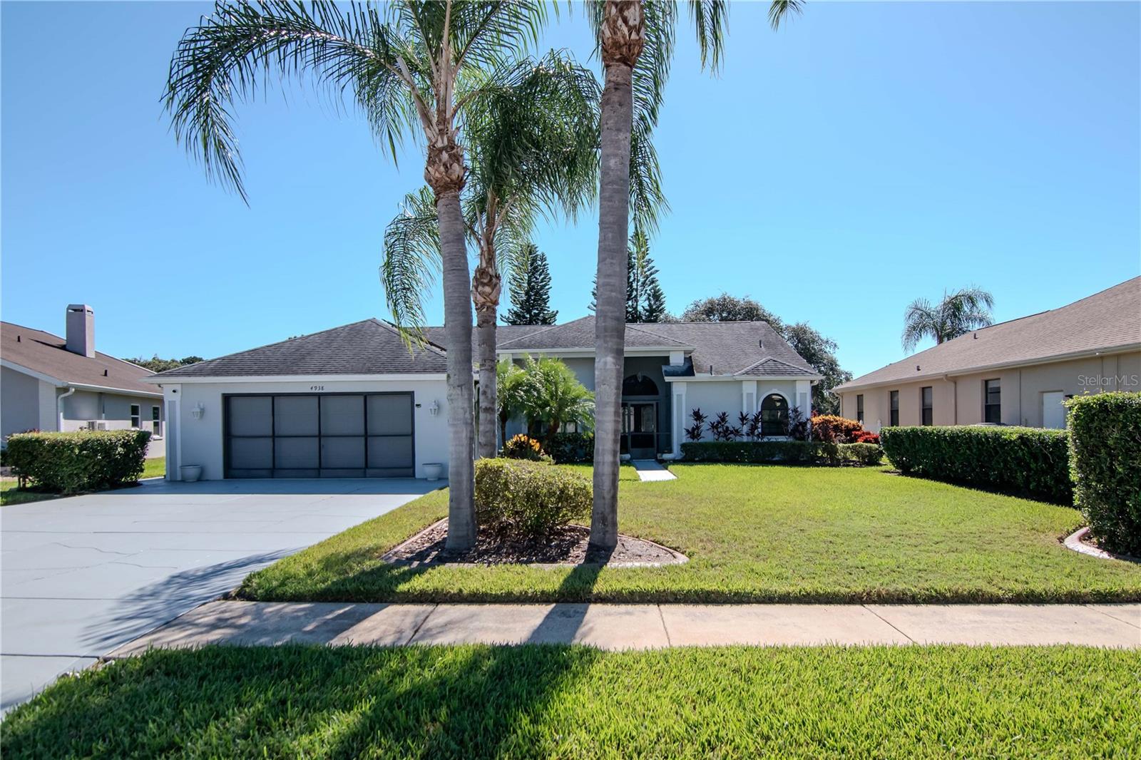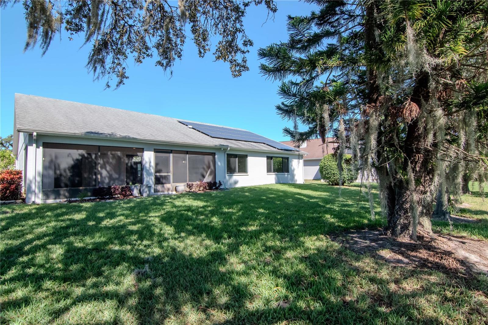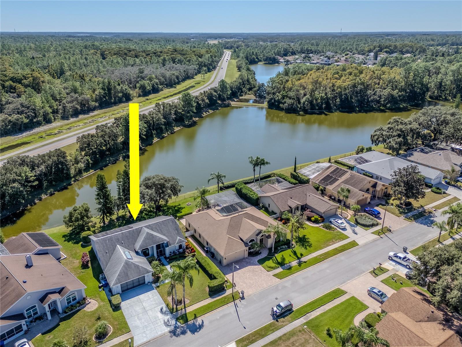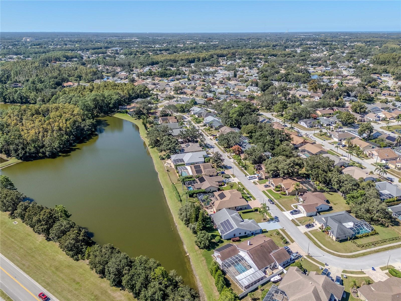 Welcome to 4938 Yellowstone Drive, a beautifully maintained 3-bedroom, 2-bath lakefront home in the heart of New Port Richey. This charming property offers a rare combination of comfort, character, and energy efficiency. Inside, you'll find warm wood floors, a cozy gas fireplace in the living room, and abundant natural light streaming through brand-new impact windows installed in 2023. The spacious kitchen features solid wood cabinetry, plenty of counter space, a large pantry, and a convenient breakfast bar that opens to the dining area—ideal for everyday meals and entertaining alike. The split-bedroom floor plan offers privacy, with a generous primary suite that includes two walk-in closets, as well as an ensuite bathroom with both a soaking tub and a separate shower. Two additional bedrooms provide flexibility for guests, family, or a home office. Enjoy year-round comfort with a brand-new A/C system (2025), a newer roof (2018), and a fully paid-off solar panel system (2018) that keeps electric bills at an average of just $40 a month. Additional features include an in-home central vacuum system and an oversized two-car garage with ample storage. Step outside to your screened-in patio overlooking a peaceful lake—perfect for relaxing mornings or quiet evenings. The beautifully landscaped yard adds to the home’s inviting curb appeal. Ideally located, this home is just minutes from local restaurants, shopping, Starkey Park, golf courses, and more. With thoughtful updates, energy efficiency, and a serene lakefront setting, 4938 Yellowstone Drive is the perfect place to call home.