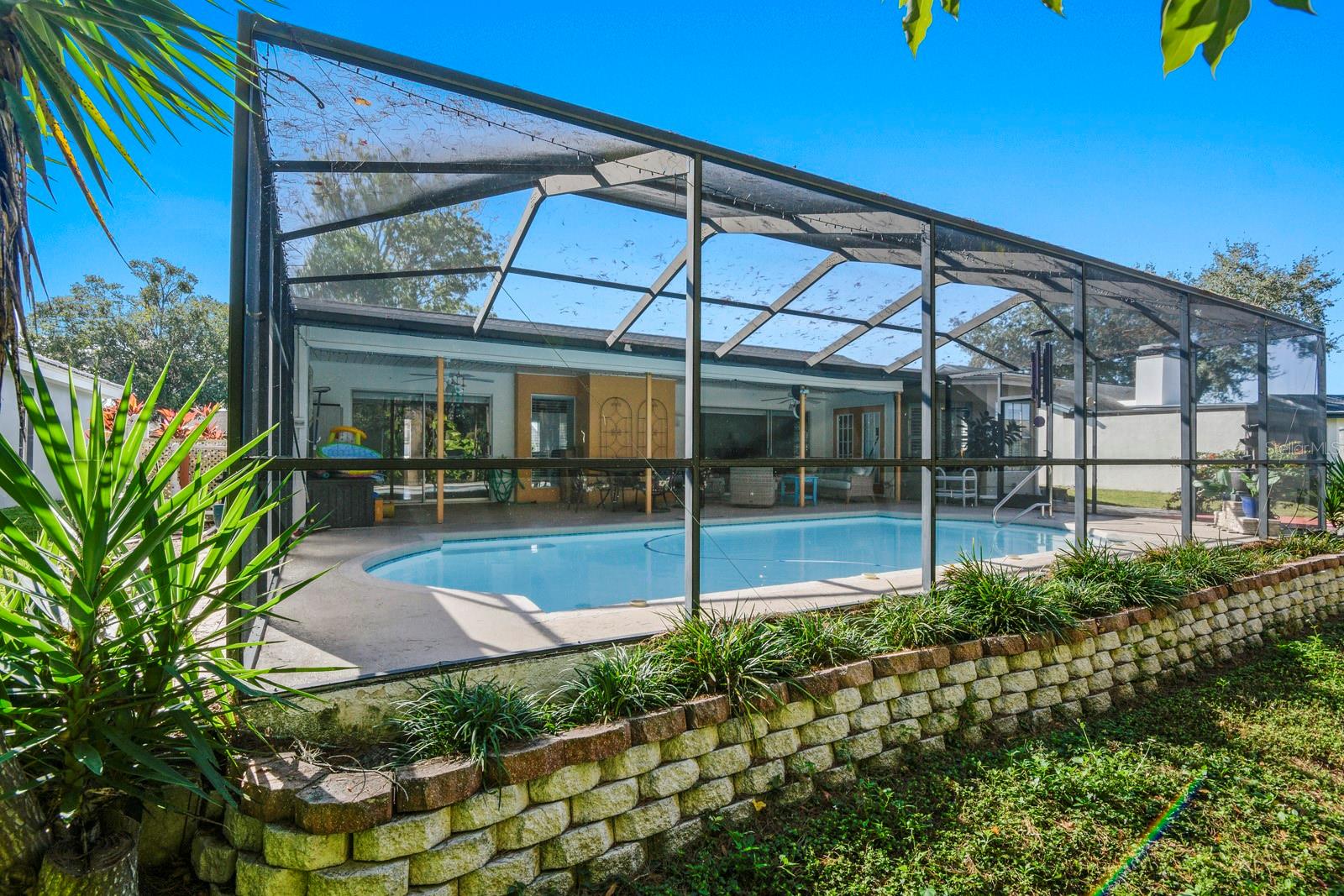 This truly stunning, one-of-a-kind, move-in-ready home offers exceptional features inside and out. Enjoy Florida living at its finest with a saltwater, heated pool that was resurfaced seven years ago, all under a fully screened lanaioverlooking a serene conservation and pond view. A brand-new roof, seawall, gutters, and a unique custom deck add both value and character, while three doors to the pool area with a triple slider create effortless indoor-outdoor living. Inside, the home is filled with high ceilings, abundant natural light, plantation shutters, and electric shadesthroughout. The upgraded kitchen and bathrooms feature a custom backsplash in both the kitchen and bar area, complemented by high baseboards, an electric fireplace, and custom garage shelving. Barn doors add style and flexibility for the office or third bedroom. Major systems have been thoughtfully updated, including new exterior paint, an AC only 4 years old, and a water heater only 6 years old. The kitchen includes a gas stove, brand-new refrigerator and dishwasher, and there is no carpet except in the guest bedroom. The home also boasts fabulous curb appeal. Located in a community with low HOA and no CDD, residents enjoy access to a clubhouse with a pool. Conveniently situated just 10 minutes from a hospital with a brand-new cancer center and 20 minutes from a newly built VA clinic, this home is also close to shopping, restaurants, and endless activities, offering both comfort and convenience. Schedule your private showing before it’s too late—this exceptional home truly checks every box and is a rare find!