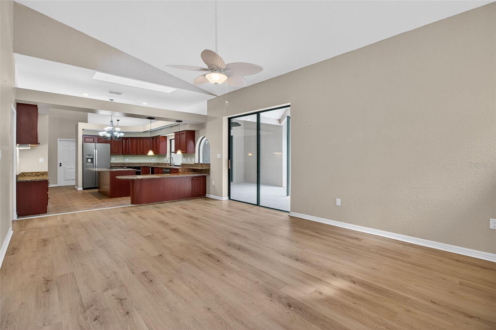 One or more photo(s) has been virtually staged. PRICED BELOW APPRAISED VALUE! Welcome to 5237 Las Flores Via, a private pool home with no front or rear neighbors, surrounded by nature preserves and no flood zone! A front pond with waterfall leads you into a bright, open interior with high ceilings, skylights and ceramic tile flooring. The kitchen features quartz counters, a convection oven with stovetop grill, abundant cabinetry, built-in desk and trash compactor. The primary suite offers dual walk-in closets, pool access, jetted tub, shower and double vanities. The opposite wing includes two large bedrooms and a full bath with double sinks. Enjoy Florida living with a screened pool and spa (new cage ~6 months old), outdoor kitchen, outdoor half bath, outdoor shower, covered lanai and fenced yard for your pups, with your very own grapefruit, lemon and orange trees! Additional features: new gas fireplace, gas water heater, electric A/C, chlorine pool, 2-car garage. Roof 2015 · HVAC 2020 · Water Heater 2013. Convenient to schools, Hwy 54, Downtown New Port Richey, Trinity and Suncoast Pkwy. Schedule your tour today!