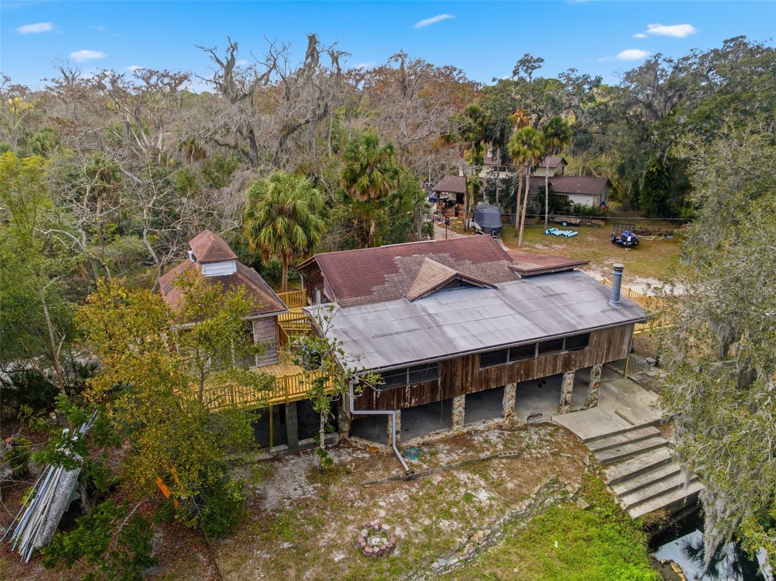 INVESTORS! CHECK THIS OUT!! This home on concrete pillars, on the Anclote River, is just waiting for a glow-up! The river itself winds all the way out to the Gulf. Talk about location, location, location! The patio area on the first floor has a full bathroom and storage room as well as a Cabana-style bar… you can waste away in your very own Margaritaville. The lot is on .32 acres and includes a septic tank and well. Two bedrooms and two full baths plus a separate studio with a loft sleeping area and private bathroom. Conveniently located near shopping and commerce. Only 15 minutes to the Gulf. NO HOA’s! NO CDD’s!