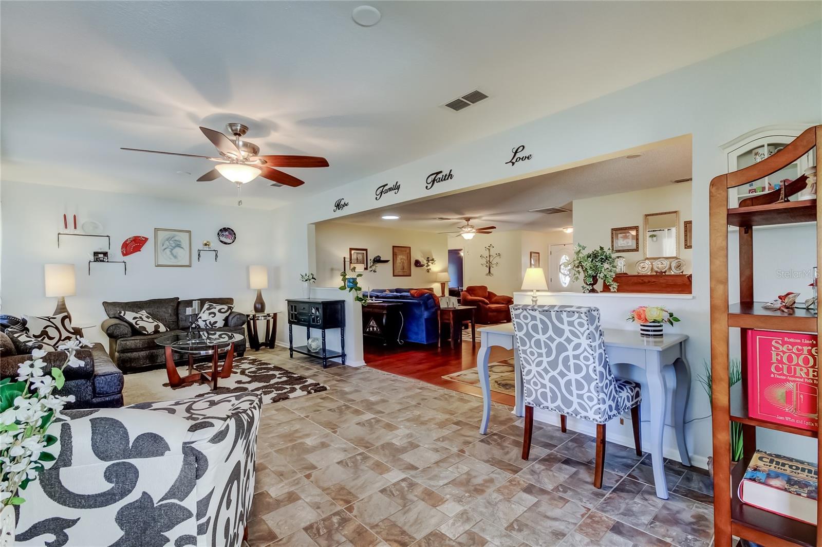 This GORGEOUS MOVE IN READY HOME in Heritage Lakes has it all! This gem boasts NEW LAMINATE FLOORS, NEWER WINDOWS, NEWER ROOF, ONLY 4 YEARS OLD WITH A TRANSFERRABLE WARRANTY, AND A FABULOUSLY REMODELED KITCHEN! The kitchen has a large eat in area with plenty of windows to provide natural light. Gorgeous WOOD CABINETS AND IF YOU LIKE TO COOK, THERE IS ENDLESS GRANITE COUNTERTOPS. The refrigerator is almost brand new, just purchased in May 2025. There is also a HUGE FLORIDA ROOM that is light and bright overlooking a peaceful green area. If you like the outdoors, then relax in the 12x24 SCREENED LANAI where you can show off your green thumb or have your morning coffee. A WELL TO WATER THE LAWN has recently been installed and will save on your water bill! STATE OF THE ART WATER SOFTENER HAS A TRANSFERRABLE WARRANTY. Heritage Lakes has a sparkling heated pool and spa and overlooks the lake. It is the perfect place to enjoy some outdoor time after a game of TENNIS, PICKLE BALL, SHUFFLEBOARD, OR BOCCE BALL. The clubhouse offers numerous activities and parties. Low HOA and this home in NOT in a flood zone. Heritage Lakes is located near shopping, restaurants, medical facilities, fabulous beaches and Tampa International Airport.
