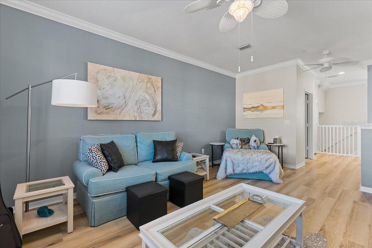 Welcome to this beautifully updated 2-bedroom, 2.5-bath townhouse located in the gated Sea Forest Beach Club community. This move-in-ready home offers access to the exclusive Gulf Harbors Private Beach Club, outfit with a private beach, pavilions, and grills. With an acceptable offer, the home can be sold FURNISHED—making it an exceptional coastal opportunity. Sea Forest Beach Club is pet-friendly and features amenities including two community pools, a fitness center, and a large gated dog park, offering a relaxed yet active Florida lifestyle. The home features luxury vinyl flooring throughout and fresh interior paint, both upgraded in 2023, creating a clean and modern feel from top to bottom. The thoughtfully designed layout provides abundant storage, including multiple storage closets and a large additional storage area on the lower level near the garage—a rare and valuable feature that could also be converted to accommodate an elevator if desired. Upon entry, you’ll find approximately 700 square feet of versatile space, including storage, patio, and seating areas, along with a private fenced outdoor area. Upstairs, the main living level offers a seamless flow between the kitchen and living spaces, ideal for everyday living and entertaining. This level also includes a convenient half bathroom, kitchenette, and dedicated dining area. The upper level features two spacious bedrooms, each with its own en-suite bathroom, providing privacy and comfort. Major system updates include a newer A/C unit (2024) and a water softener system (12/2025), ensuring year-round efficiency and peace of mind. Located within a 5 minute drive to all that Downtown New Port Richey has to offer and only ~45 minutes to Tampa, or ~1 hr to St Petersburg. Dont miss out on this awesome opportunity for your own slice of paradise! schedule your tour today!