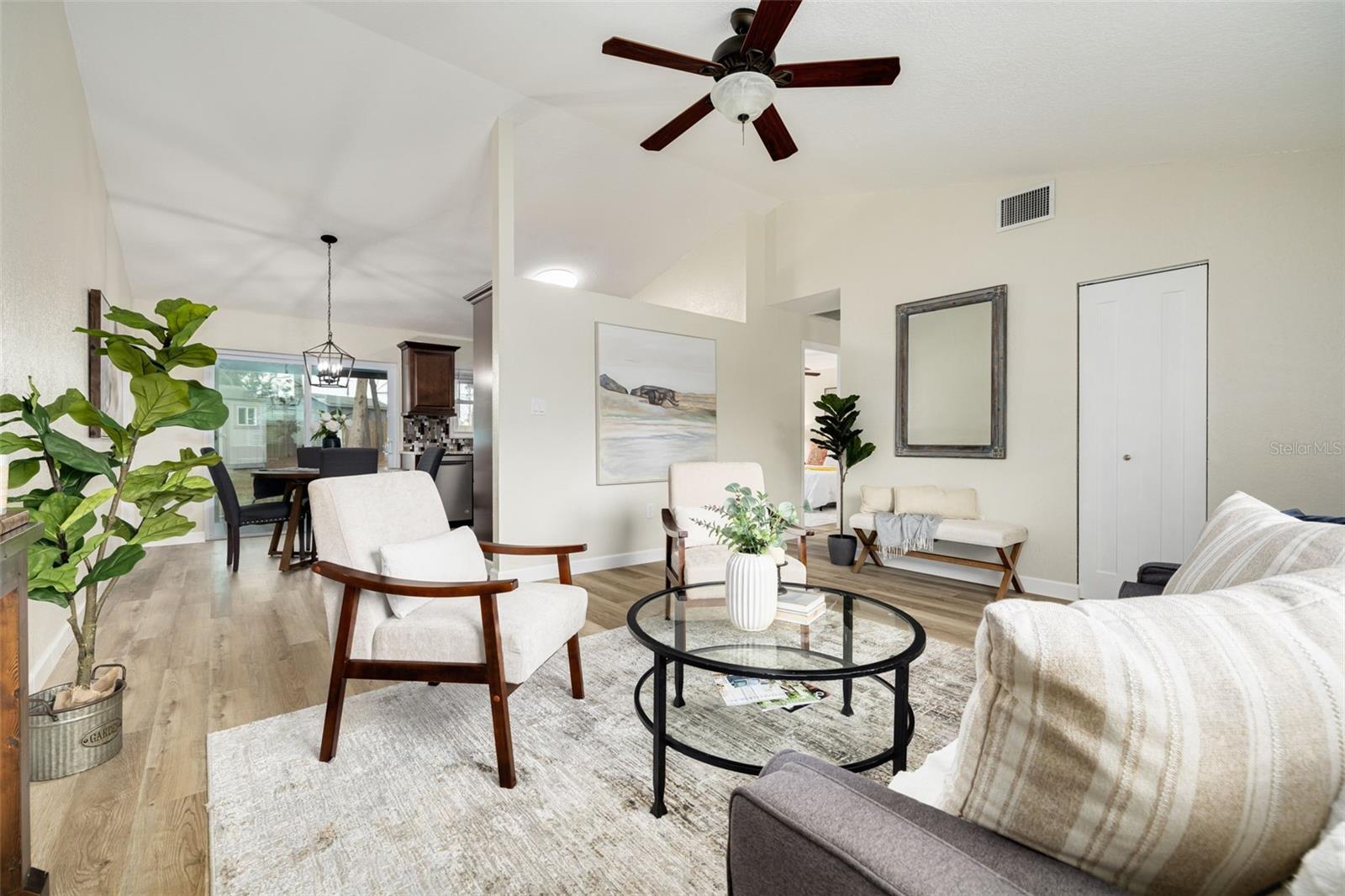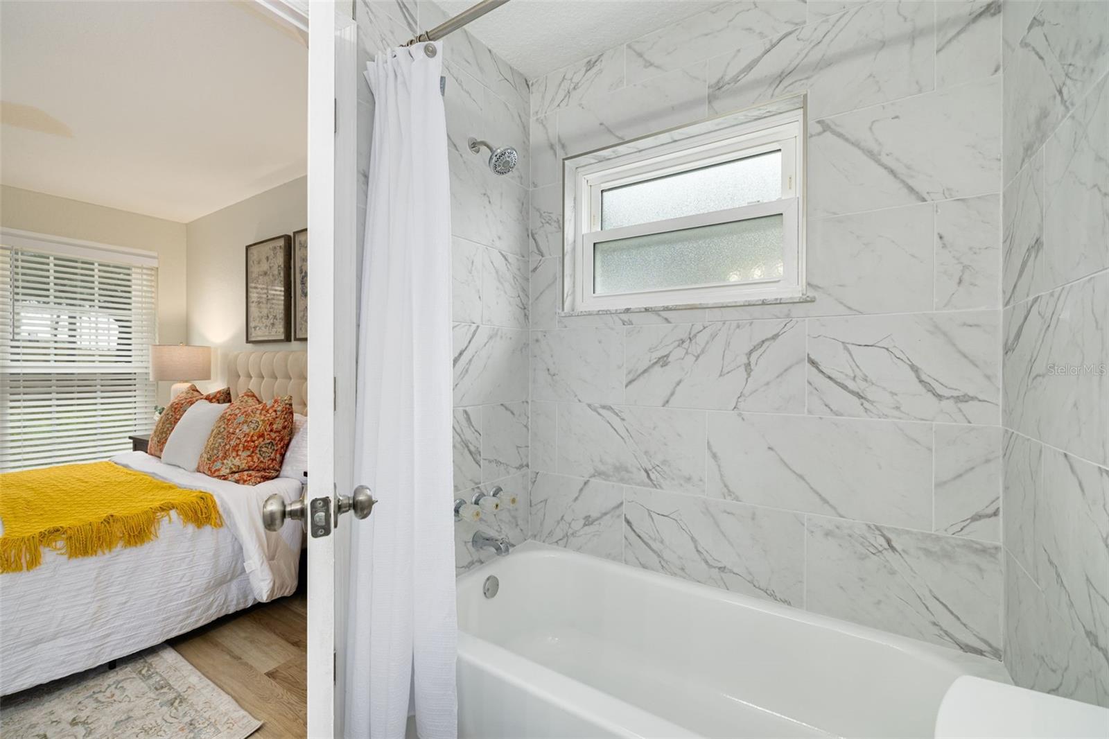 This renovated 2-bedroom, 2-bathroom single family home with a garage is located in the heart of New Port Richey. It features solar panels on the roof to help lower your monthly expenses. It is move-in ready with new luxury vinyl plank floors, new interior doors and fresh paint. The kitchen features granite countertops and sleek appliances. You will enjoy the open floor plan and large screened patio. Both bedrooms are spacious, and the primary bedroom has an ensuite bathroom. Both bathrooms have a shower/tub combination as well as new vanities and new toilets. The one-car garage includes washer and dryer hookups. The home has an extra-wide driveway. The spacious backyard is completely fenced and includes a shed for extra storage. There is no HOA. It is in the ideal location to enjoy Florida. It is 5 miles from restaurants and shops in downtown New Port Richey. It is 6 miles from Jay B. Starkey Wilderness Park. It is just over 7 miles to the Tarpon Springs Sponge Docks and ten miles to Sunset Beach.