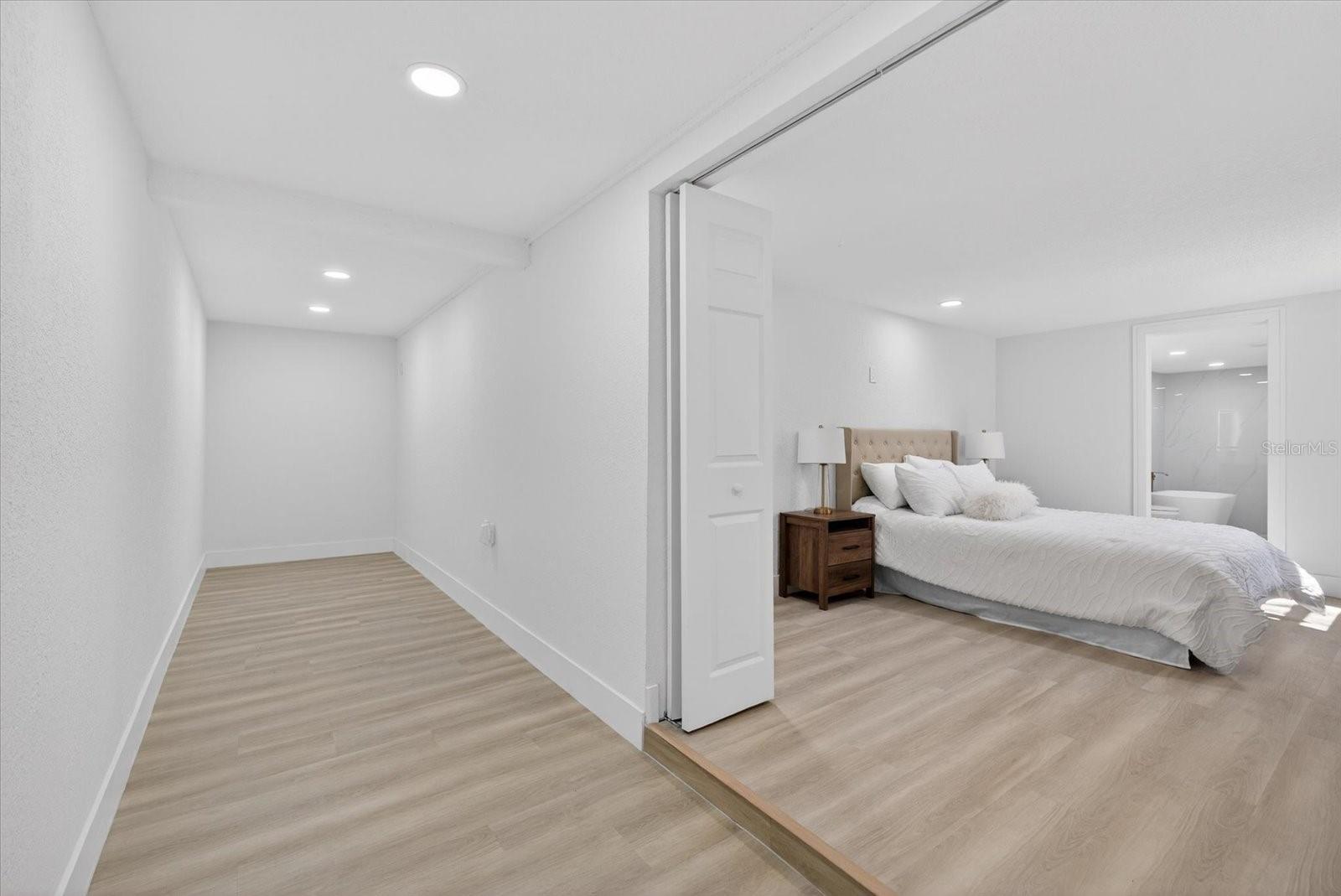 RARE ALMOST 1-ACRE LAKEFRONT HOUSE WITH BOAT ACCESS. Enjoy true Florida lake living on this fully REMODELED 3-bedroom, 2-bath home situated on a private .9 acre lot with direct water frontage. Fish, kayak, or operate small motor boats right from your backyard, with public boat ramp access nearby for added convenience. This renovated construction offers added peace of mind; custom cabinets with brush gold handles, custom quartz countertops, luxury LVP, custom tile in bathrooms, frameless glass showers, garden tub, wine cellar with custom glass door, lighted stairway, LARGE walk in closet, new stucco siding, new decking patio, new 40ft dock to the lake, and many more upgrades! while the expansive deck provides the perfect setting for sunset views and outdoor entertaining. Inside, the home has been thoughtfully updated with modern finishes throughout. The open living area flows seamlessly into the updated kitchen, creating a bright and inviting space. The spacious primary suite features a beautifully remodeled luxury bathroom, large walk in closet space, and also office space right outside the primary bedroom. The suite and office space has direct access from the first floor. The kitchen and living room along with the additional bedrooms and second bathroom are located on the top floor. Surrounded by beautiful trees and set back for privacy, this property offers a rare combination of usable acreage, waterfront lifestyle, and move-in-ready condition — all with no HOA. The lake is 22 acres large, and you have direct access from the backyard, fish right from your own private dock, or take out the boat and kayak for some fun. If you’ve been searching for peaceful lakefront living with room to breathe, this is your opportunity. (3D Tour Available) (FYI, NO OTHER 1 ACRE LAKE HOUSES AVAILABLE UNDER 1 MILLION DOLLARS. THIS IS RARE OPPURTUNITY.)