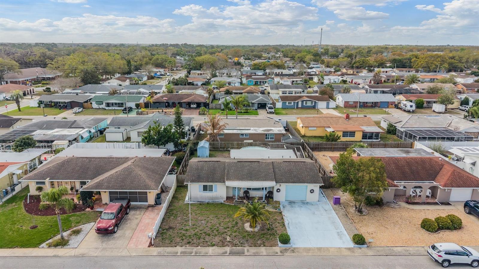 Welcome to this charming 2-bedroom, 2-bathroom home with a 1-car garage located in the heart of New Port Richey. Offering approximately 1,272 square feet of living space, this home features a comfortable layout with multiple living areas, including a spacious family room and an additional bonus living space that provides flexibility for entertaining, a home office, or hobby area. The kitchen includes ample cabinet storage and NEW stainless steel appliances and flows conveniently into the dining area for easy everyday living. Both bedrooms are generously sized, and the home features two bathrooms for added convenience. Step outside to enjoy the fully fenced backyard, perfect for pets, gatherings, or relaxing outdoors. The backyard also features an above-ground POOL (with a brand new liner), a large wood deck, and an outdoor shower creating a great space for enjoying Florida’s sunshine and hosting family and friends. The electric panel is NEW. Reroof was done in 2024. NEW washer and dryer! Conveniently located near shopping, dining, parks, schools, and the beautiful Gulf Coast beaches, this home offers both comfort and accessibility. Whether you’re a first-time homebuyer, downsizing, or looking for an investment opportunity, this property is full of potential and ready for its next owner.