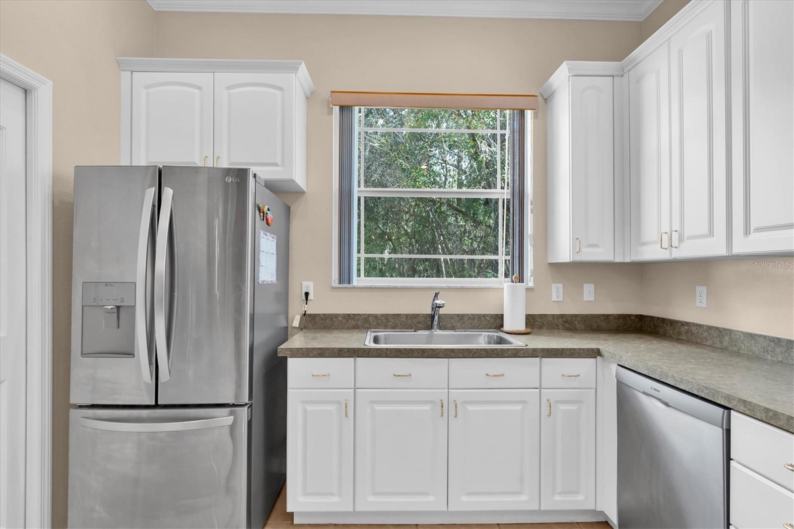 Welcome to this beautifully maintained 2-bedroom, 2-bath, 2-car garage end-unit villa located in the gated community of Briarpatch in New Port Richey. This desirable end unit offers added privacy with no neighbor directly to the entryway, as this villa is positioned near a conservation lot, creating a more private and spacious feel. Step inside and you’ll immediately appreciate the impressive 10-foot ceilings, rich hardwood flooring, and elegant crown molding that add warmth and character throughout the home. The open layout is both functional and inviting, perfect for everyday living and entertaining. The kitchen features newer appliances and ample cabinetry, while the generous closet space throughout the villa provides exceptional storage options rarely found at this price point. The spacious primary suite offers comfort and privacy, complemented by a well-appointed guest bedroom and second full bath. The two-car garage adds additional storage flexibility and convenience. With a low monthly HOA fee of just $255, exterior maintenance is covered, including roof and exterior paint—providing peace of mind and easy living. Conveniently located near shopping, dining, medical facilities, and major roadways, this move-in ready villa offers the perfect blend of privacy, comfort, and low-maintenance Florida living. Schedule your private showing today and discover all that Briarpatch has to offer!