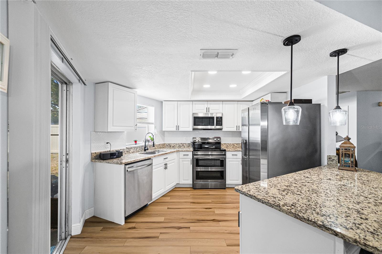 Welcome to this beautifully maintained, completely upgraded home in Park Lake Estates! As you enter the home, you can see the updated floors and baseboards with luxury vinyl plank throughout, natural lighting, upgraded light fixtures/fan and much, much more! The kitchen/dining room combo boasts elegance, as the kitchen has been completely remodeled with newer appliances, cabinets, granite counter tops, and a double oven! The 2 bedroom, 2 bathroom home is a split floor plan with the master including an en-suite bathroom. Both bathrooms have been completely remodeled as well! There is a spacious screened in porch that leads to an oversized back yard that is fenced in for your privacy and pets needs! This home has no HOA, and is NOT in a flood zone, making the opportunities endless for you while also being very affordable! It is also right outside the Trinity area, near restaurants, shopping options, Trinity hospital and an easy route to the Tampa International Airport. Schedule your showing today!!