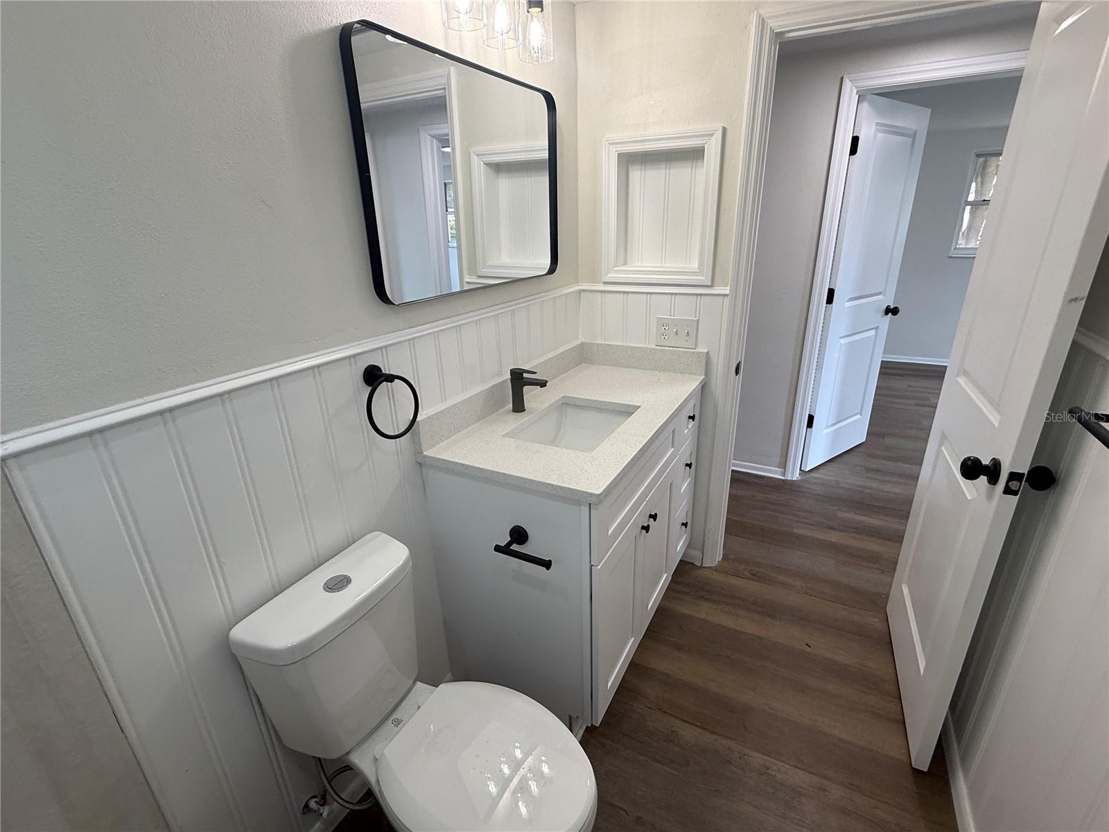 Welcome to this fully renovated, move-in ready 3-bedroom, 2-bath home with a versatile den in the heart of New Port Richey! Thoughtfully updated from top to bottom, this light and airy home blends modern finishes with comfortable everyday living. Step inside to find new luxury vinyl plank flooring throughout, fresh interior paint, updated lighting, and stylish accent walls that create a warm, contemporary feel. The open living and dining areas flow seamlessly into the beautifully upgraded kitchen, featuring quartz countertops, a stunning sage vertical tile backsplash, stainless steel appliances, a breakfast bar, and a built-in wine cooler—perfect for entertaining. Both bathrooms have been tastefully remodeled with new vanities, countertops, and modern plumbing fixtures, offering a clean and cohesive design. Major updates provide peace of mind, including a NEW ROOF (March 2026) and NEW AC (February 2026), with water heater replaced in 2015. Enjoy Florida living year-round on the 10x12 screened porch, overlooking the backyard—ideal for relaxing mornings or evening gatherings. The oversized one-car garage includes a convenient laundry area and additional storage space. With its modern upgrades, flexible layout, and prime location close to shopping, dining, and Gulf Coast beaches, this home is a standout opportunity you won’t want to miss.
