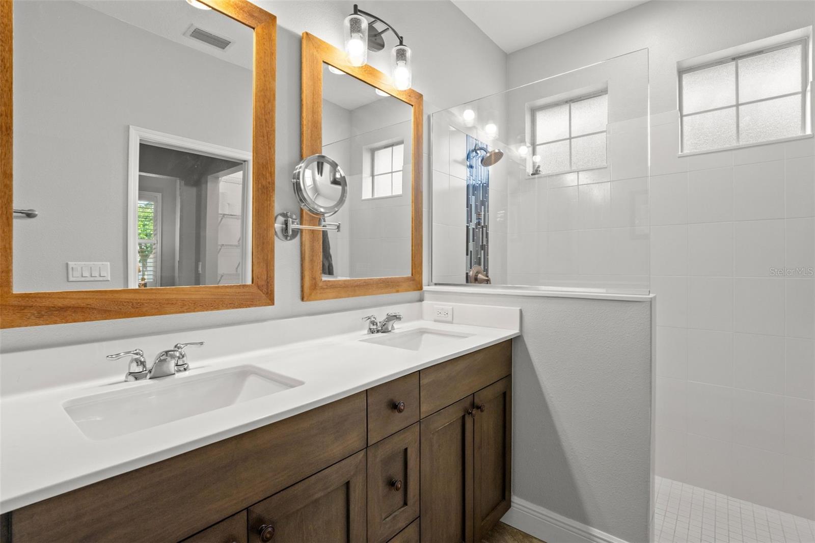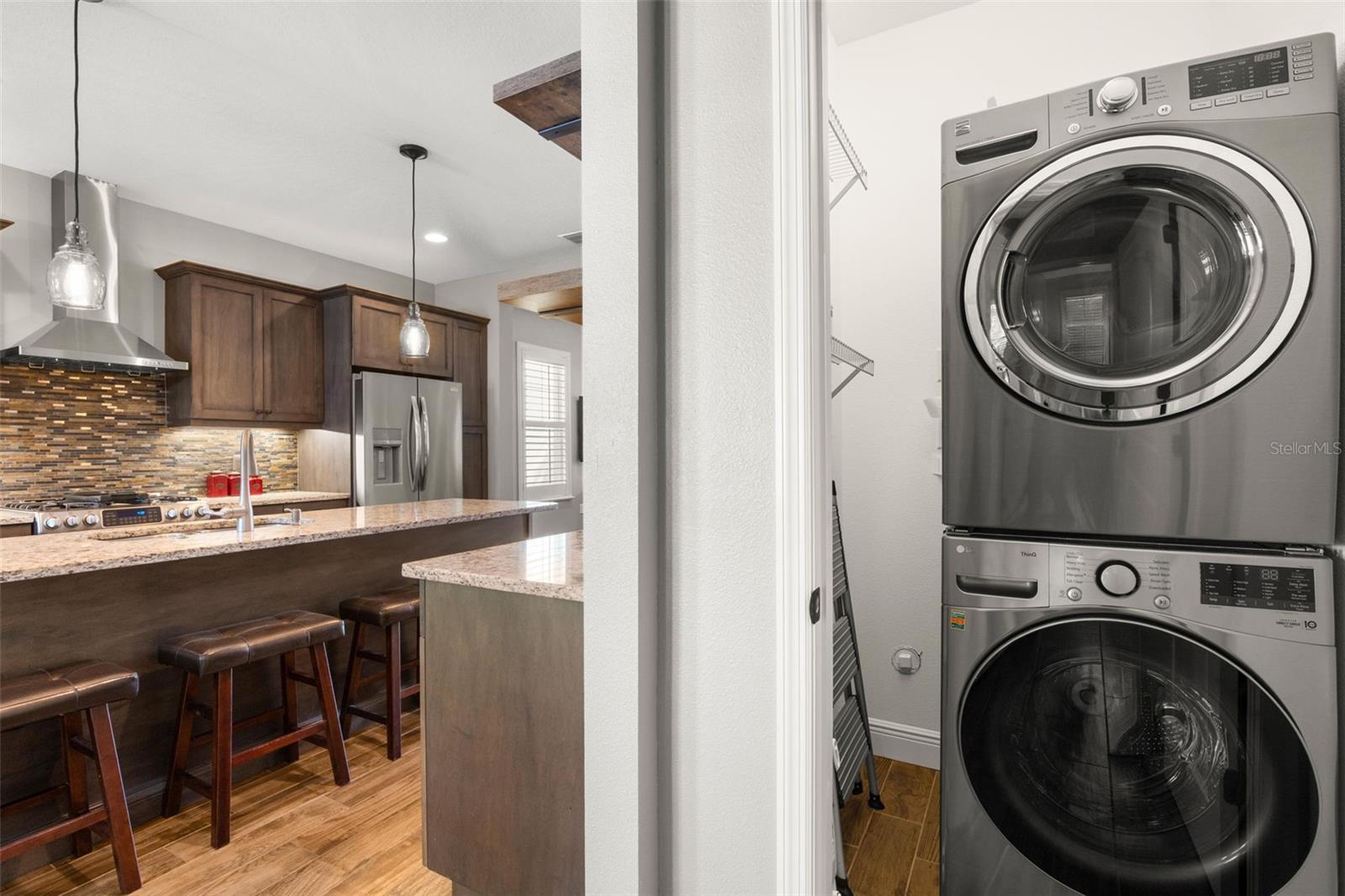 Welcome to this exceptional 2016 custom-built home located in the highly sought-after Longleaf community in thriving Pasco County. Offering 2,174 sq ft of thoughtfully designed living space, this residence perfectly blends comfort, style, and versatility. This home features 3 spacious bedrooms and 3 full bathrooms, along with a fully equipped private in-law suite—complete with its own entrance, full bathroom with shower, and dedicated washer/dryer hookups. Ideal for multigenerational living, guests, or rental income potential. Step inside through the custom front door into a beautifully upgraded interior designed for both everyday living and entertaining. The chef-inspired kitchen boasts premium finishes, generous storage with walk-in pantries, and a built-in wine fridge. Additional high-end features include security camera system for added peace of mind, energy-efficient tankless water heater, gas furnace for year-round comfort, central vacuum system for convenience, elegant plantation shutters throughout. The covered lanai will become your private retreat, perfect for relaxing or entertaining year-round. Featuring a natural gas fireplace and pre-plumbed natural gas grill hookup, this outdoor space offers both comfort and convenience, creating a true extension of the home’s living area. Located directly across from Starkey Market, you’ll enjoy walkable access to fresh local produce, coffee, live music, community events, tree-lined streets and welcoming atmosphere, proximity to parks and trails, access to top-rated schools, convenient shopping and dining nearby. Don’t miss this rare opportunity to own a unique, flexible home in one of Pasco County’s most vibrant communities. Schedule your private showing today! Select furniture pieces are included in the sale, offering a move-in-ready advantage. A detailed list of included items will be provided prior to closing.