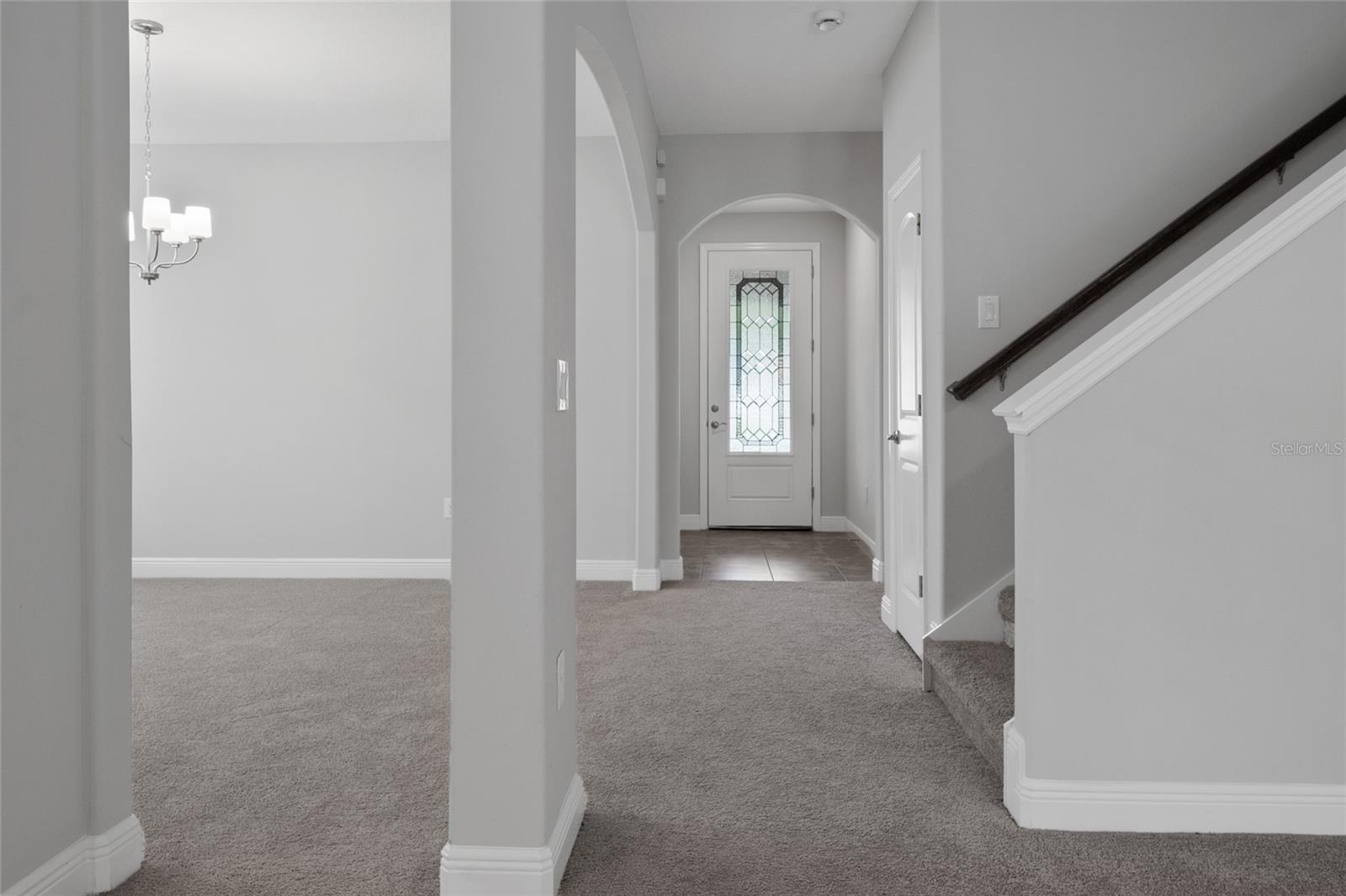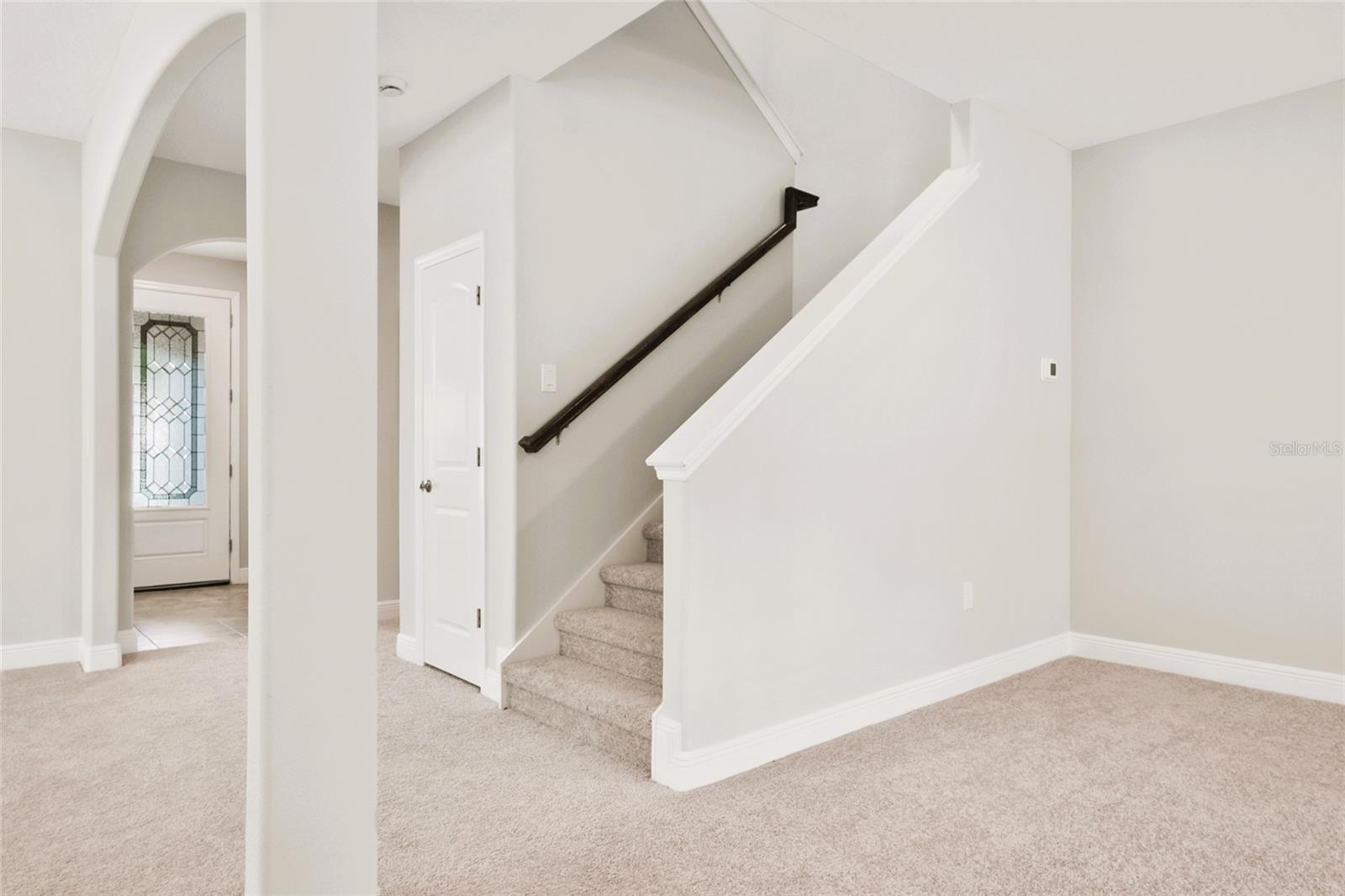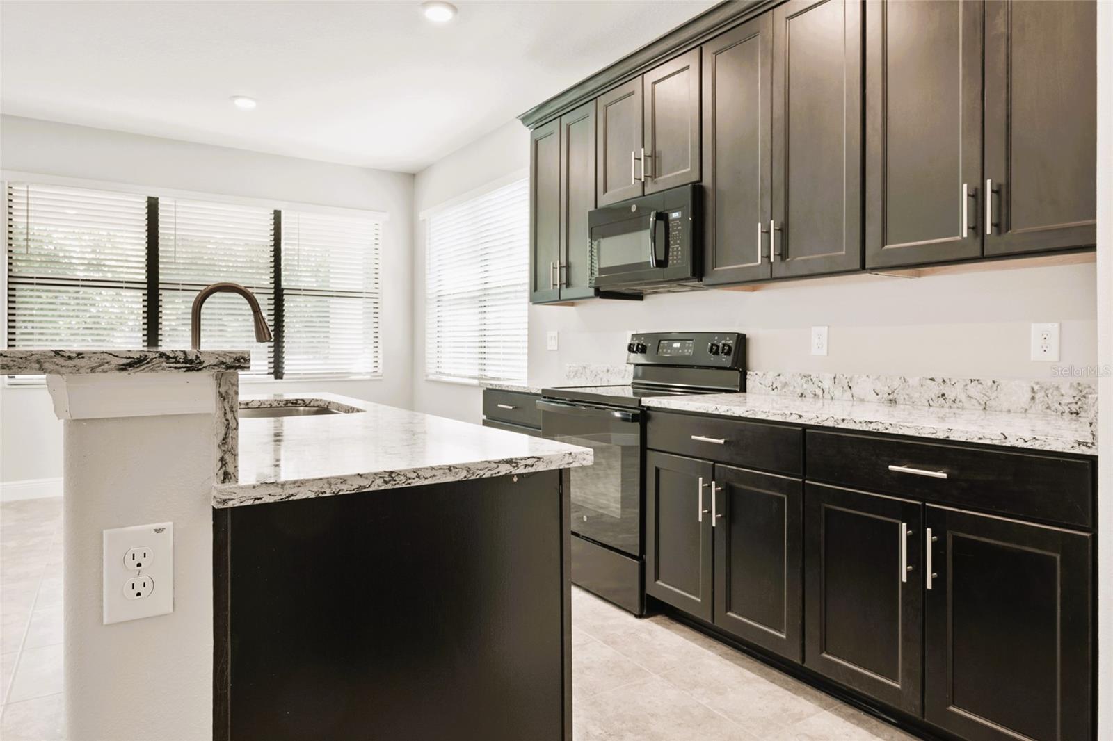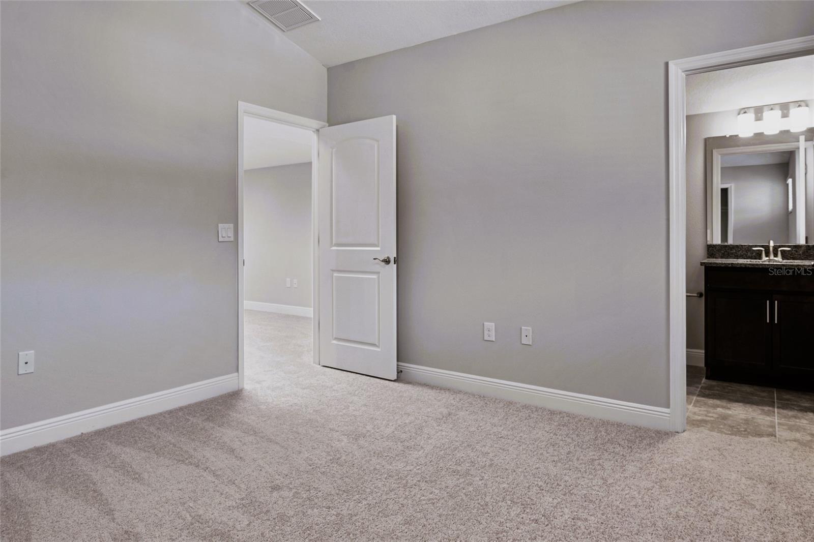 Brand new, never been lived in, spacious two-story, 4-bedroom, 3.5-bath home in the gated community of Rose Haven with upgrades that are priced below builder spec homes! Features a first-floor master suite with rear lanai access, a gourmet kitchen with 42-inch cabinets along with quartz countertops, plus a formal dining room and dedicated home office with French doors. The master bath has wood plank tile, separate shower with soaking tub, and quartz countertop that literally looks like it has specs of diamonds in it. Upstairs, you will find two additional bedrooms that share a hall bath, as well as a third bedroom with its own ensuite bathroom. Partially fenced back yard will accommodate a pool if desired. Additional upgrades include two Trane a/c units dedicated separately for both the upstairs and downstairs, foam-insulated exterior walls, and pre-wired security. In addition to the 2-car garage, the oversized driveway accommodates 4-6 extra vehicles. Low HOA of $114 per month covers trash, basic cable, pool, and gated entrance. Conveniently located just10 minutes to the Suncoast Parkway/Veterans Express, and 20 minutes to the beach.
