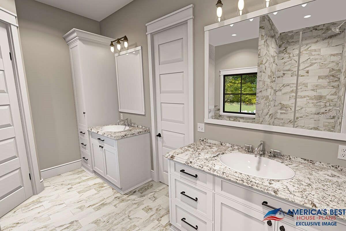 Pre-Construction. To be built. Modern Farmhouse plan is just for you. This stunning home welcomes you with a spacious and covered wrap-around porch granting a centrally located front entry. The porch is large enough for rocking chairs or a porch swing. The exterior also showcases traditional board and batten siding and large windows flooding tons of natural light throughout the home. As you journey to the rear of the home, notice the side entry garage that fits three vehicles and offers two pedestrian doors. One door opens to the back of the home, where there is an entertainer’s treasure trove. This covered back porch has room for a fireplace, space for outdoor furniture, and a kitchen if desired. Furthermore, given the location of the half bathroom and its access to the back porch, you and your guests will enjoy being able to easily move in and out of the home and back to outside without trying to navigate throughout the home. The front entry opens to the foyer where there is an 11-foot ceiling and immediate access to the dining room. With windows overlooking the front porch, the dining room sits under a decorative tray ceiling reaching 12-feet, making it an exciting gathering place for family dinners. The adjacent kitchen details a functional center island with an eating bar and built-in microwave. There is also a large gas range stove, plenty of counter and cabinetry, a window over the sink, and a walk-in pantry. The wood beam entryway presents a grand entrance into the great room, where the vaulted ceiling highlights a wood ridge beam and plenty of windows off the rear wall, and access to the office. The bedrooms enjoy a split layout with the owner’s bedroom enjoying plenty of privacy and sharing space with only the laundry room and mudroom. The owner’s suite entails a soaring cathedral ceiling with extra window views, a spacious bathroom, and an equally wonderful closet. The 5-fixture bathroom features two separate dual vanities, a deep 6-foot soaking tub, a spacious shower, and a private toilet. The primary closet includes shelving for optimal organization. Completing the home are the secondary bedrooms on the opposite side, each measuring a similar size with ample closet space. With approximately 2,400 square feet, this Modern Farmhouse plan delivers a welcoming home complete with four bedrooms and three-plus bathrooms and on an 1 1/2 acre of land! There is also an option for a bonus room upstairs.