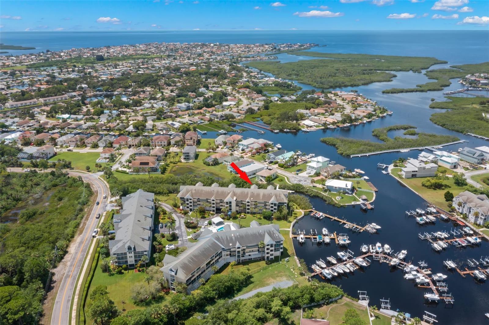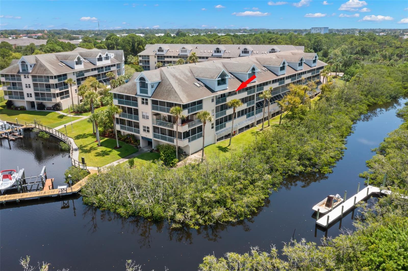 THE ONLY UNIT FOR SALE IN HEATHER COVE WITH A PRIVATE DOCK AND LIFT. Owner say bring offers!!! Don't miss your chance! A must see rarely available 3rd Floor unit with privately owned BOAT SLIP w/ 10,000 lb LIFT ONLY 15-20 minutes to GULF. UNIT NEXT DOOR SOLD FOR $520,000. Hurry before this deal is gone! Located in the serene waterfront community of Heather Cove, an oasis tucked away from hustle and bustle but just minutes from shopping and Downtown New Port Richey. This unit offers a remodeled kitchen with quartz counters, 2 wet bars, 3 sky lights, walk in attic storage, cathedral living room ceiling, 2 porches, newer sliders, arch window and paint. Boat slip/lift B5. The upstairs can be used as a third bedroom with private bath. Attic walk in storage for your workshop, She Shed or that needed storage which is a rarity in Florida condos. Located close to the excitement of Tampa/St Pete and Clearwater with the locale of a laid back waterfront paradise. Gulf Landings offers a clubhouse, 2 boat ramps, dock, 2 tennis courts, 4 Pickleball Courts, 2 heated pools/spa, under building parking, and Private Beach with pavilions and grills.