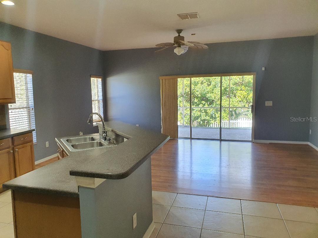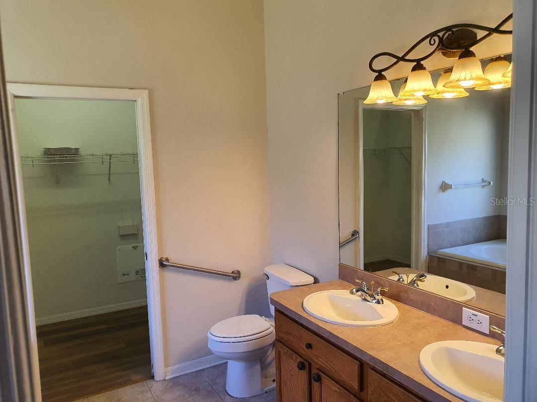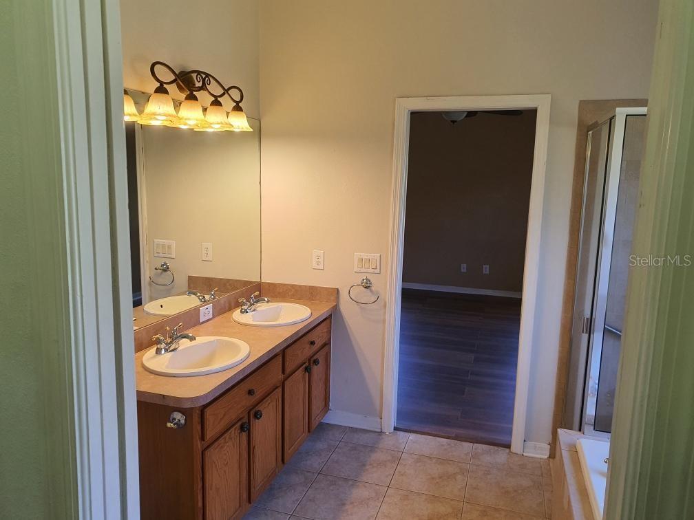Resort living at it's finest ! Beautiful Waters Edge gated Community, a great place to let your growing family flourish. This community has it all from the grand swimming pool, kiddie pool and playground, a 70 acre lake, dual fishing piers and boat dock, basketball court, topping it off with a 9,000 sq ft clubhouse. It's like having a mini fun park in your back yard. The home is a beautifully laid out open plan design. Laminate floors are being installed in bedrooms. Gourmet kitchen with updated appliances, master bath features dual sinks with garden bath tub, separate shower and huge walk in closet. Screened enclosed patio in rear leading to large fenced garden. This home has it all including some of the best schools in the area. Come see this amazingly beautiful community ...and don't forget to take a closer look at this St John model home. New laminate floors installed in all bedrooms. Home is being sold as is for sellers convenience.