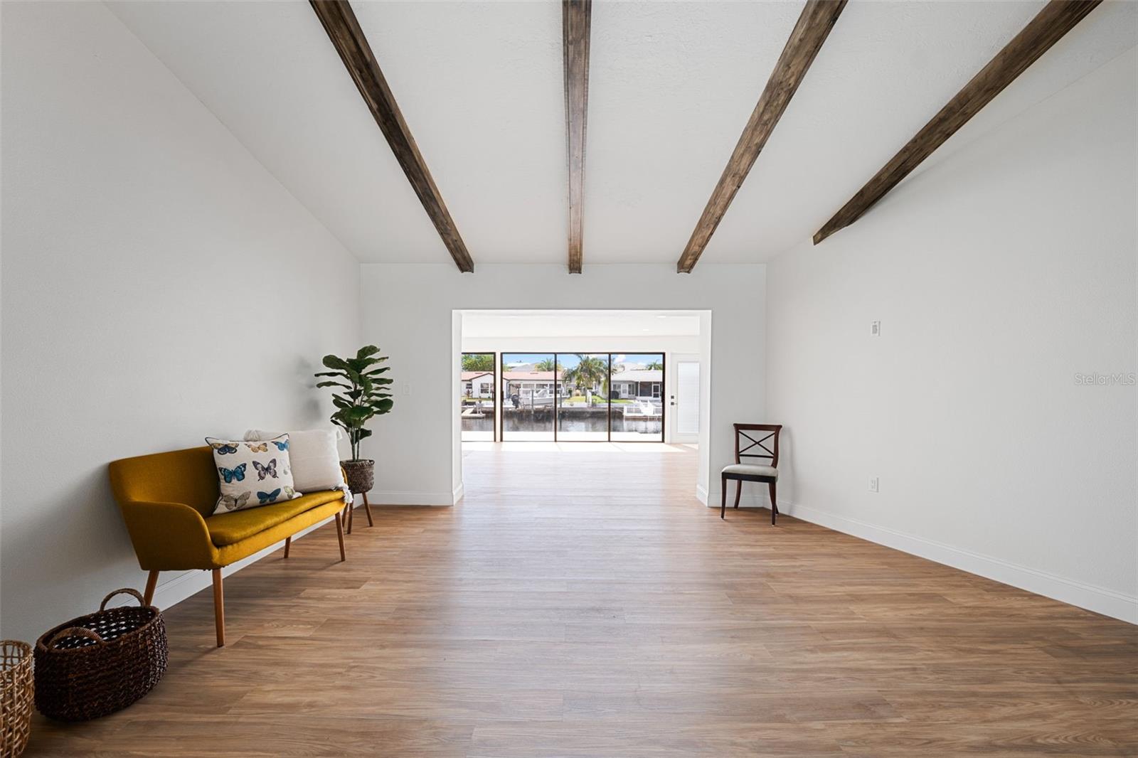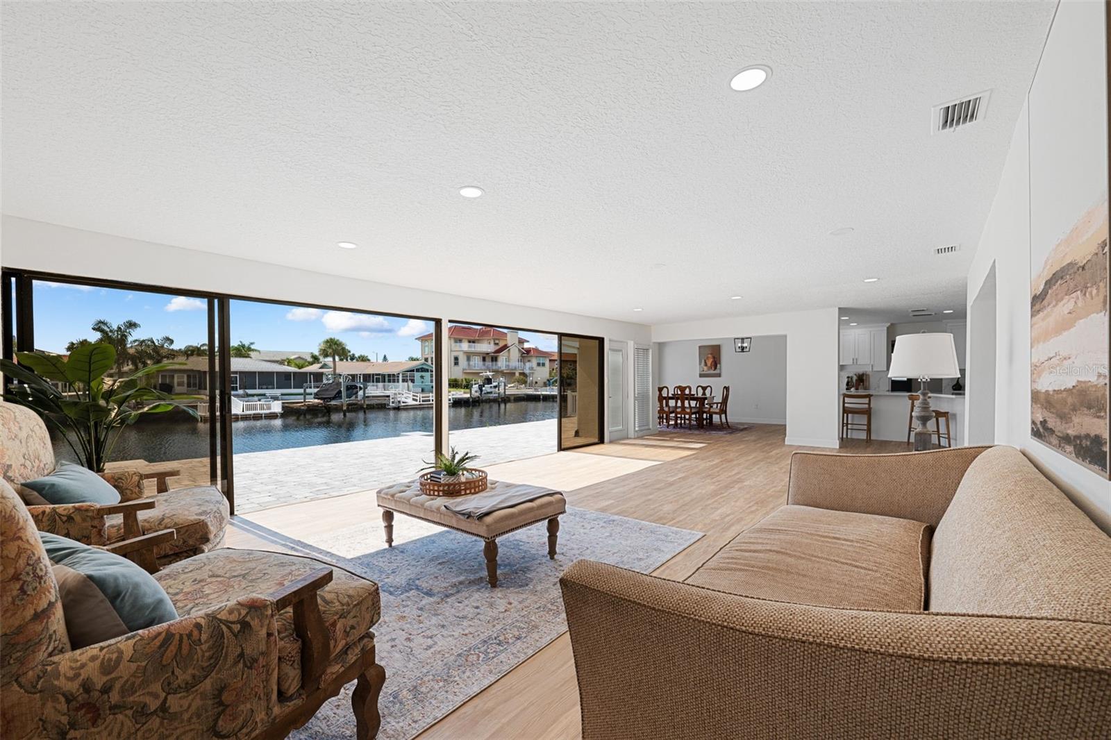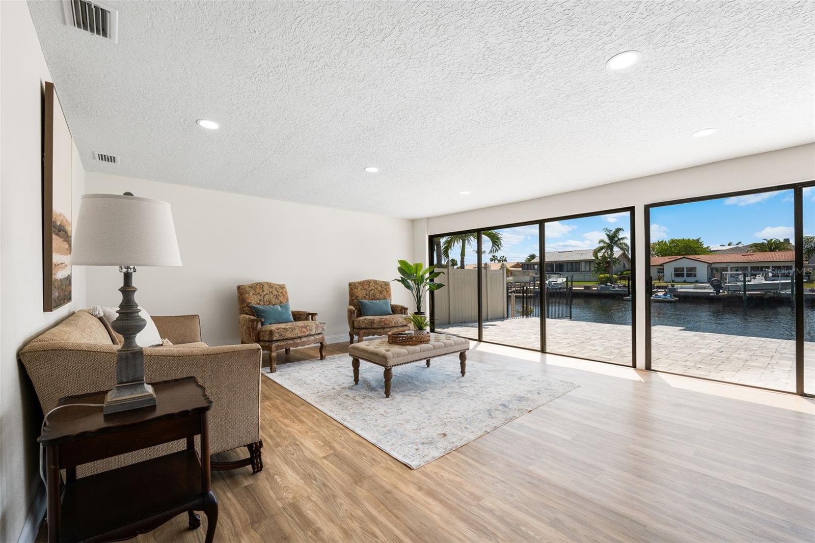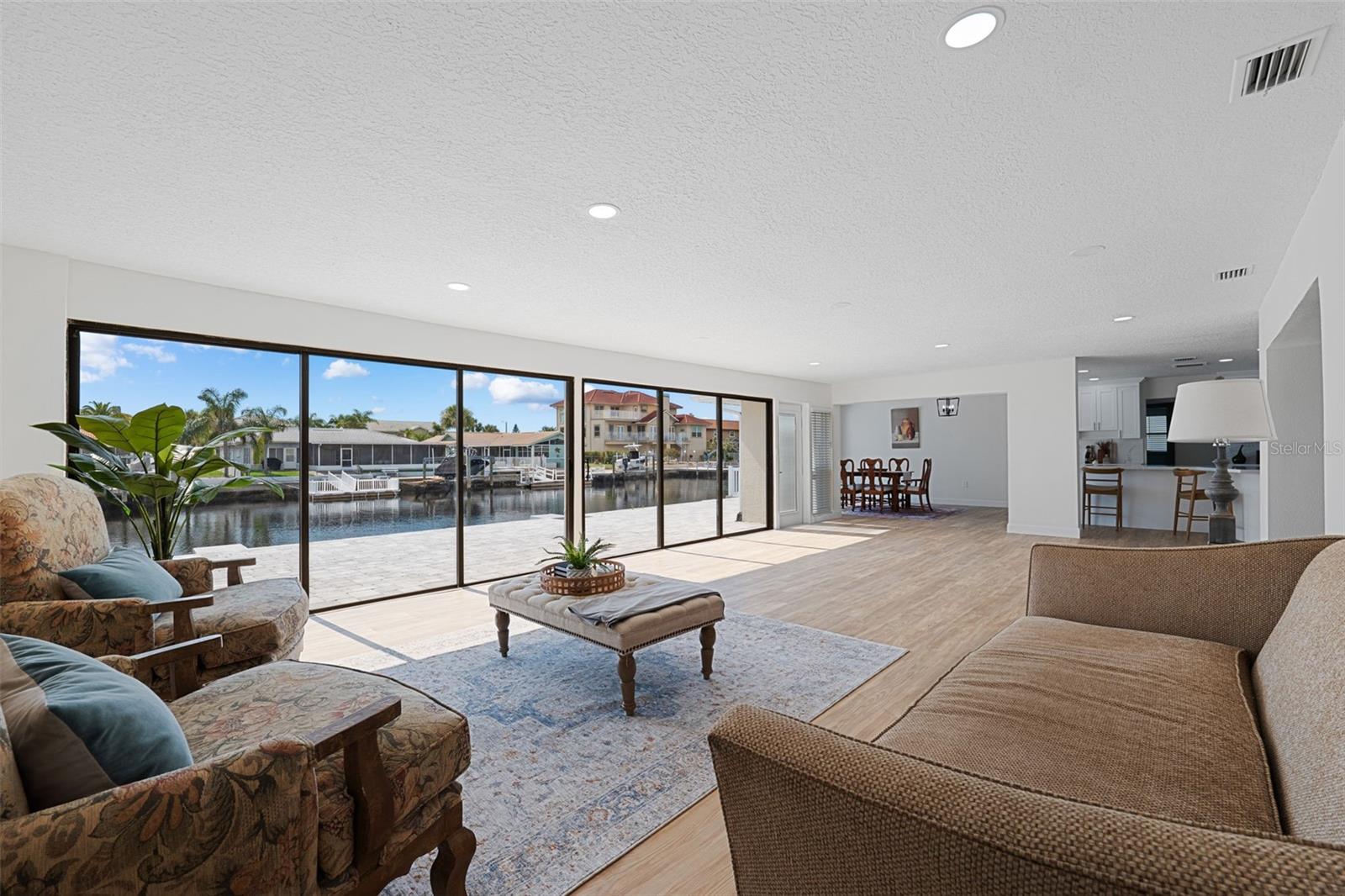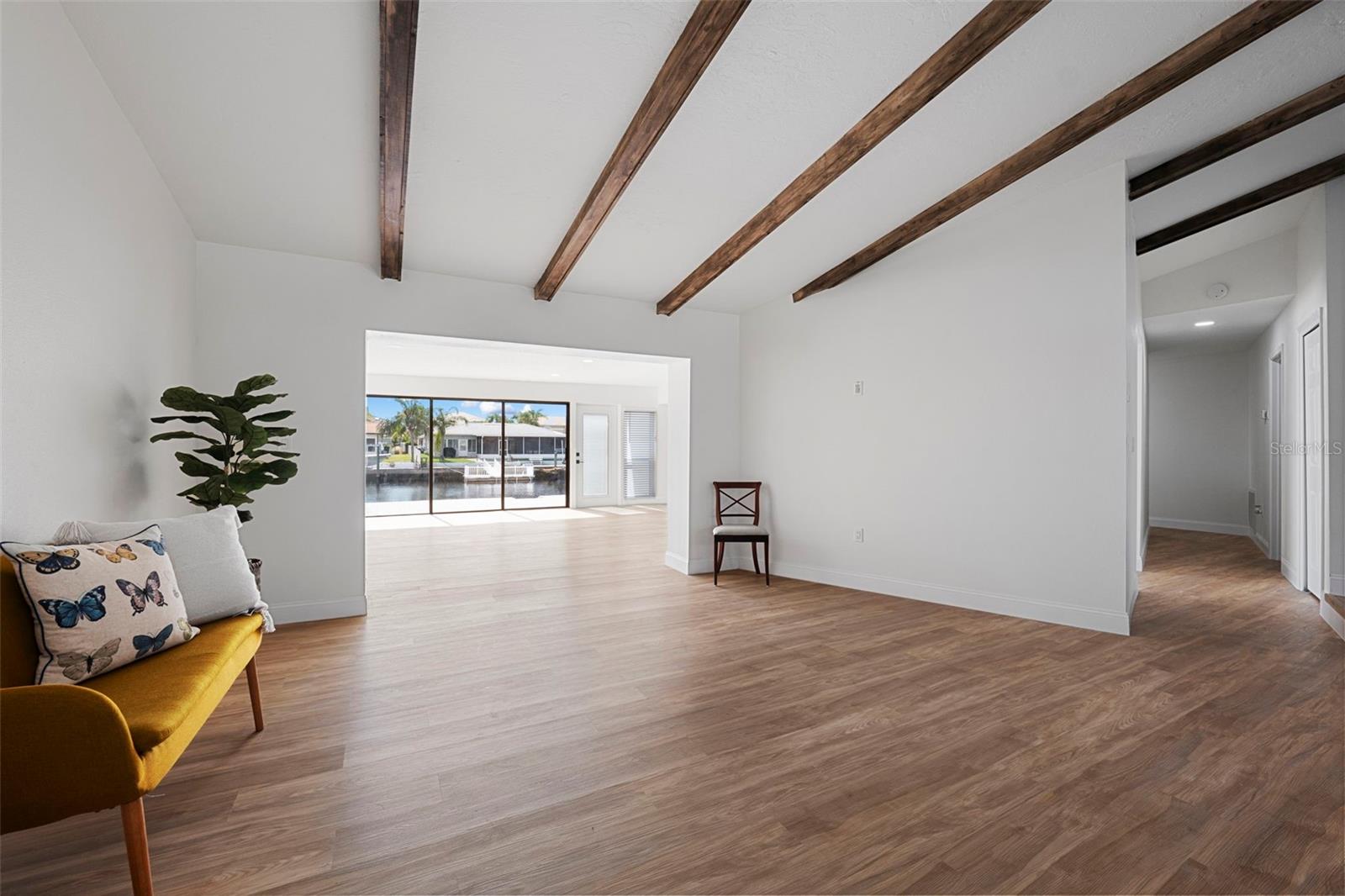 Welcome to your waterfront dream home in Gulf Harbors of New Port Richey, Florida! This stunning 3-bedroom, 3-bathroom residence with a 2-car garage offers a luxurious waterfront lifestyle with a host of modern amenities. As you step inside, you'll be greeted by a newly remodeled interior featuring new luxury vinyl flooring and fresh paint throughout. The open living space is enhanced by the cathedral ceiling with exposed beams above the living room and elevated dining room. The family room features glass sliding doors, providing breathtaking views of the canal and allowing natural light to flood the home. The brand-new kitchen is a chef's delight with all new stainless-steel appliances including a wine fridge, range hood and a drawer-style microwave with one-touch open/close function built right into the island. The bay window in the adjoining dinette offers yet another view of the water. A great place to sip your morning coffee while watching for the dolphins that occasionally make an appearance right in your backyard. The laundry room off the garage adds convenience to daily living with its own sink, cabinetry for storage and counter space for folding. The split floorplan offers privacy and comfort, with the primary bedroom suite situated at one end of the home and the second bedroom with its own ensuite bathroom, third bedroom and separate guest bathroom situated at the other, providing ample space for family and guests. The primary bathroom features a large walk-in shower with rain shower head and built-in bench, dual sink vanity, walk-in closet and private toilet closet. The second bedrooms ensuite bathroom features a walk-in shower and single vanity sink. The third (guest) bathroom is conveniently located in the hall between bedrooms two and three. Outside, the exterior has been completely refinished, including paint and stonework, with a freshly repainted tile roof and driveway. The back patio has been updated with new pavers and overlooks the canal including 67 feet of water frontage, offering a serene spot to unwind and entertain. Location is key, and this home does not disappoint. Less than a quarter mile down the canal, you'll find yourself in the Gulf of Mexico, offering endless opportunities for boating and water activities. Gulf Harbors is a golf cart friendly community allowing for easy access to the Gulf Harbors Private Beach, just a few blocks away. Access to the private beach can be obtained by joining the Gulf Harbors Private Beach Club for an additional yearly fee. The Gulf Harbors Civic Association (a voluntary HOA) provides additional community amenities and events. Don't miss the chance to make this waterfront oasis your own and experience the best of Florida living in Gulf Harbors!