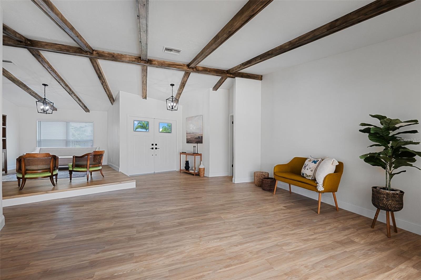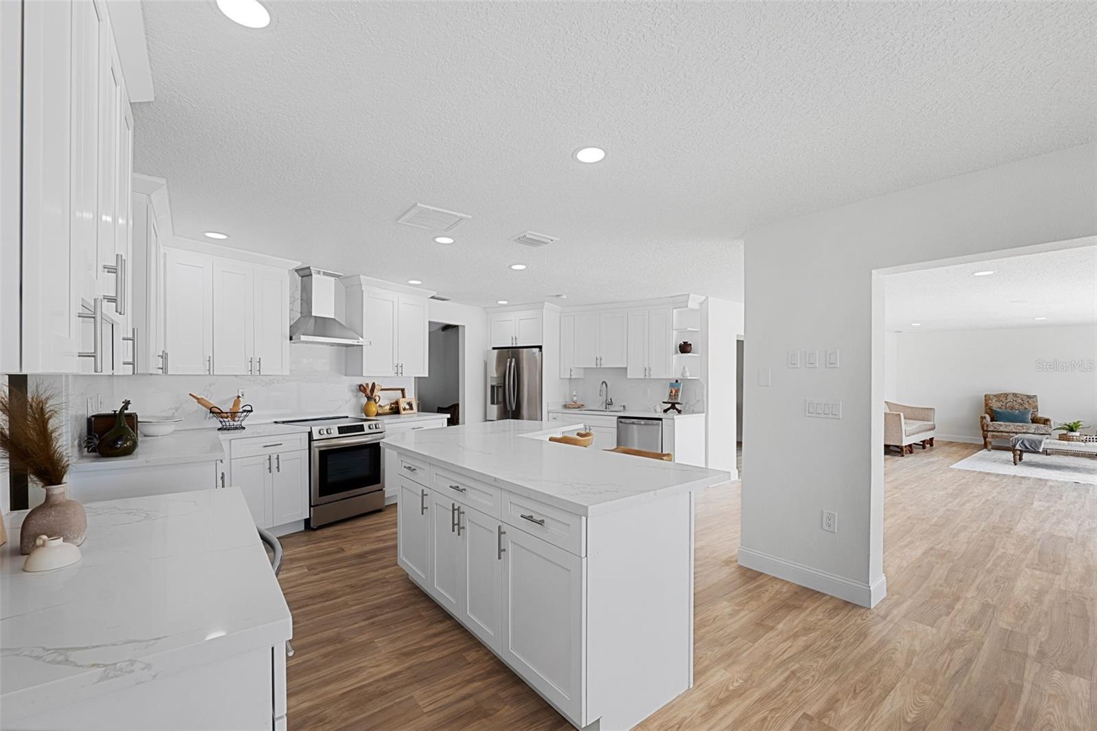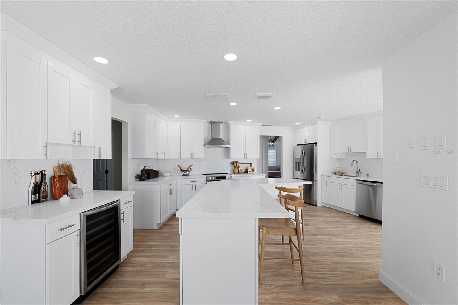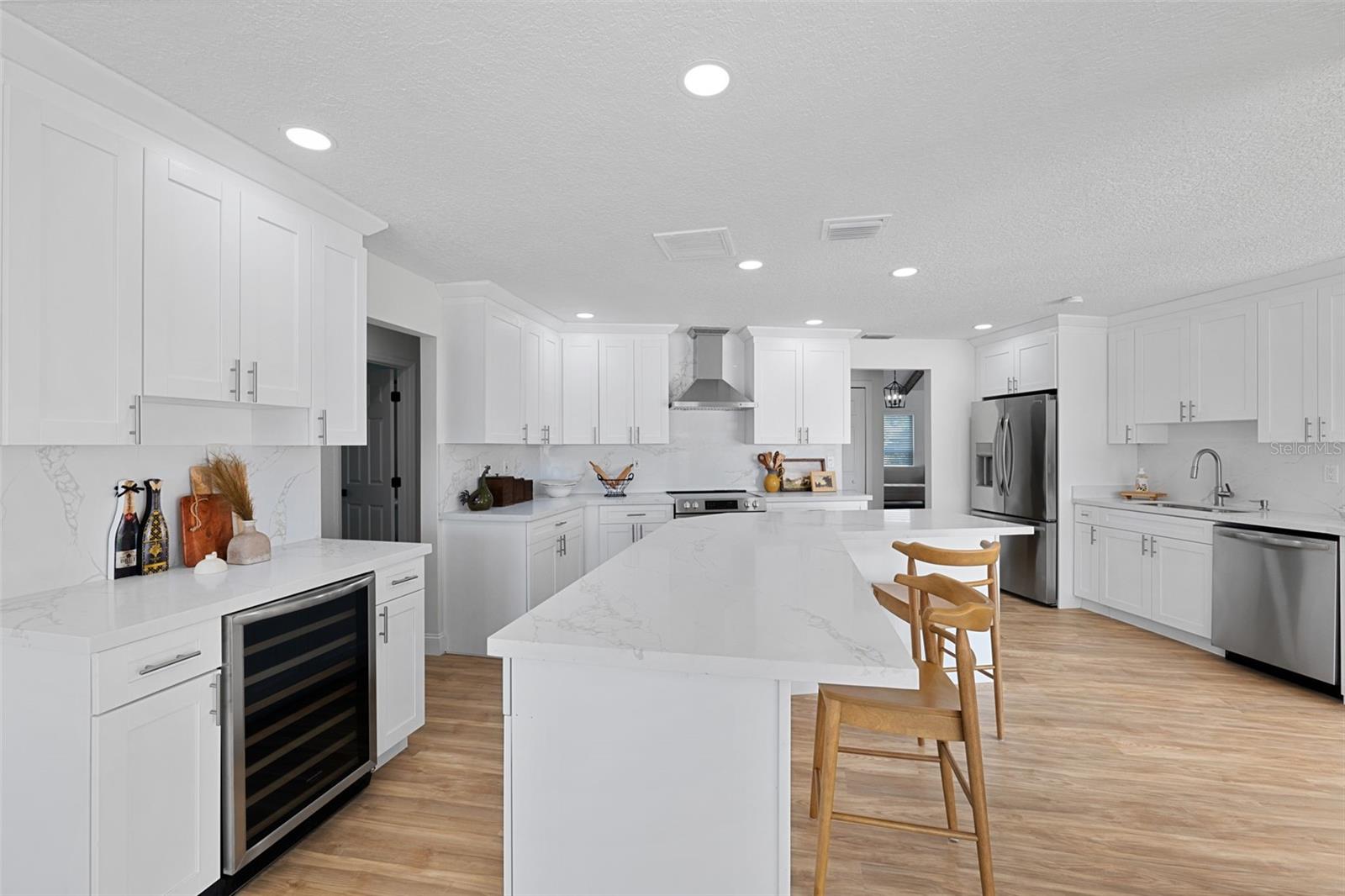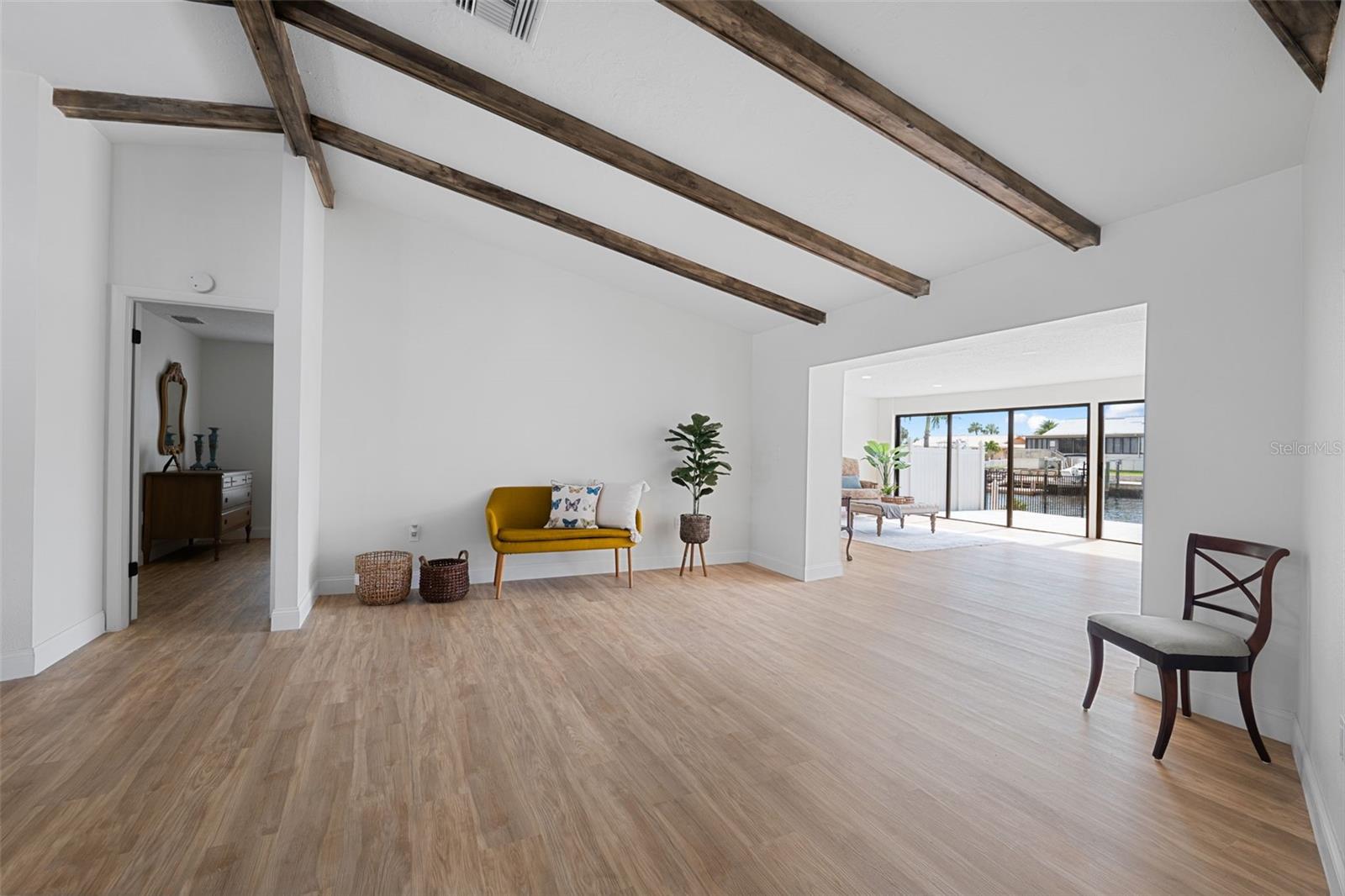 Welcome to your waterfront dream home in Gulf Harbors of New Port Richey, Florida! This stunning 3-bedroom, 3-bathroom residence with a 2-car garage offers a luxurious waterfront lifestyle with a host of modern amenities. As you step inside, you'll be greeted by a newly remodeled interior featuring new luxury vinyl flooring and fresh paint throughout. The open living space is enhanced by the cathedral ceiling with exposed beams above the living room and elevated dining room. The family room features glass sliding doors, providing breathtaking views of the canal and allowing natural light to flood the home. The brand-new kitchen is a chef's delight with all new stainless-steel appliances including a wine fridge, range hood and a drawer-style microwave with one-touch open/close function built right into the island. The bay window in the adjoining dinette offers yet another view of the water. A great place to sip your morning coffee while watching for the dolphins that occasionally make an appearance right in your backyard. The laundry room off the garage adds convenience to daily living with its own sink, cabinetry for storage and counter space for folding. The split floorplan offers privacy and comfort, with the primary bedroom suite situated at one end of the home and the second bedroom with its own ensuite bathroom, third bedroom and separate guest bathroom situated at the other, providing ample space for family and guests. The primary bathroom features a large walk-in shower with rain shower head and built-in bench, dual sink vanity, walk-in closet and private toilet closet. The second bedrooms ensuite bathroom features a walk-in shower and single vanity sink. The third (guest) bathroom is conveniently located in the hall between bedrooms two and three. Outside, the exterior has been completely refinished, including paint and stonework, with a freshly repainted tile roof and driveway. The back patio has been updated with new pavers and overlooks the canal including 67 feet of water frontage, offering a serene spot to unwind and entertain. Location is key, and this home does not disappoint. Less than a quarter mile down the canal, you'll find yourself in the Gulf of Mexico, offering endless opportunities for boating and water activities. Gulf Harbors is a golf cart friendly community allowing for easy access to the Gulf Harbors Private Beach, just a few blocks away. Access to the private beach can be obtained by joining the Gulf Harbors Private Beach Club for an additional yearly fee. The Gulf Harbors Civic Association (a voluntary HOA) provides additional community amenities and events. Don't miss the chance to make this waterfront oasis your own and experience the best of Florida living in Gulf Harbors!
