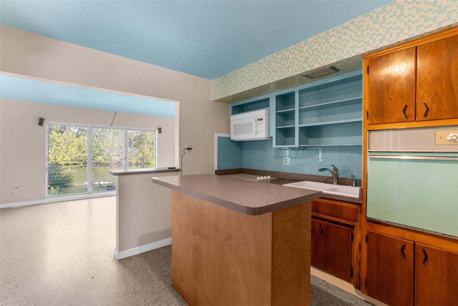 BACK on Market no fault of seller! NO HOA, NO CDD, and over Approximately 190 ft of WATERFRONT views to enjoy your own piece of PARADISE! Fish from your own back yard! This beautiful home is waiting for its next owner to bring it back into its fully glory! With all Original 1959 cabinets, original built in oven, and original Terrazzo flooring it's like opening a time capsule and stepping back in time to when things moved at a slower pace! Things that matter: AC 2023, ROOF 2016, FENCE 2022, ELECTRICAL PANEL UPGRADE 2013, NEW REFRIGERATOR. The exterior boasts of a Spacious backyard with a storage shed, small area fenced in for dog run, and a large storage area/laundry room. If you want to keep the nostalgia, this home will need a small amount of work to due to some water damage, and thanks to the beautiful terrazzo flooring, the only damage seems to be some drywall and the original wood front door, but a little elbow grease and you have a cute forever home, vacation home, or the perfect Air b and B. Close to Tarpon Springs Sponge Docks and Main Street in Downtown New Port Richey!