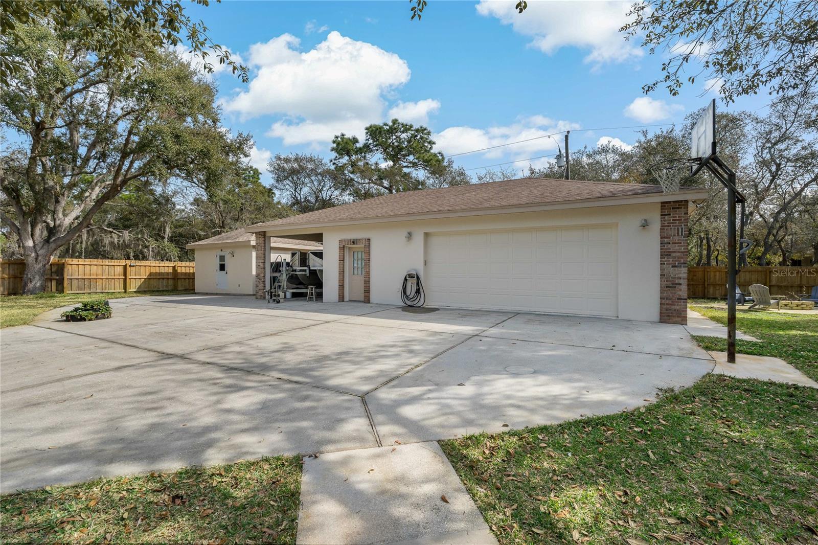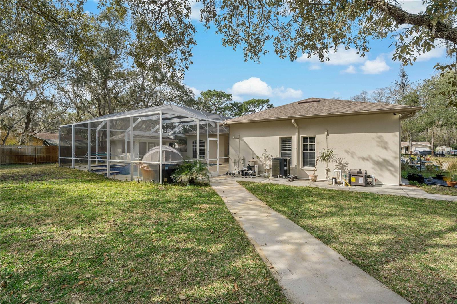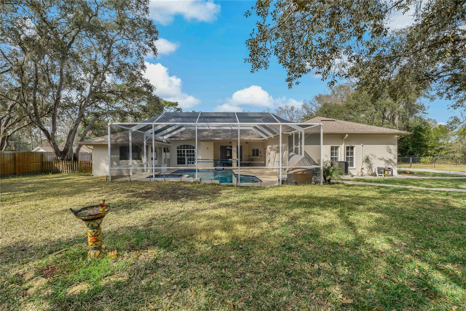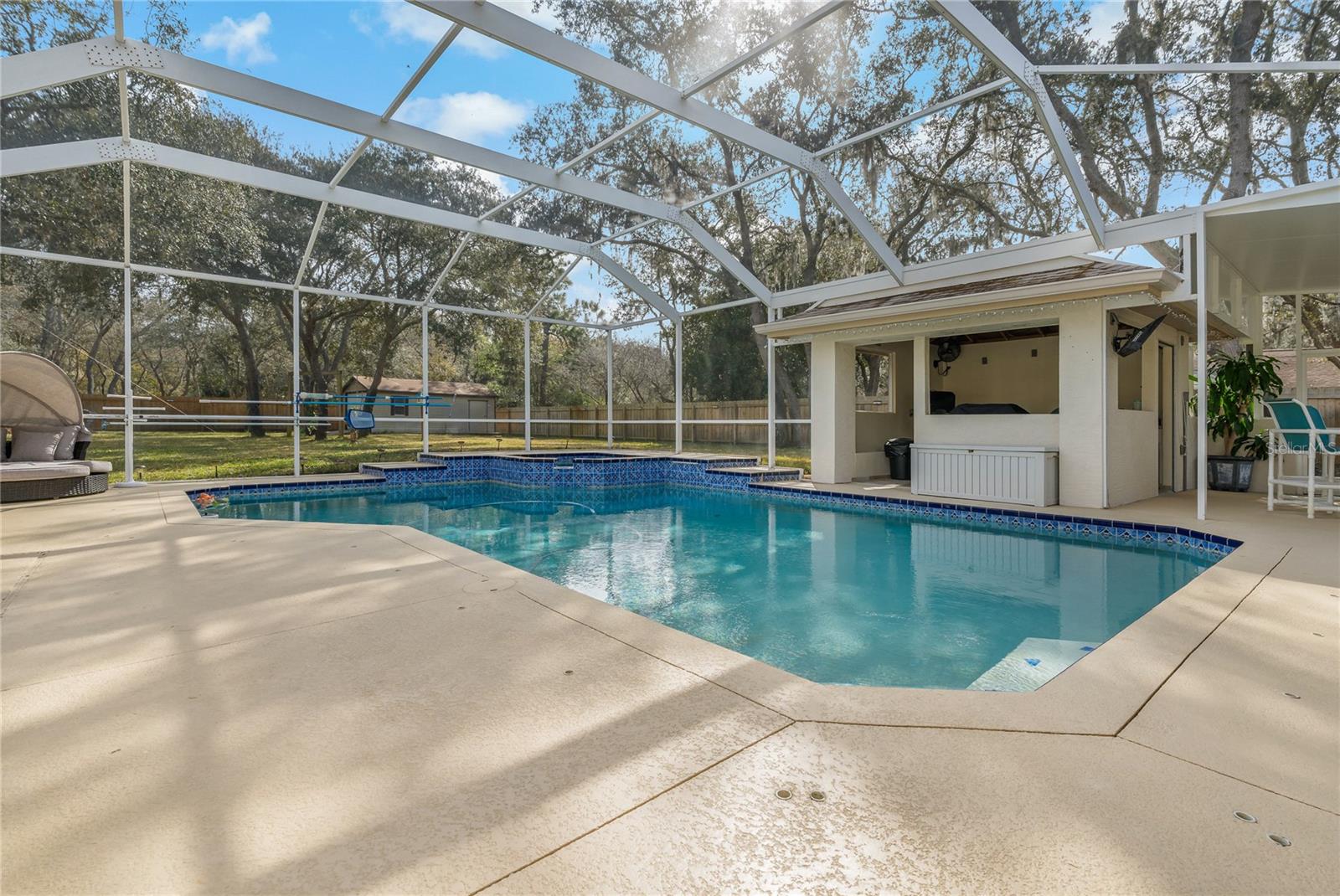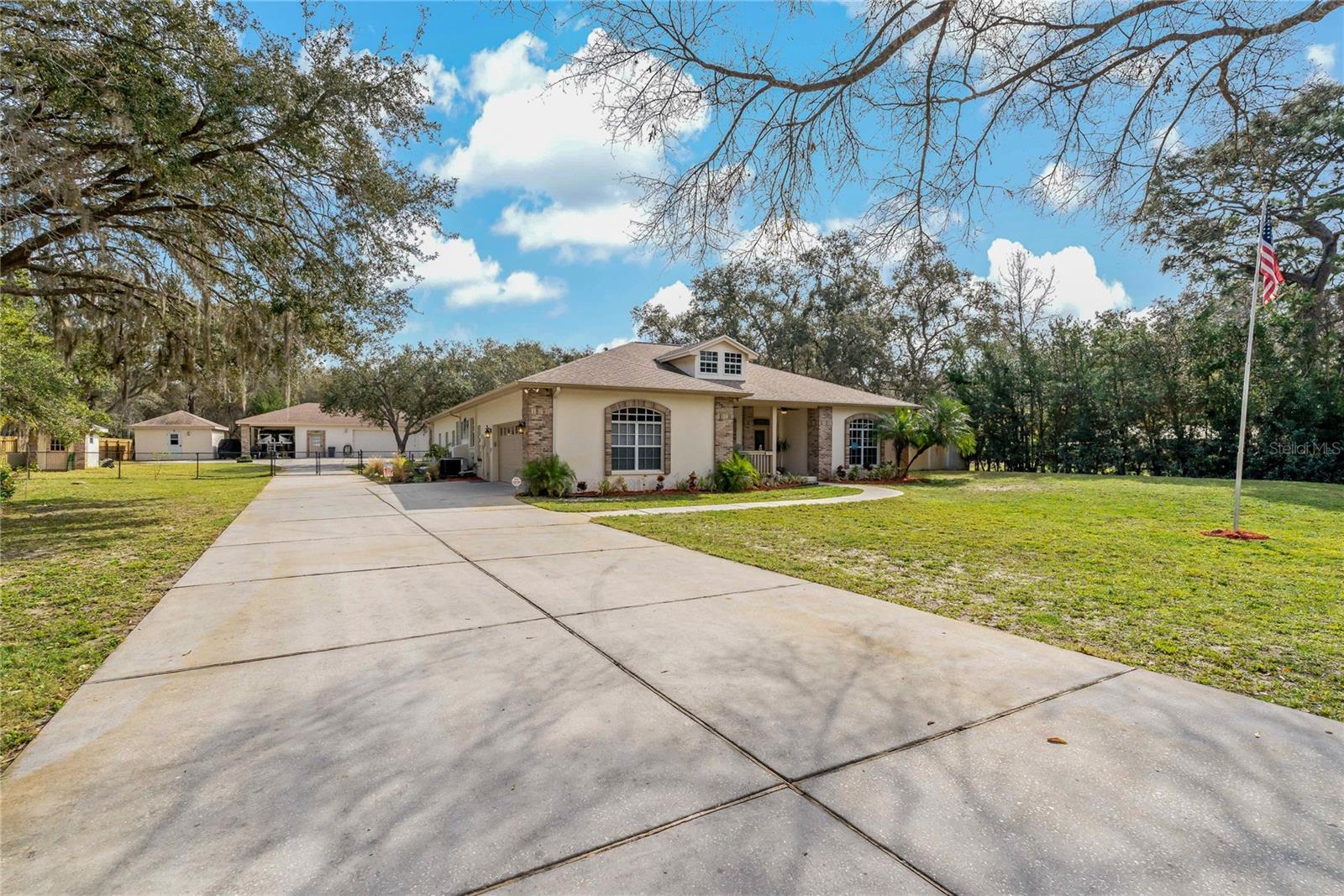 Do you want it all? A beautiful home with so many amenities. You’ll never want to leave. This 4 bedroom 3 full bath house is located on a dead end private street. So much privacy you'll feel like you’re living in the country, but the stores are only a few minutes away! The kitchen has been upgraded with quartz countertops, whisper white subway tile backsplash a Zline dual fuel stove and stainless steel appliances. PLANTATION SHUTTERS throughout the home & Central Vacuum System. Huge master bedroom with 2 walk-in closets, a beautiful en suite bathroom with soaking tub, shower and granite countertops. The other three bedrooms are located on the other half of the house with nice built-in closets. For the cooler nights cozy up to the gas fireplace in the spacious living room with an additional family room too! There is a nice size bonus room with plenty of natural light facing the front yard. Do you like to entertain? There is a heated pool, spa, fire pit, pool house and a HUGE man cave. The man cave is equipped with a full bar, full bath, kitchen area, AC and heat. There is an additional building being used as a gym. It has air-conditioning, ceiling fan And running water. There is a third building that could be used for a workshop with electricity and two extra sheds for storage. . The yard is beautifully landscaped with two huge staghorns, and other beautiful flowers, plants, lemon tree, lime tree, and kiwi tree. The front and the backyard is completely fenced in, with Motion solar lighting in the backyard. See attachment for complete list of all improvements. Too many to list. HVAC 2001 & 2009 serviced regularly. ROOF 2015.