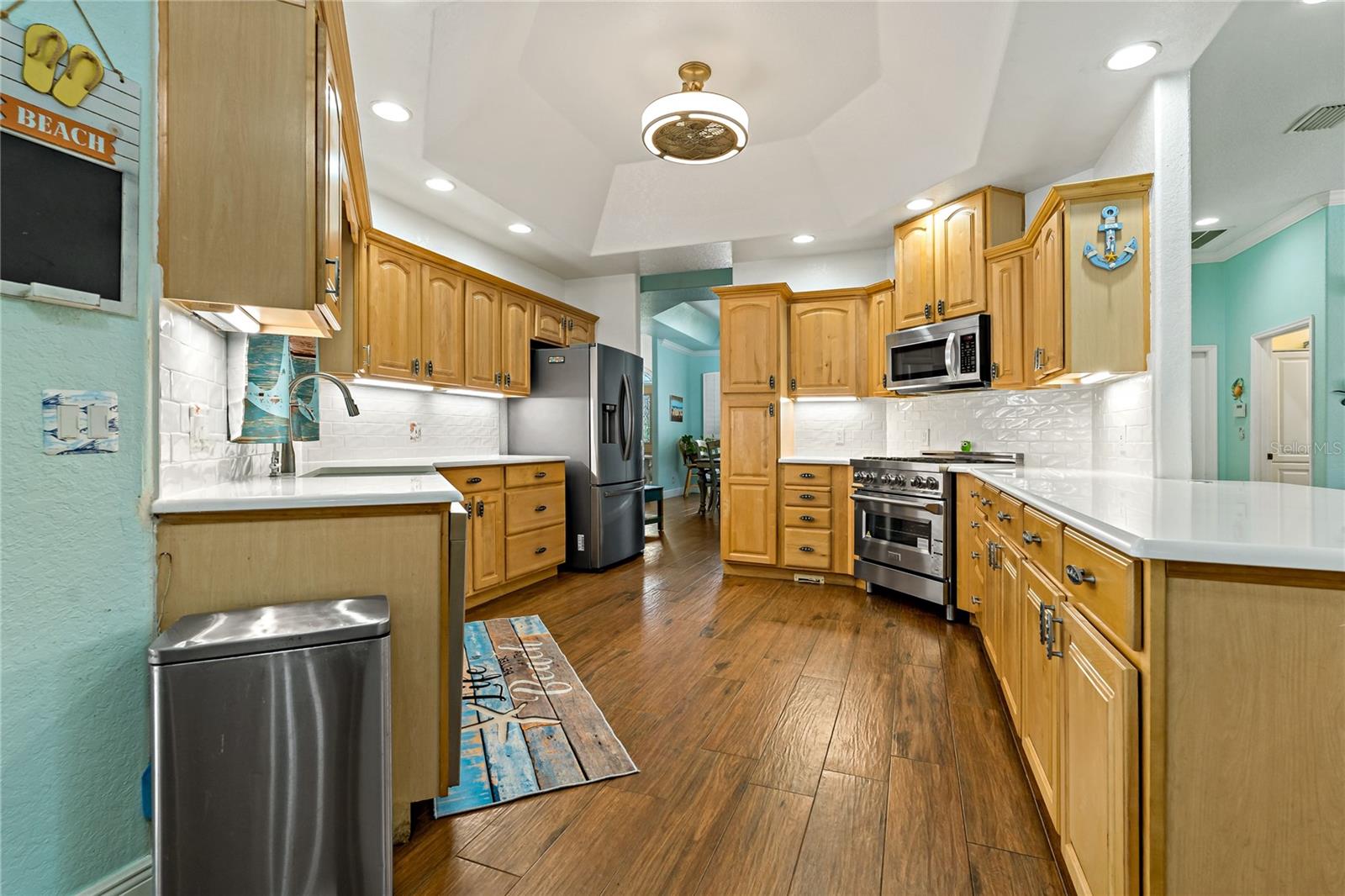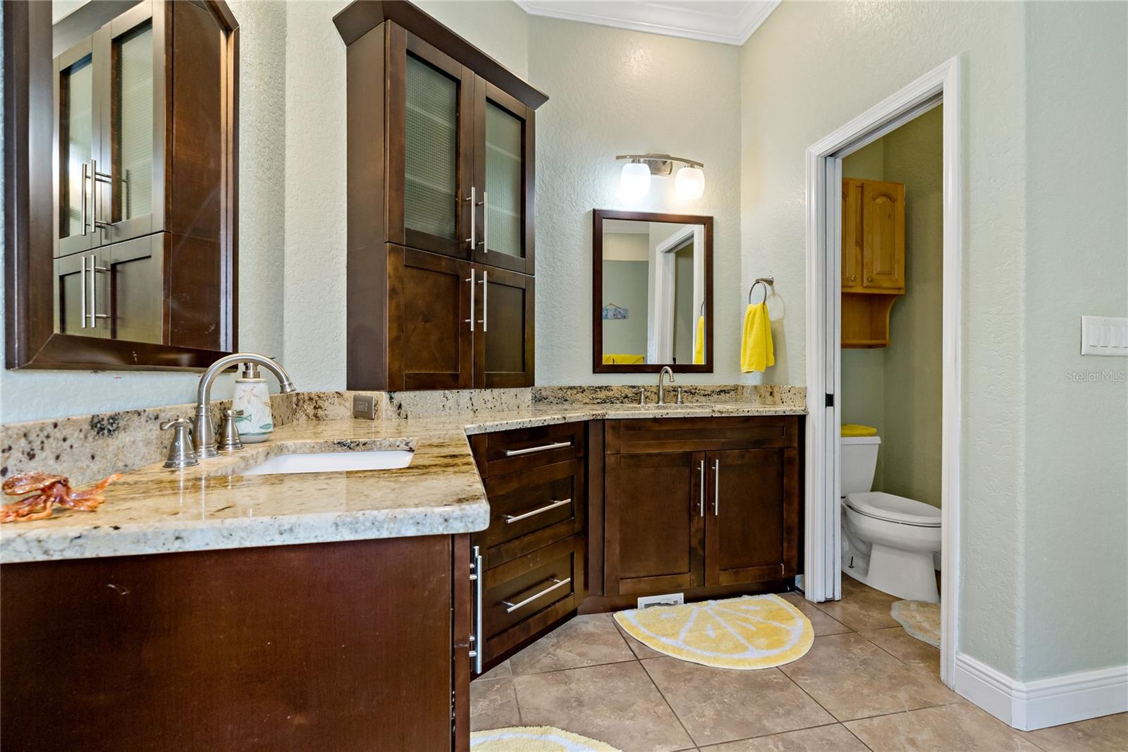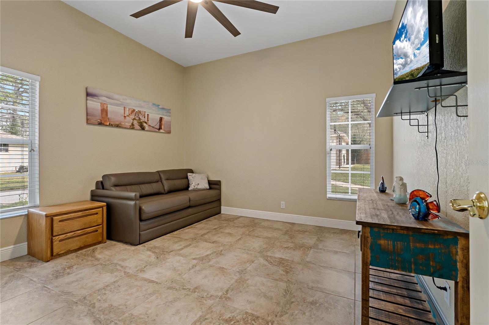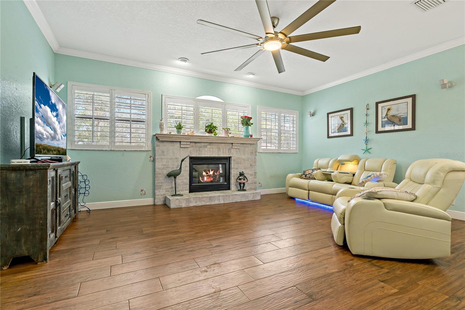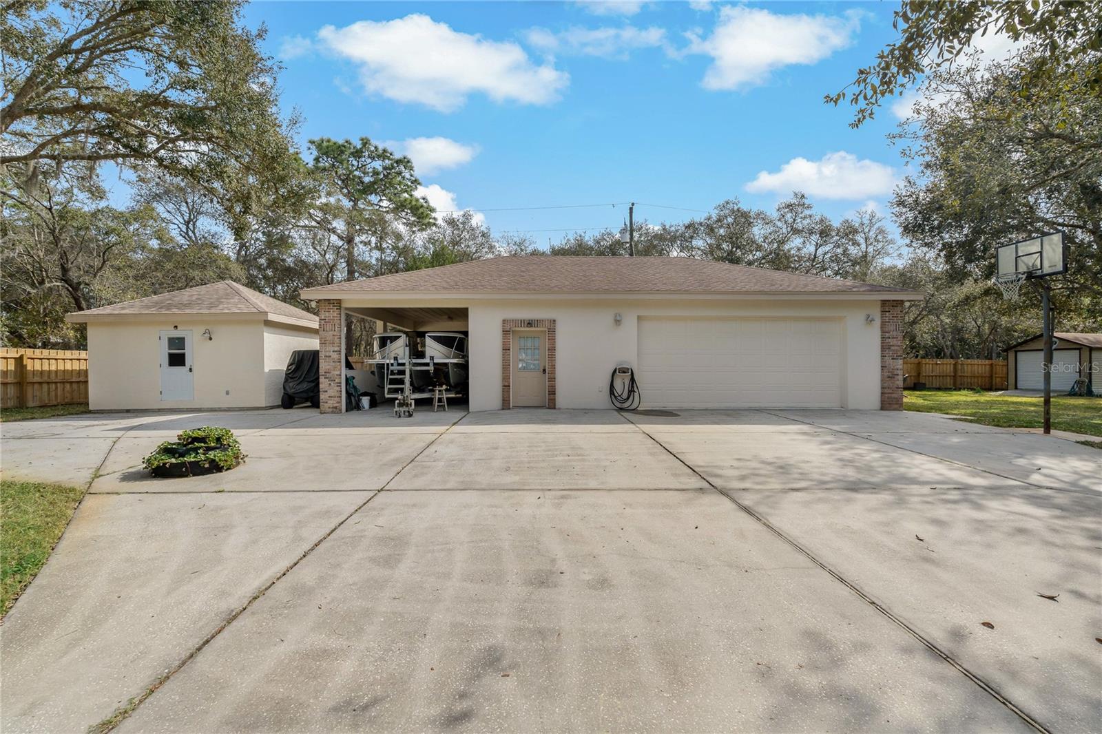 Do you want it all? A beautiful home with so many amenities. You’ll never want to leave. This 4 bedroom 3 full bath house is located on a dead end private street. So much privacy you'll feel like you’re living in the country, but the stores are only a few minutes away! The kitchen has been upgraded with quartz countertops, whisper white subway tile backsplash a Zline dual fuel stove and stainless steel appliances. PLANTATION SHUTTERS throughout the home & Central Vacuum System. Huge master bedroom with 2 walk-in closets, a beautiful en suite bathroom with soaking tub, shower and granite countertops. The other three bedrooms are located on the other half of the house with nice built-in closets. For the cooler nights cozy up to the gas fireplace in the spacious living room with an additional family room too! There is a nice size bonus room with plenty of natural light facing the front yard. Do you like to entertain? There is a heated pool, spa, fire pit, pool house and a HUGE man cave. The man cave is equipped with a full bar, full bath, kitchen area, AC and heat. There is an additional building being used as a gym. It has air-conditioning, ceiling fan And running water. There is a third building that could be used for a workshop with electricity and two extra sheds for storage. . The yard is beautifully landscaped with two huge staghorns, and other beautiful flowers, plants, lemon tree, lime tree, and kiwi tree. The front and the backyard is completely fenced in, with Motion solar lighting in the backyard. See attachment for complete list of all improvements. Too many to list. HVAC 2001 & 2009 serviced regularly. ROOF 2015.