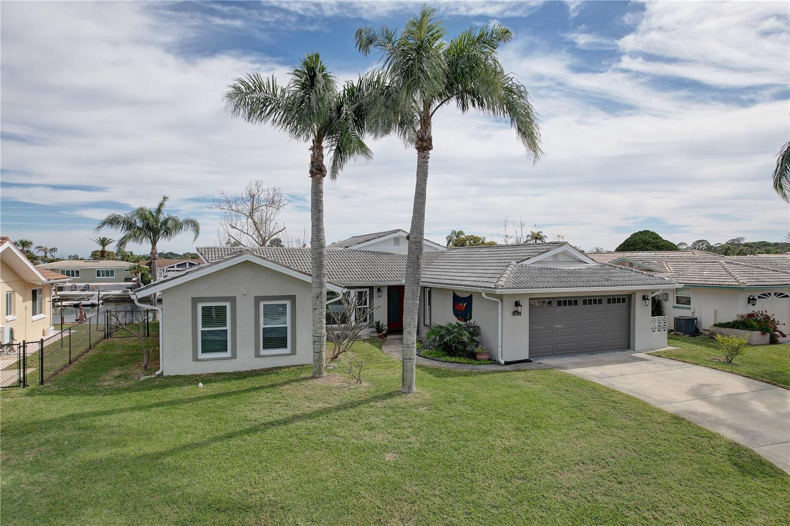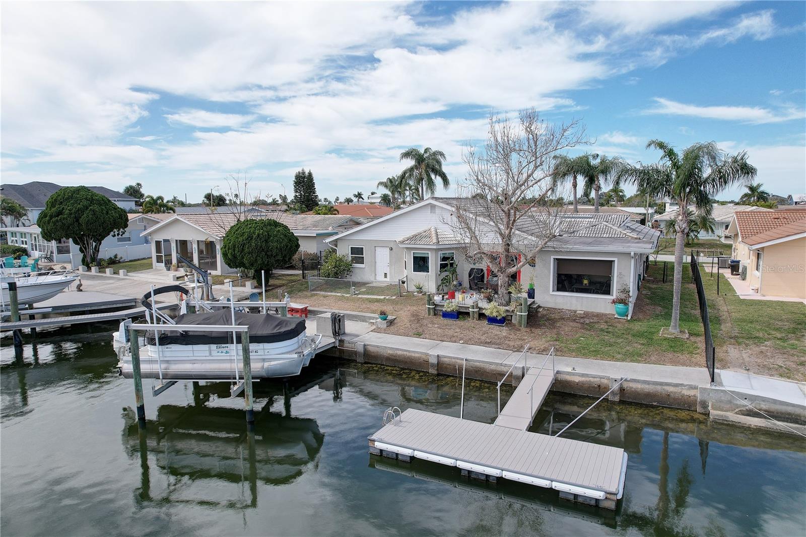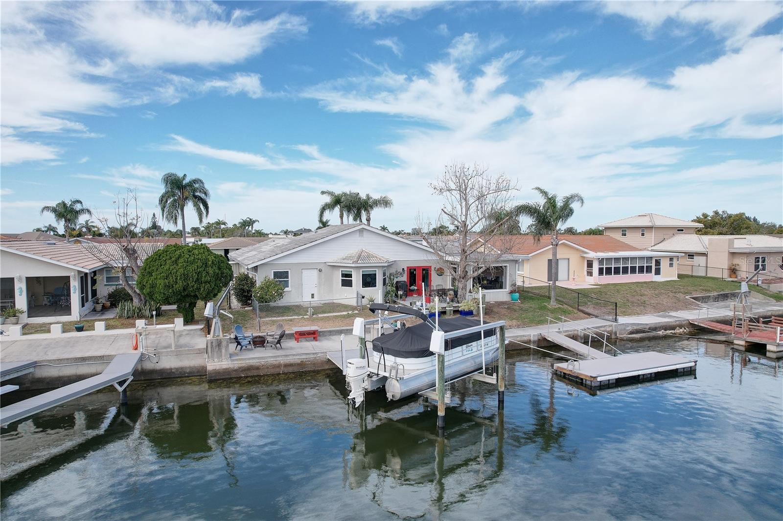 ****Seller motivated, bring reasonable offers.**** Nestled in the charming community of Flor a mar, is this waterfront gem that effortlessly marries luxurious living with the allure of coastal tranquility. This captivating 3-bedroom, 2-bathroom residence, spanning a generous 2,094 sqft, is a testament to elegant design and thoughtful upgrades. As you step through the front door, the warmth of real wood flooring guides you through the inviting interiors. The seamless transition to luxury vinyl plank flooring in the bedrooms not only adds a touch of sophistication but also ensures easy maintenance, striking the perfect balance between aesthetics and practicality. One of the home's defining features is its privileged location on a short canal leading to the Gulf of Mexico. Imagine waking up to the gentle lapping of water against your private floating dock, or setting sail from your own boat lift for a day of exploration on the open Gulf waters. Renovated in 2017, the home boasts high-impact windows, doors, and garage doors, providing not only aesthetic appeal but also a sense of security against the elements. The vaulted ceilings create an airy atmosphere, while the fireplace adds a cozy touch, making this residence equally ideal for intimate family evenings or grand entertaining affairs. The allure extends beyond the home itself, as it offers a private beach sanctuary. Immerse yourself in the tranquil surroundings, taking advantage of clean restrooms, 22 gazebos, grills, picnic tables, and ample seating along the beach. The pavilion invites you to host gatherings against the backdrop of the sun setting over the Gulf, creating memories that will linger for a lifetime. A home of this caliber is not just a dwelling; it's an experience. The thoughtful details, from the floating dock to the private beach, elevate 4918 Forecastle Dr to a level of coastal living that is truly unparalleled. Whether you're seeking a retreat from the daily hustle or a haven for entertaining friends and family, this residence is poised to exceed your expectations. In the heart of New Port Richey, this property isn't just a home; it's an invitation to embrace a lifestyle defined by serenity, sophistication, and the timeless beauty of Gulf Coast living. Don't miss the opportunity to make this waterfront haven your own.