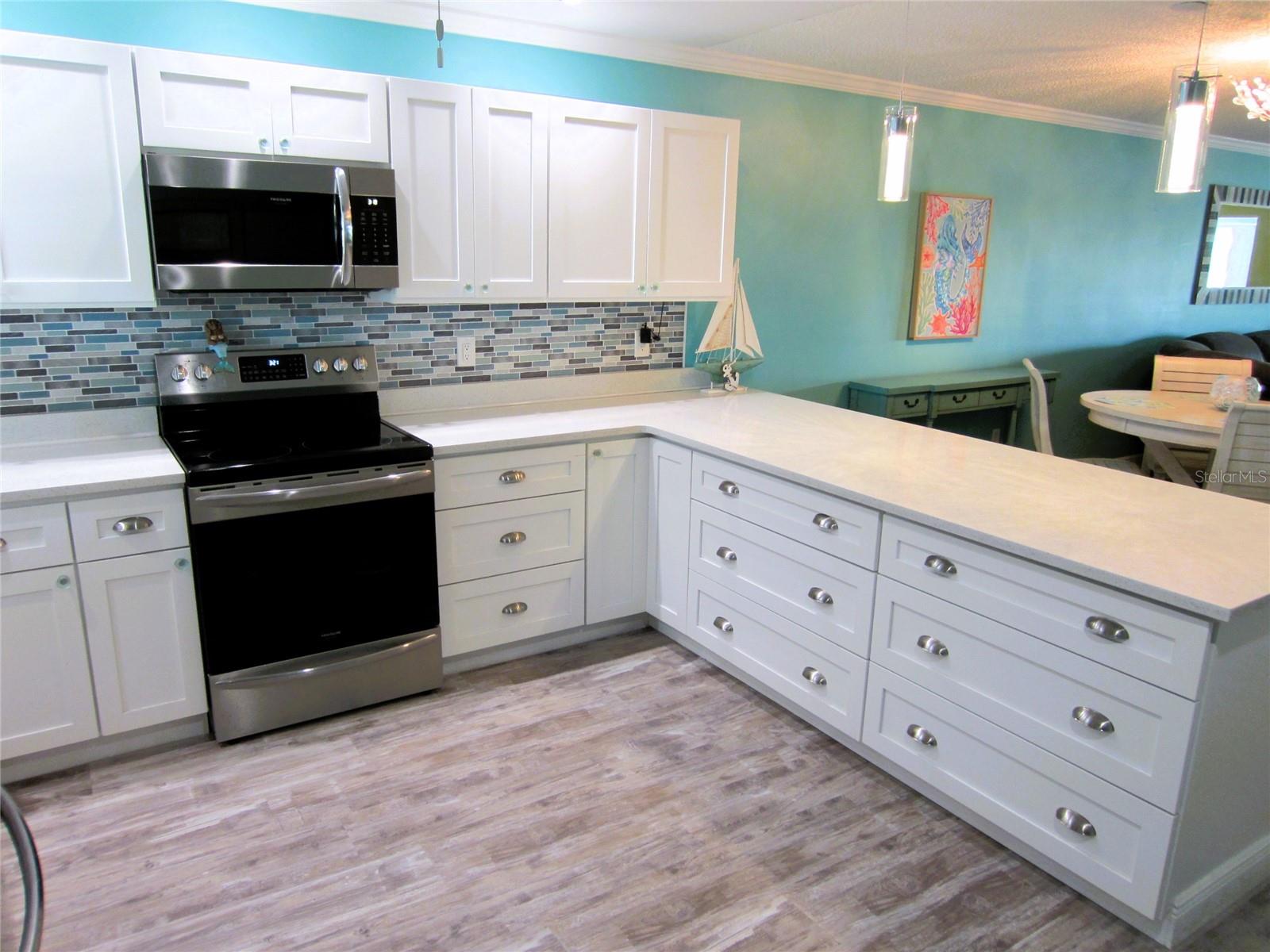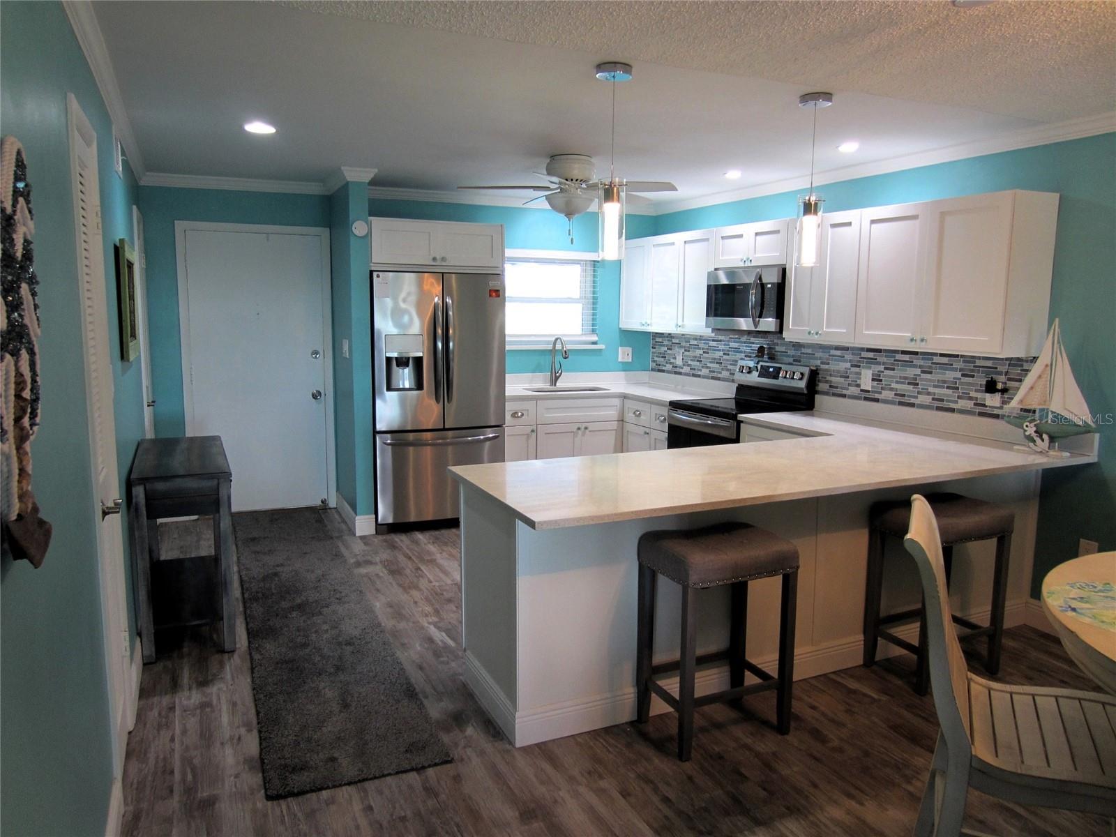UPDATED WATERFRONT HIGH & DRY CONDO !! What more you want? We Have It! Bring your fussiest buyers to see this beautiful, totally remodeled, 2-bedroom 2 bath 3rd floor corner Condo with a Florida room that could possibly be a 3rd bedroom has a beautiful water view in the highly sought after Gulf Harbors community. Do you want a pool? We have it right across the street. Do you want a new roof? We have it - 2023. Do you want a new A/C? We have it - 2023. Do you want quartz countertops, luxury vinyl plank floors, BIG kitchen with an open concept and plenty of cabinets and new appliances, tankless water heater, newer impact windows? We have it. Do you want a beautiful private beach where you can view sunsets every night? Gulf Harbors has it with grills, cabanas with picnic tables, showers, and recently updated bathrooms for $180 a year. This truly is a must-see maintenance free condo that is move in ready. All furniture is negotiable. The HOA fees include: 2 pools, one heated; three clubhouses, fitness center, shuffleboard courts, bocce ball, billiards, poker tables, grilling areas, laundry facilities on each floor, cable TV, common area, escrow reserves fund, insurance, internet, exterior maintenance, grounds maintenance, pest control, pool maintenance. Don't wait - schedule your viewing appointment today!! MOTIVATED SELLER