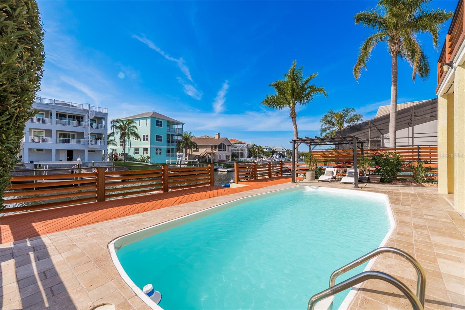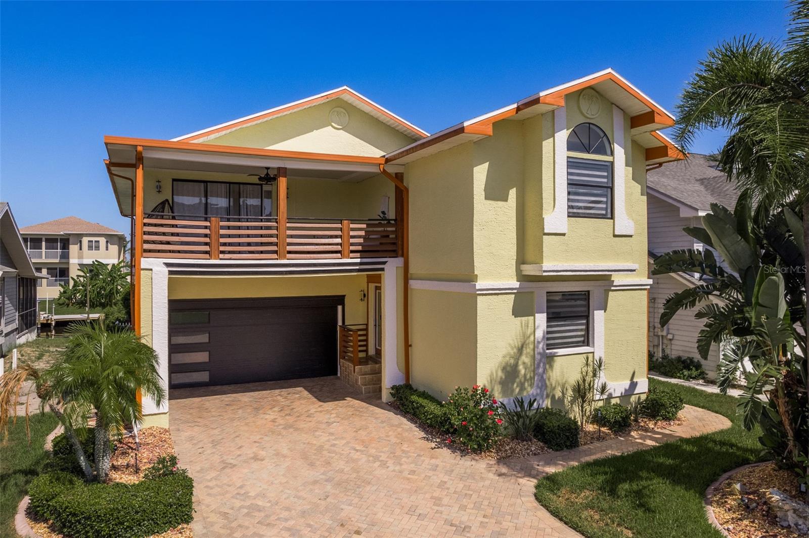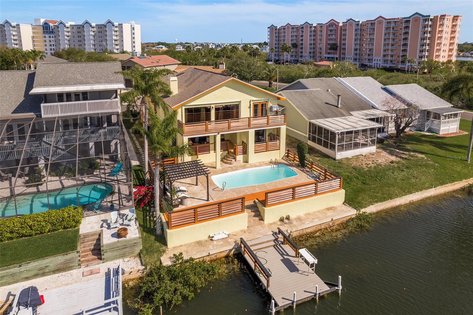 An Exquisite Waterfront Retreat Awaits! This stunning residence boasts luxurious upgrades both inside and out, creating a haven for boat enthusiasts and situated on a cul-de-sac. No expense was spared in crafting this dream paradise, featuring new flooring, a pristine kitchen with granite countertops and a brand new primary bathroom upgrade. Admire the striking stacked stone fireplace, and appreciate the fresh interior paint throughout, with ample storage space and elegant cedar wood railings adorning the exterior balconies, this home radiates curb appeal. Nestled along a picturesque canal just moments from the open Gulf waters, this property offers a resort-like atmosphere, oversized bedrooms, and so much more. The pool area is a true oasis, boasting expansive decking, travertine pavers throughout, ample lounging space, a charming cabana area, and multilevel balconies—an ideal setting for entertaining guests and relishing the Florida lifestyle. Boasting impeccable contemporary upgrades, this waterfront gem offers a four-way split floor plan spanning over 3,200 square feet of living space. Enjoy breathtaking Gulf sunsets, ocean wild-life and access to a private beach, completing the ultimate waterfront lifestyle experience.
