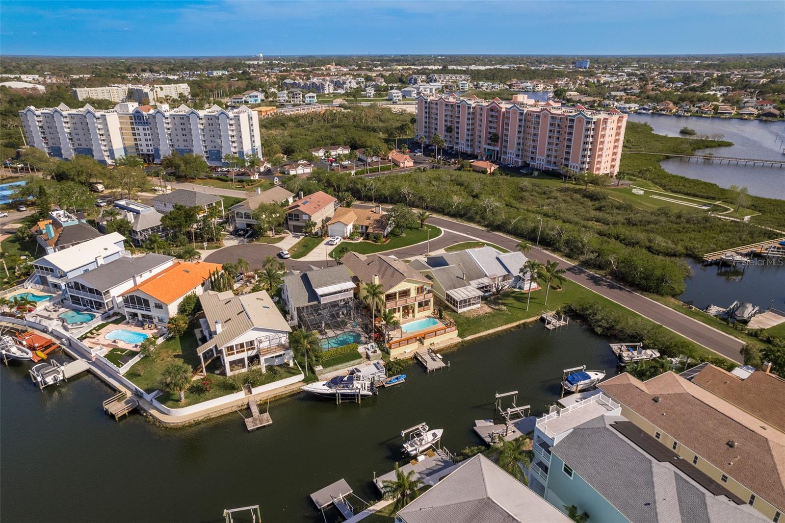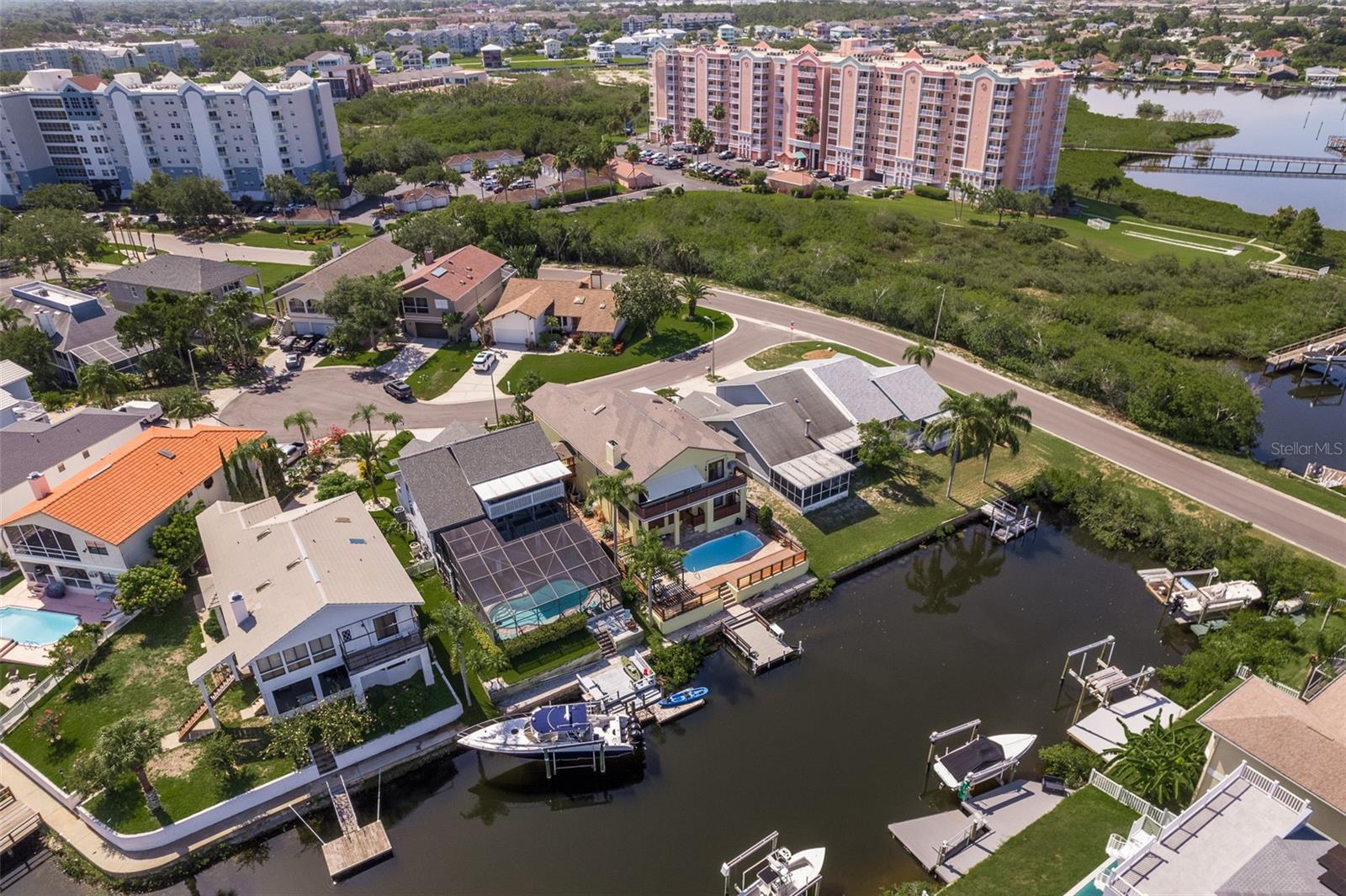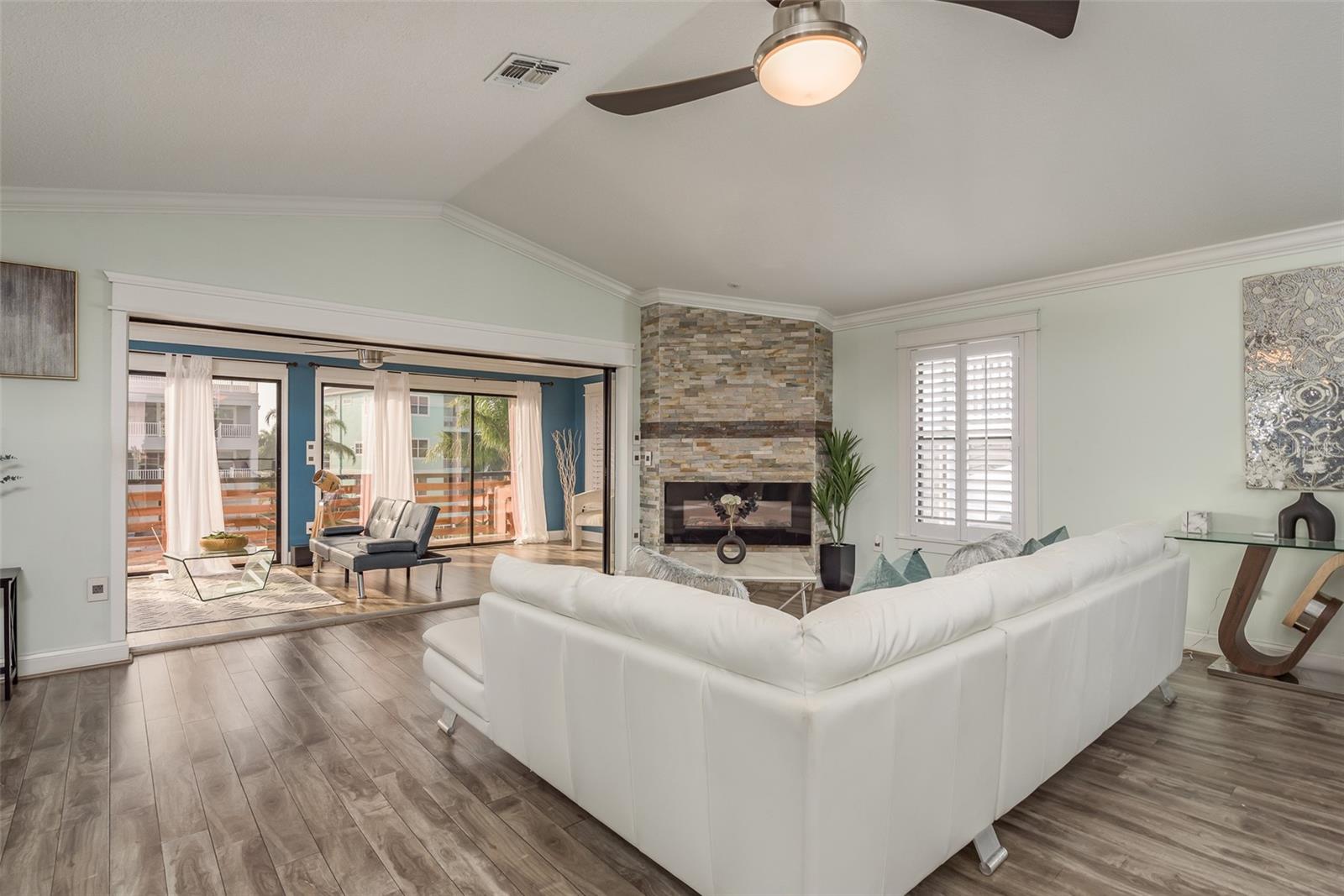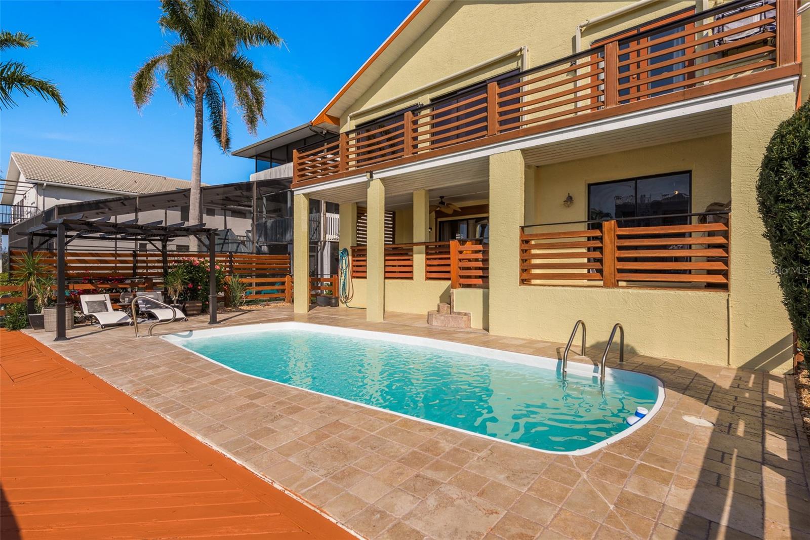 An Exquisite Waterfront Retreat Awaits! This stunning residence boasts luxurious upgrades both inside and out, creating a haven for boat enthusiasts and situated on a cul-de-sac. No expense was spared in crafting this dream paradise, featuring new flooring, a pristine kitchen with granite countertops and a brand new primary bathroom upgrade. Admire the striking stacked stone fireplace, and appreciate the fresh interior paint throughout, with ample storage space and elegant cedar wood railings adorning the exterior balconies, this home radiates curb appeal. Nestled along a picturesque canal just moments from the open Gulf waters, this property offers a resort-like atmosphere, oversized bedrooms, and so much more. The pool area is a true oasis, boasting expansive decking, travertine pavers throughout, ample lounging space, a charming cabana area, and multilevel balconies—an ideal setting for entertaining guests and relishing the Florida lifestyle. Boasting impeccable contemporary upgrades, this waterfront gem offers a four-way split floor plan spanning over 3,200 square feet of living space. Enjoy breathtaking Gulf sunsets, ocean wild-life and access to a private beach, completing the ultimate waterfront lifestyle experience.