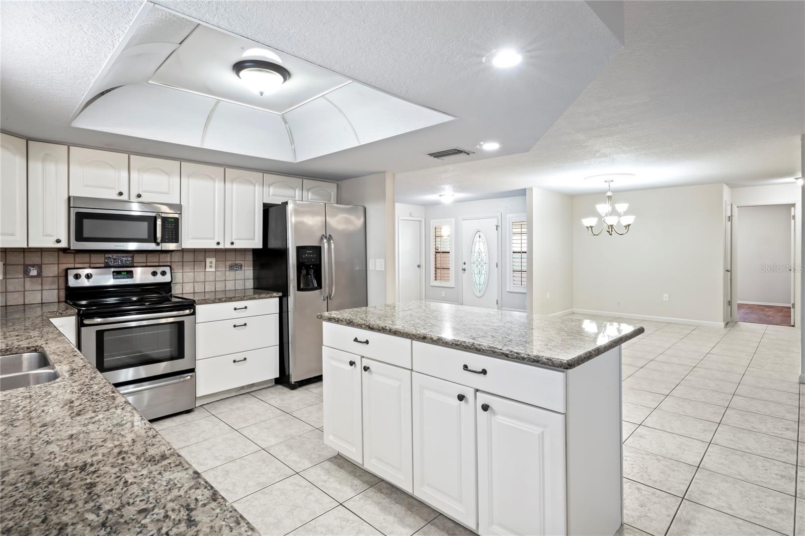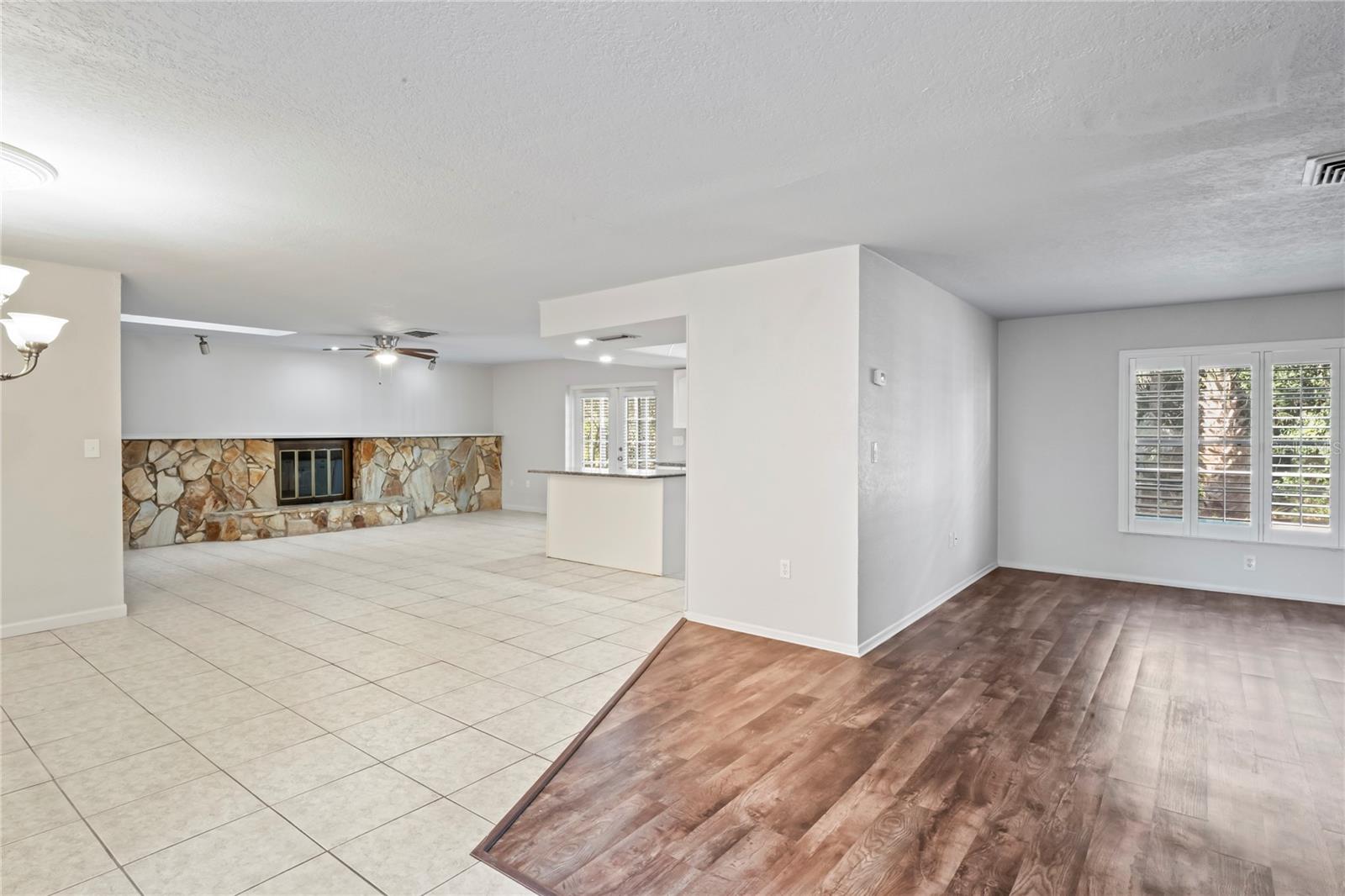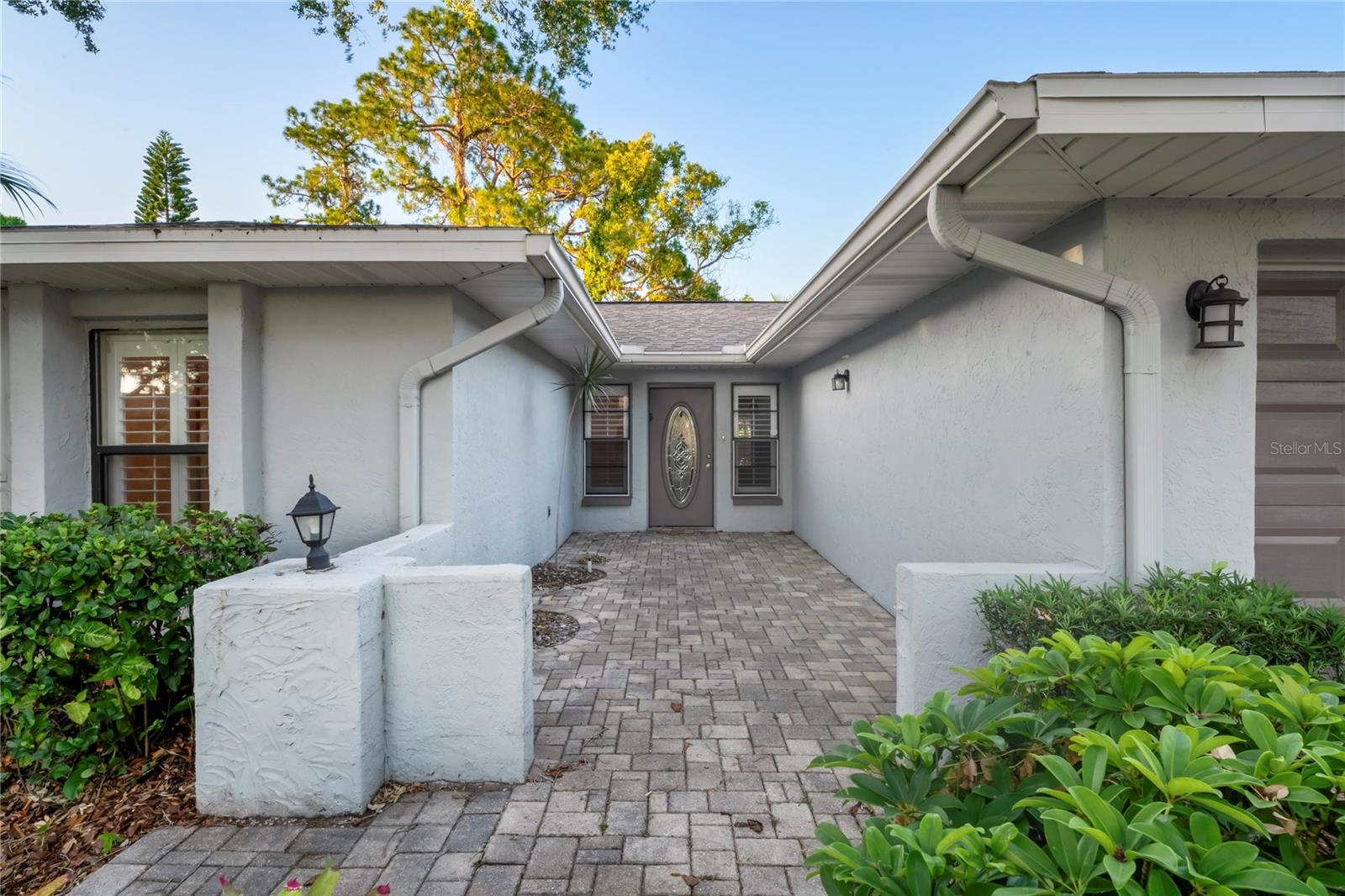 Nestled amidst lush landscaping, this charming abode offers an oasis of privacy. Meticulously remodeled with plenty of upgrades, including a stunning newer kitchen adorned with elegant granite countertops. Step into the expansive pool area, now enhanced with a brand-new screened cage, perfect for leisurely lounging or entertaining under the sun. Inside, discover the grace of a formal dining room complemented by a spacious formal living room, alongside an inviting open family room complete with a wood-burning fireplace. Enjoy the comfort and convenience of a split bedroom plan, featuring three cozy bedrooms and two beautifully appointed baths. Porcelain tile flooring and plush new carpeting grace each room, while a slate front courtyard adds a touch of rustic charm. Newly installed wood interior shutters provide both style and functionality, completing this picture-perfect retreat designed for refined living. Welcome home.