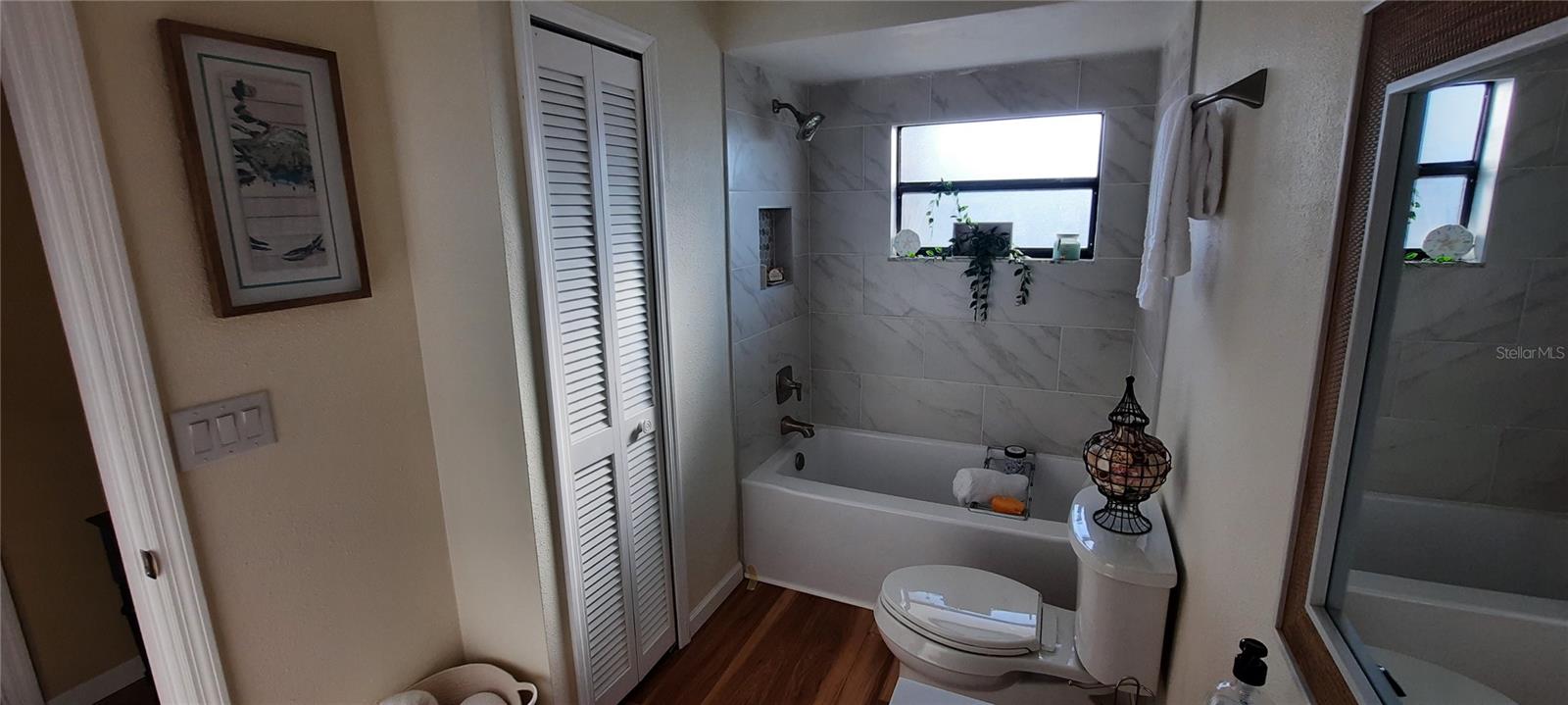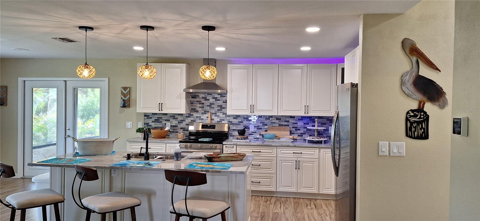 One or more photo(s) has been virtually staged. Resort style living!! Water view!! Right now you can own a fabulous, fully renovated, 3 bedroom high and dry home. Conveniently located in the highly sought after waterfront neighborhood of Gulf Harbors Woodlands, you can enjoy easy access to parks, beaches, shops, restaurants and the vibrant booming downtown of New Port Richey! Worried about flooding? Your mind will be put at ease, as this home sits HIGH and DRY with almost 2000 sq. ft. (not included in the square footage of the home), of enclosed bonus area. With a half bath and 2 sets of brand new sliders, this massive space can be half mother-in-law suite; half toys, or all a giant MAN CAVE. The possibilities are endless. EMPTY YOUR STORAGE UNITS!!! As you approach this grand home, you will be impressed with its stature. A 2-stall garage awaits your jet ski, kayaks, paddleboards and/ or golf cart, with an extra 1600 cu ft. of solid accessible storage space. An understated tropical vibe landscape awaiting your own colorful touches, draws you up and inviting staircase to find a gorgeous new solid wood door with leaded glass inserts and coordinating sidelights. Step inside to find a warm modern coastal charm with new aesthetically pleasing lighting and ceiling fans, newly installed lovely vinyl flooring, new carpet in the bedrooms, fresh neutral paint and new baseboards. Entertaining is easy in the open concept kitchen featuring a lovely island with electric and lighting, elegant soft close raised panel cabinetry, blue fantasy dolomite countertops, gorgeous colorful backsplash, stainless steel appliances (brand new), your SMART thermostat and plenty of room for cozy furnishings. Step through your new French doors onto a 240 square ft. screened porch where you may choose to enjoy your morning coffee or evening cocktail with a view of the estuary. The traditional split plan layout, featuring on one side, 2 bedrooms and a full bath allowing for guests or flex spaces such as a home office or studio. Head over to the master where you will be greeted with plenty of natural light, a very generous walk-in closet and a completely new ensuite. This golf cart friendly waterfront community has a very reasonable HOA fee. This fee provides some very nice perks such as an awesome pool with a clubhouse, tennis and pickleball courts, boat ramp, floating pull up dock and lots of activities throughout the year. In addition, you will have the option to become a member of the yacht club, which is right next door to the clubhouse. Also, for a small fee, join the private beach boasting 21 cabanas, picnic tables, chairs and private bathrooms w/showers. This prime location beach will likely be your favorite place to watch the sunset or host the next friends and family get together in this wonderful community. Don’t miss out, call today for a showing!