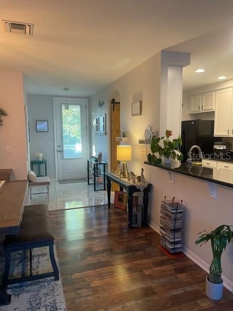 Stunning 3 bedroom, 2 bath, 2 car garage townhome in the highly sought after Longleaf community located directly across from the park. This beautifully remodeled townhome is light and bright, with all new interior paint, new flooring upstairs and down, a large rear-entry two car garage and attached screened lanai that is perfect for entertaining. It is a short walk to all of the community amenities, Starkey Market, A.R. French Pizzeria and all of the shops at Longleaf. The kitchen features solid wood cabinets which were painted in 2022, a large breakfast bar, and granite countertops. The family and dining rooms are spacious and the owners have made two separate office spaces that you have to see to believe! Speaking of which, the laundry room is located adjacent to the kitchen and has been renovated with a signature barn wall and butcher block folding stations. There is also a remodeled half bathroom downstairs. All the bedrooms are located upstairs and the master bathroom has been completely remodeled with a new shower door, new vanity and sinks, all new lighting and even porcelain floors! Community amenities include the Longleaf shops, restaurants, a clubhouse, pool and spa, playgrounds, beach volleyball, basketball and tennis courts, baseball field and walking trails. Welcome home!