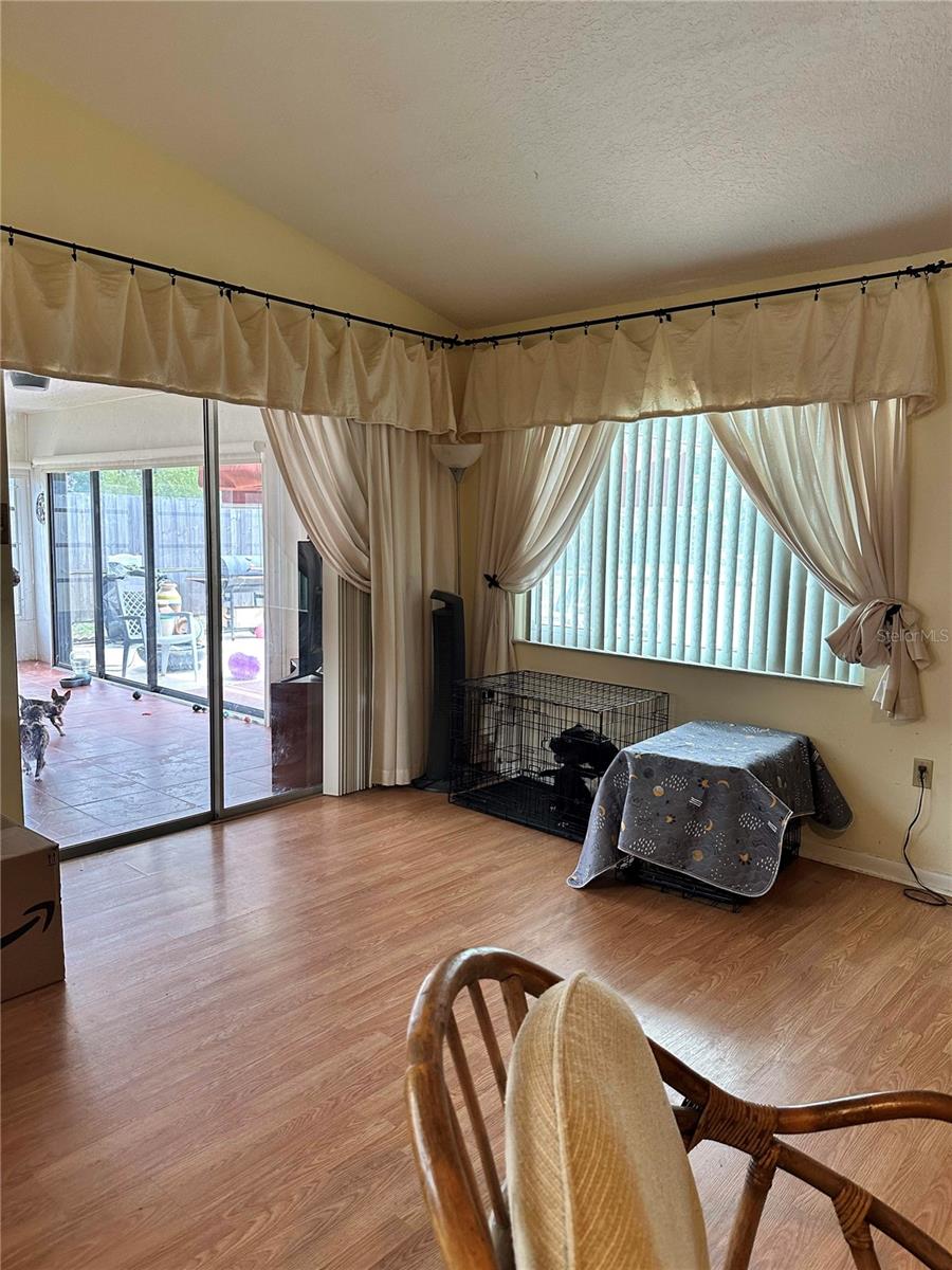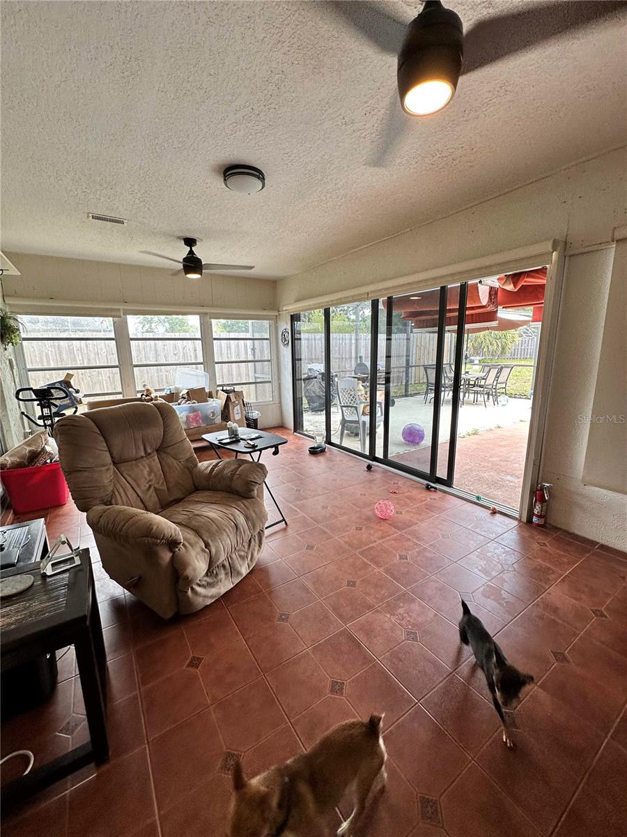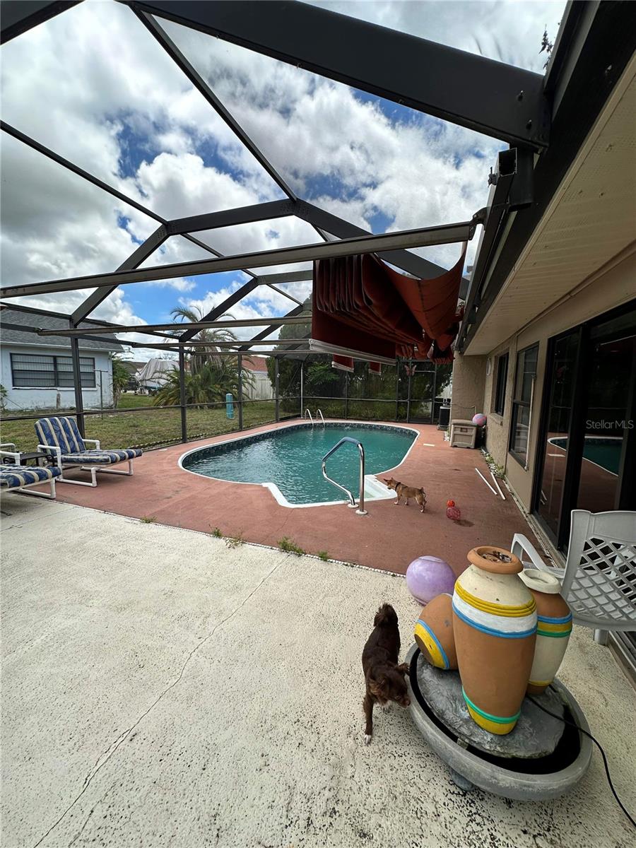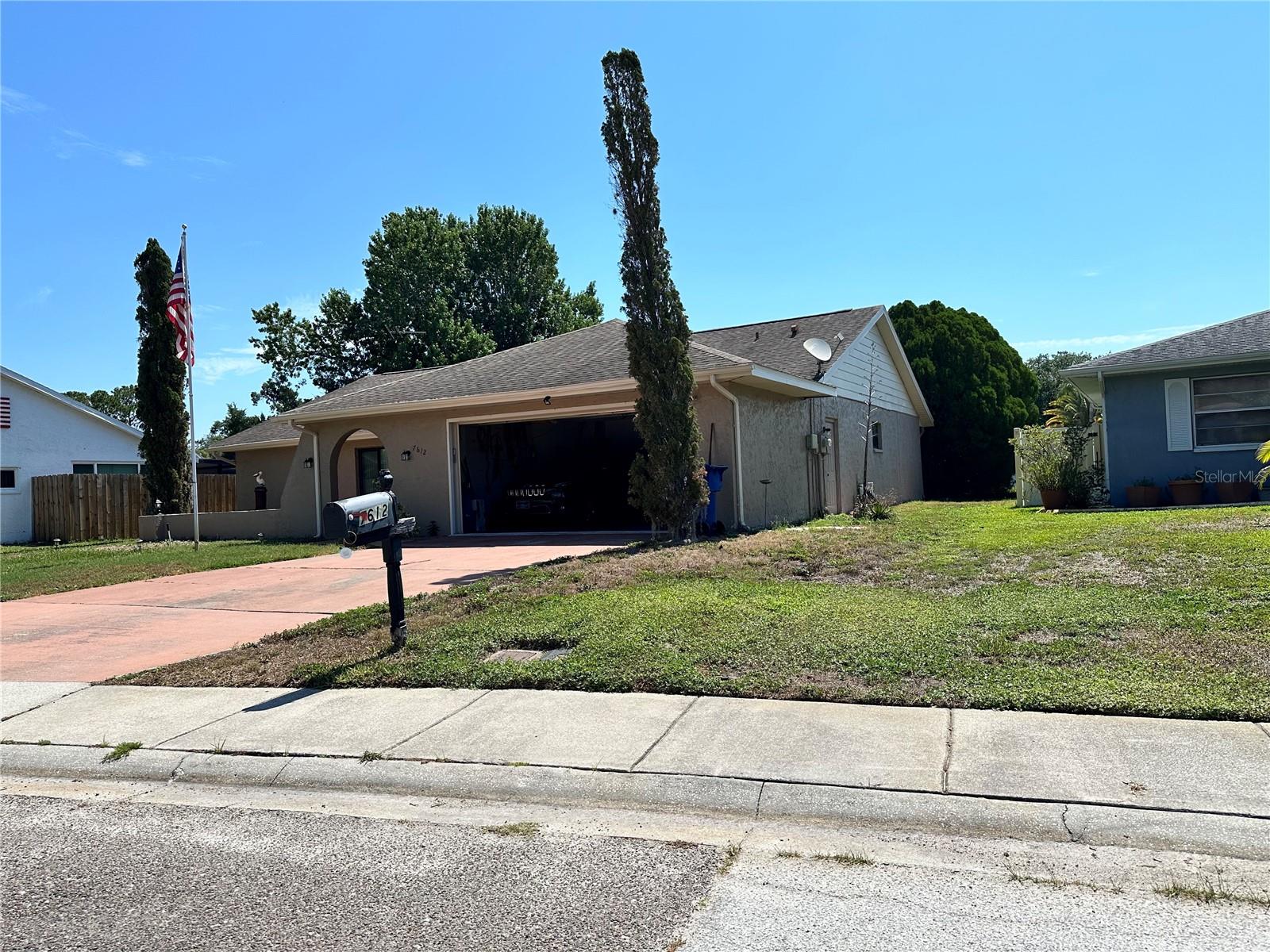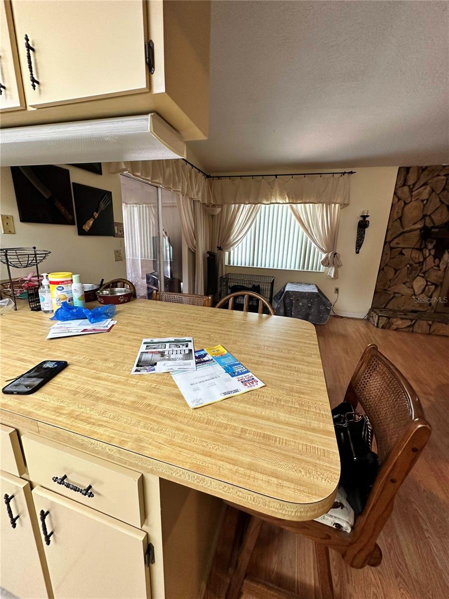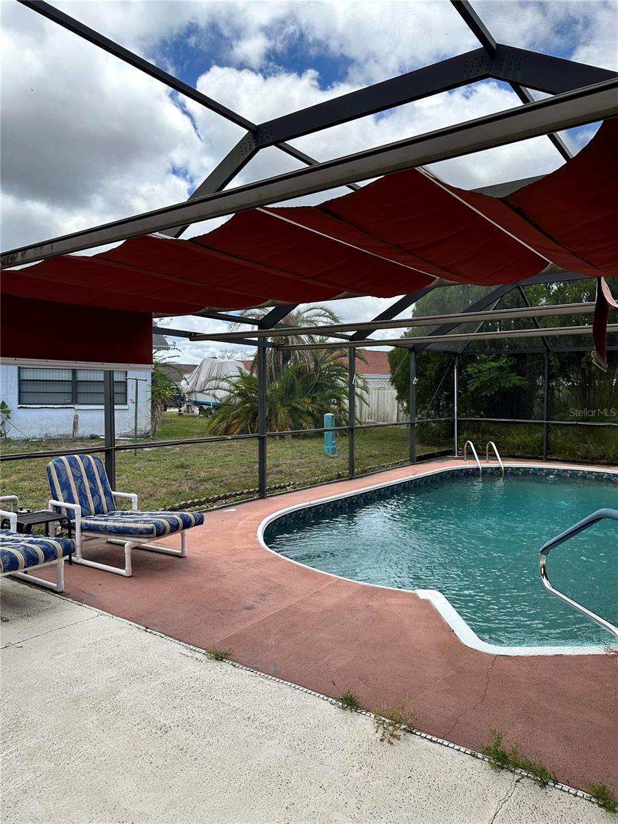 Great Open Floor Plan - Den with French Doors - Laminate & Tile Flooring, Split Bedrooms + Den / Study could be 3rd Bedroom & Beautiful newly refinished In-ground Pool too! Spacious family room with Stone Wood Burning Fireplace with an electro flame insert for cozy/chilly nights. Stainless steel energy star appliances in the spacious kitchen, lots of room to create. This home has a nice size breakfast bar in the kitchen and room for dining set. A few updates include Roof in 2014, Fans in 2019, AC in 2016 and hurricane proof tinted picture window in 2017, 15 x 30 Pool Updated in 2024 and has sliding canopies for shade on large screened in lanai. Air conditioned porch between kitchen & lanai. Quiet community with bike trails leading into Starkey Park. Call for apt to view. OWNER Motivated